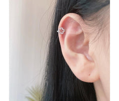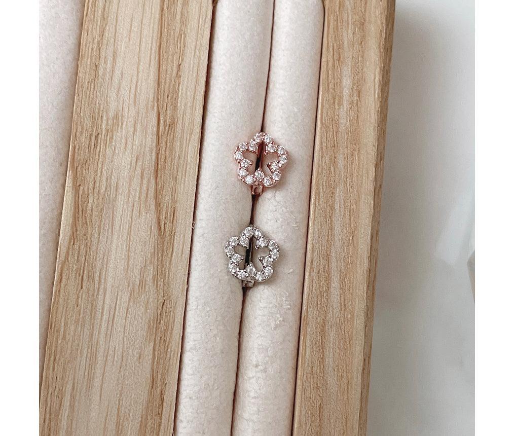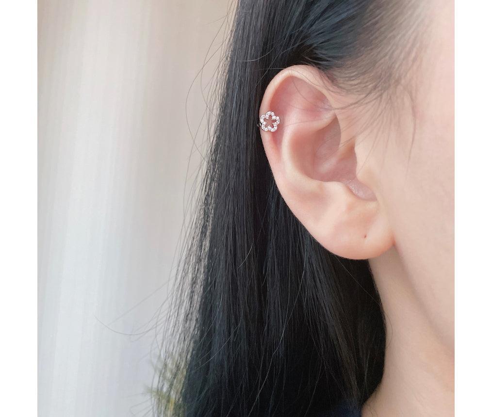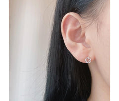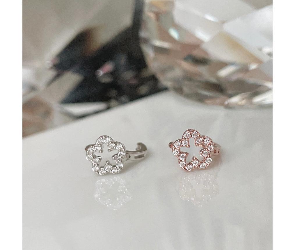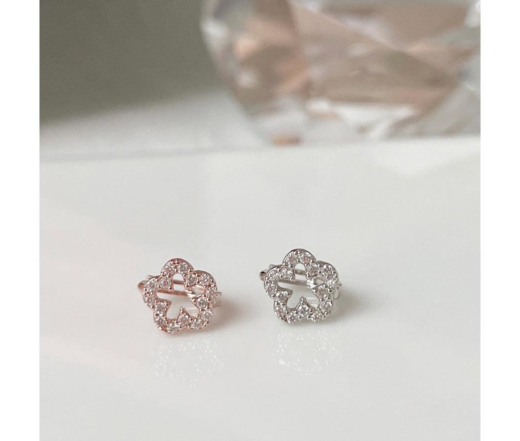 Flower Line Cubic One-touch Ring Earrings (2 Colors)