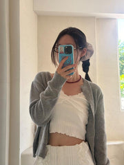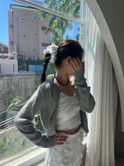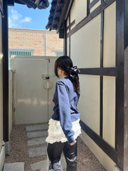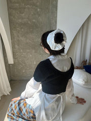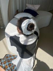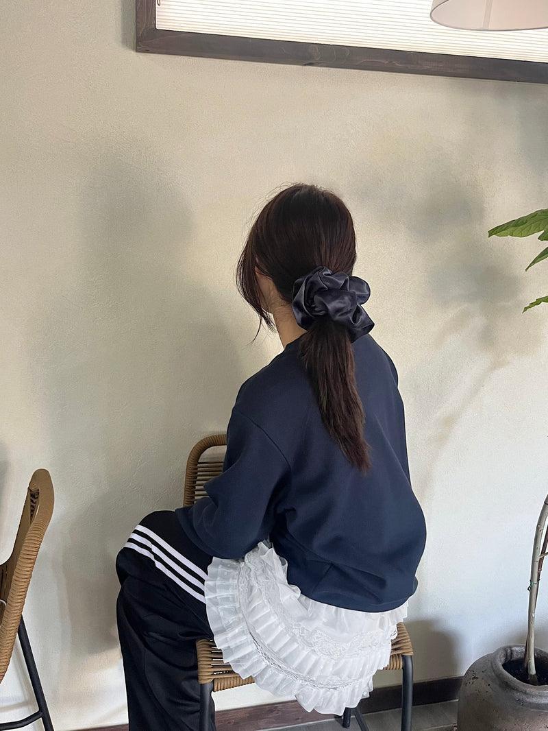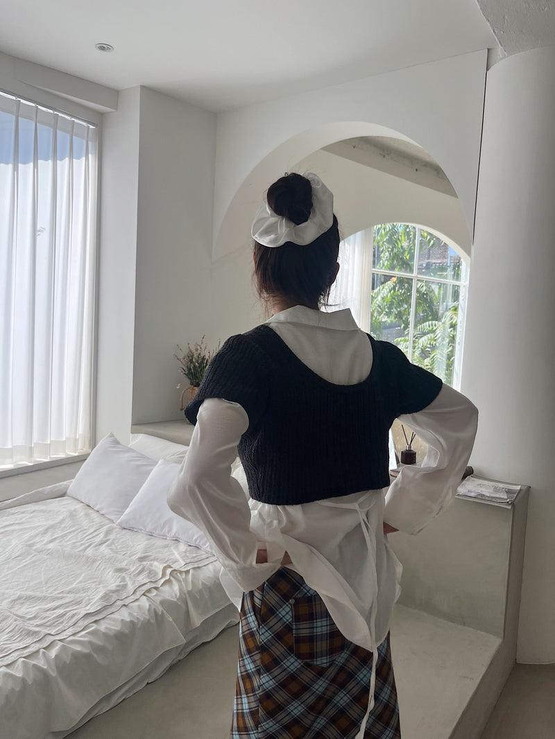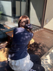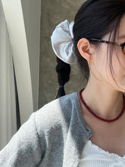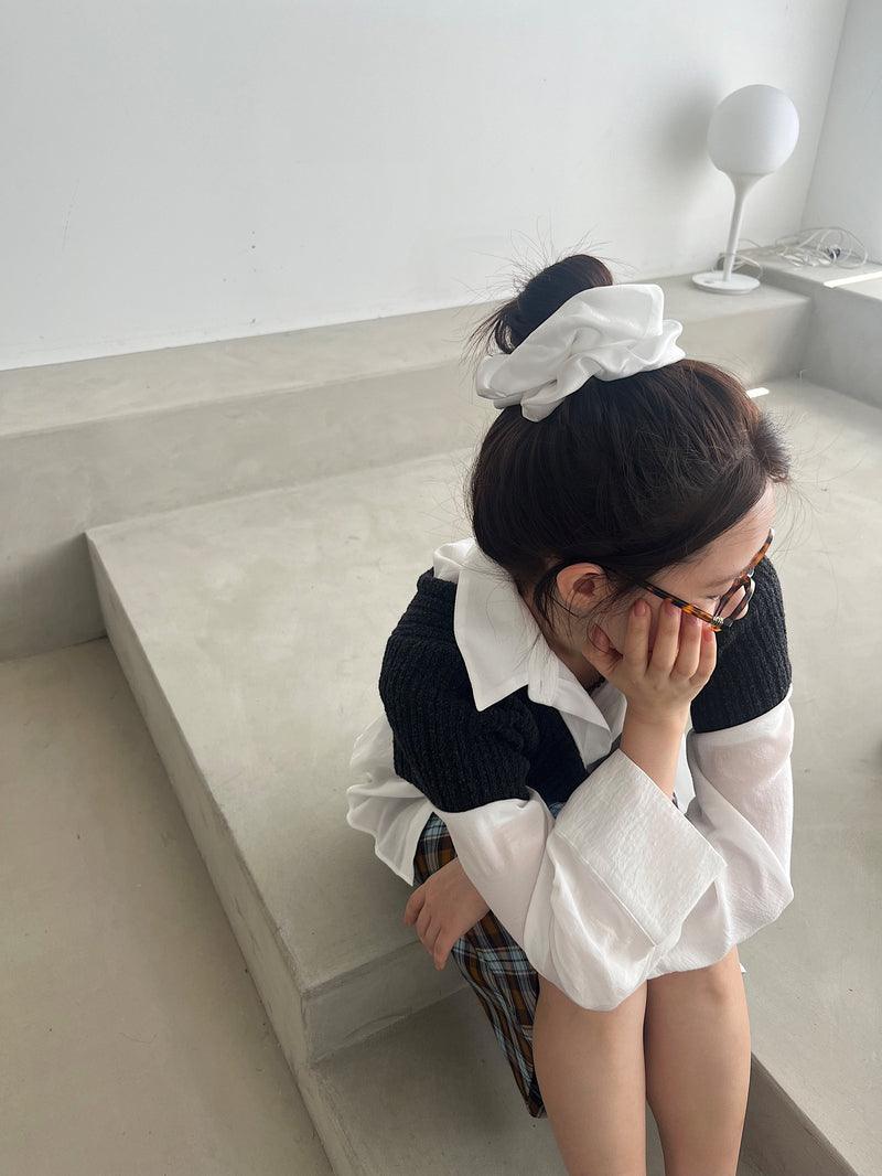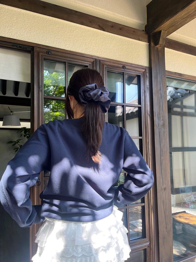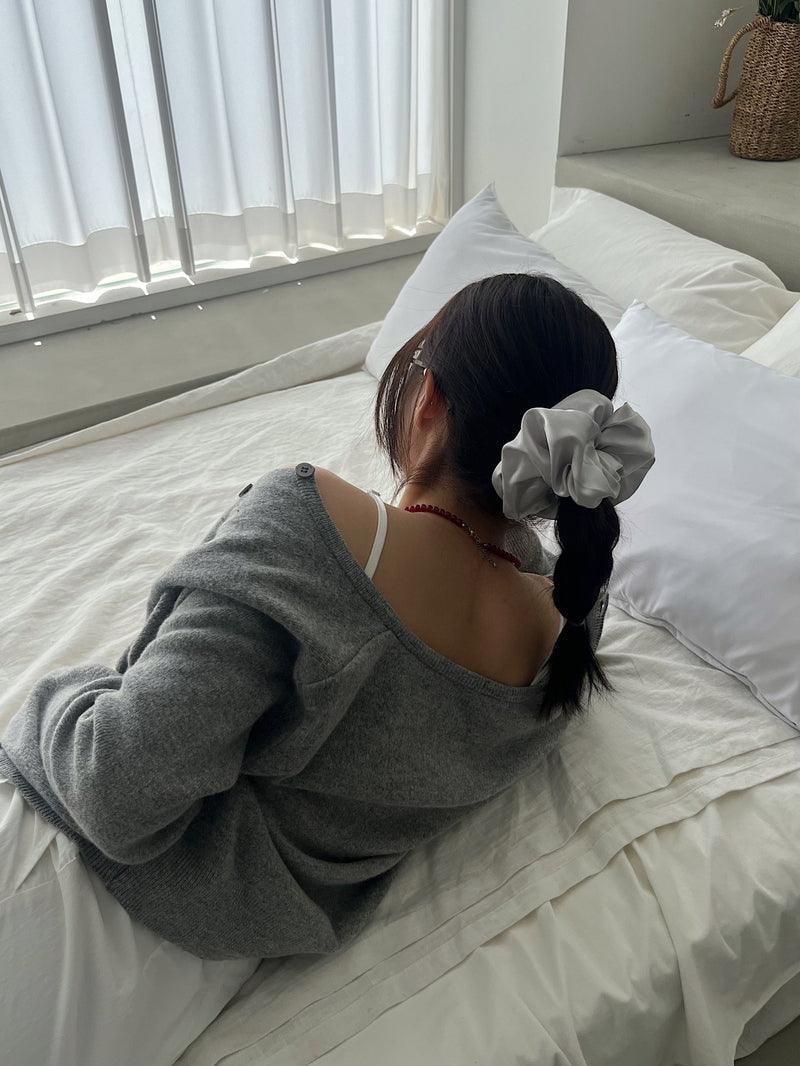 - A big size scrunchie that can be tied twice for a relaxed look, making it a surefire focal point for a simple outfit.