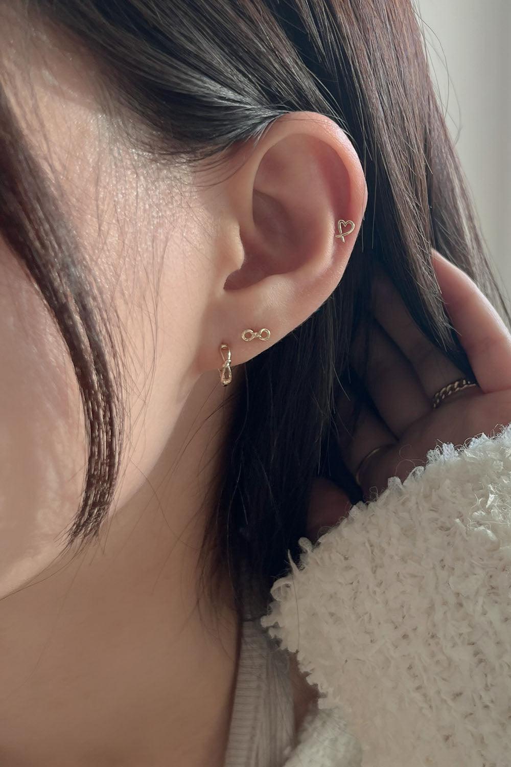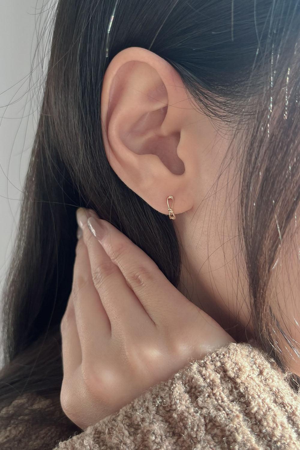14k ribbon line one touch ring earrings (1pair) - 4MiLi (フォーミリ)