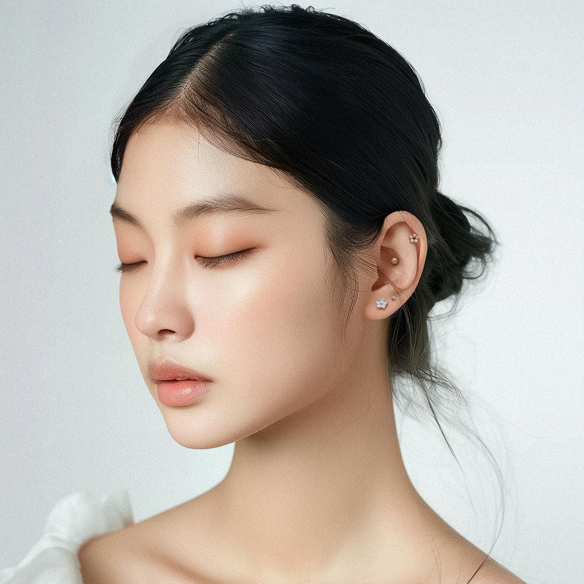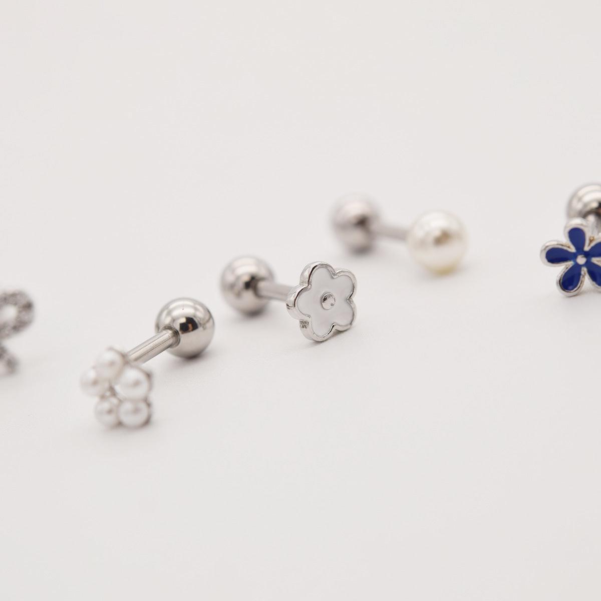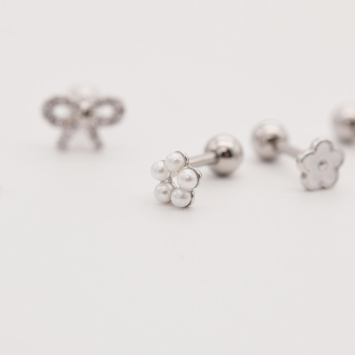 7. [Surgical Steel] Pearl Barbell Ball Earrings Pearl: 4mm, Bar Thickness: 1.2mm, Bar Length: 6mm, Back Ball: 4mm, Bar can be separated. Quantity: Rose Pendant: Acrylic / Barbell, Back Ball: Surgical Steel