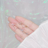 # Piercing with pink cubic zirconia as the highlight! Two-ring earrings made of butterflies and flowers are a great way to add a touch of style. # Surgical Steel # color Silver, gold, rose gold # size Chain length: 2cm #Piercing : 16 G...- $99.00