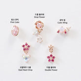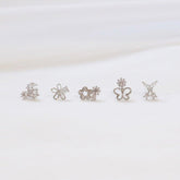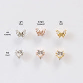 # Flower design earrings give a gorgeous look. # Surgical Steel #color Silver, rose gold #size Flower 0.6 x 0.6 cm Cubic Flower 0.8 x 0.6 cm Stone Leaf 0.8 x 0.6 cm Cubic Cherry 0.6x0.7cm Butterfly 0.6 x 0.7 cm- From $80.00