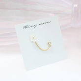[Ready to ship] Pearl Flower Two-Ring Earrings - Silver (1 piece)