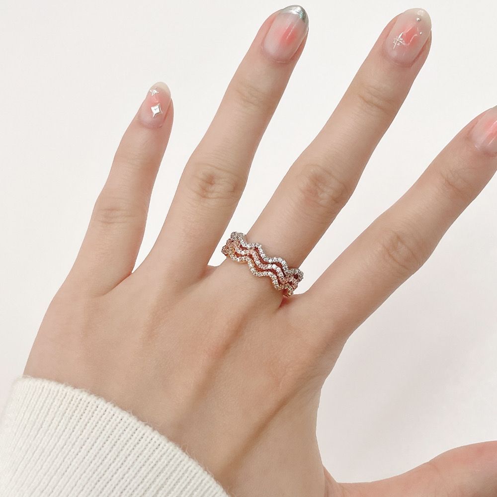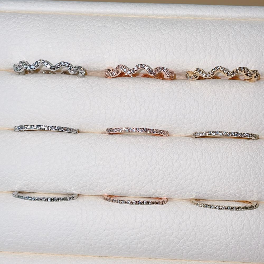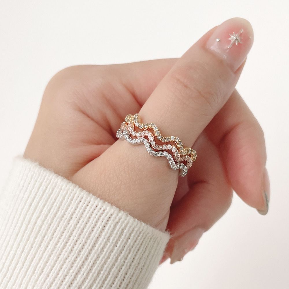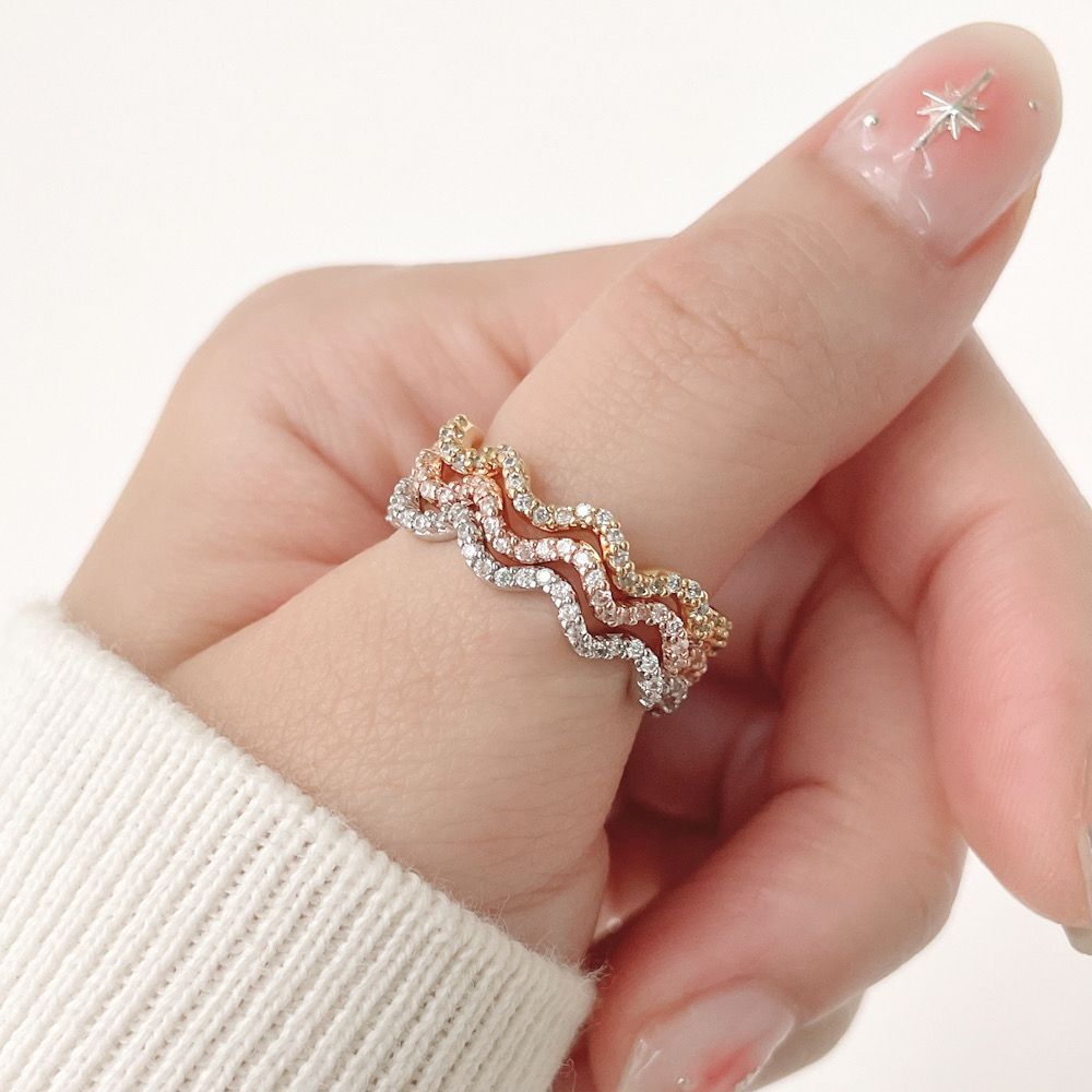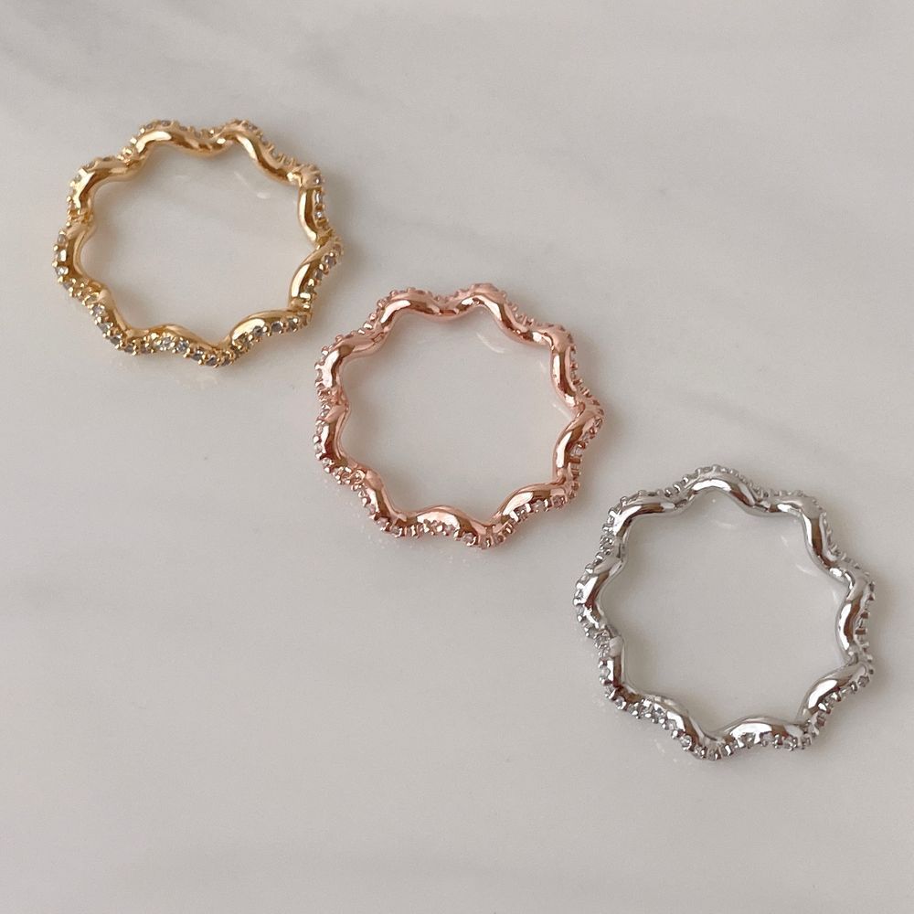 Two rings with cubic settings and epoch colored points. Star details are added to the center to subtly accentuate the product. If you open the rings too wide, the epoch and cubic may come off, so we recommend adjusting only the back.