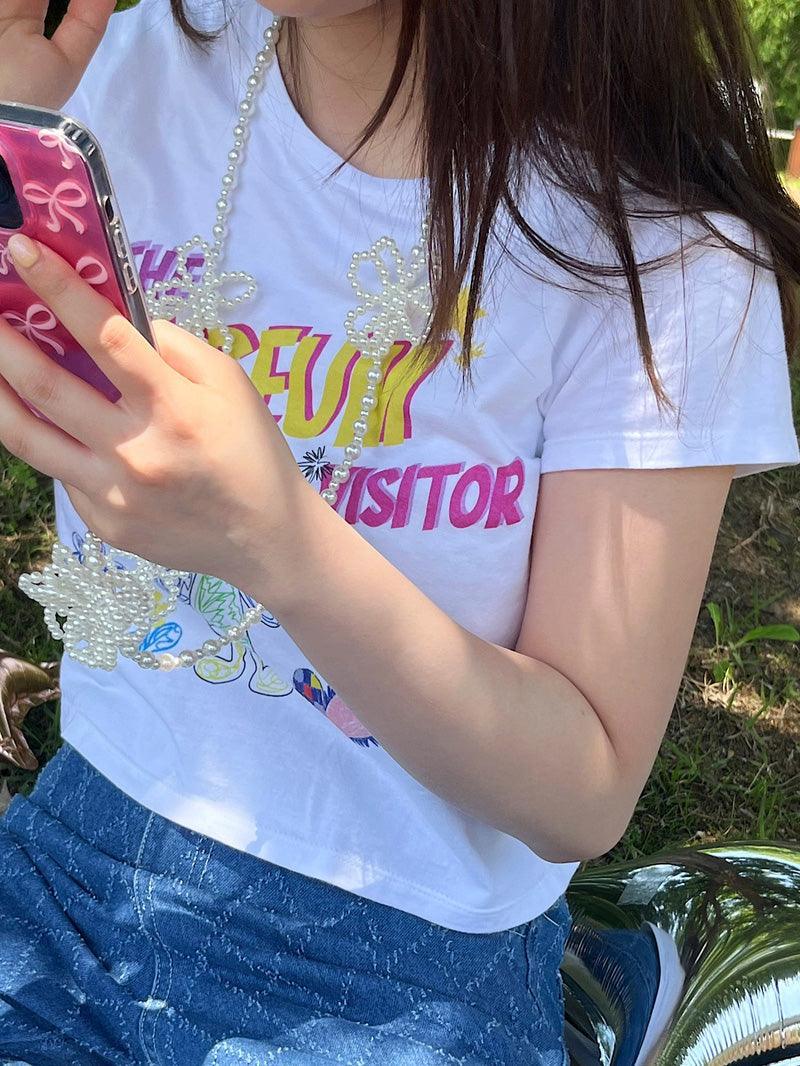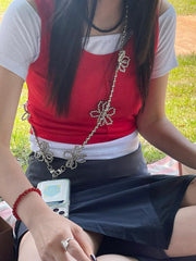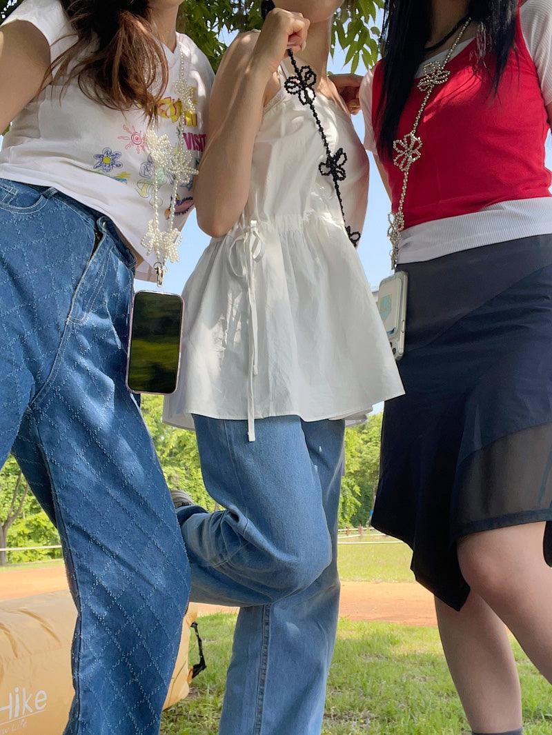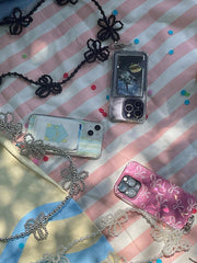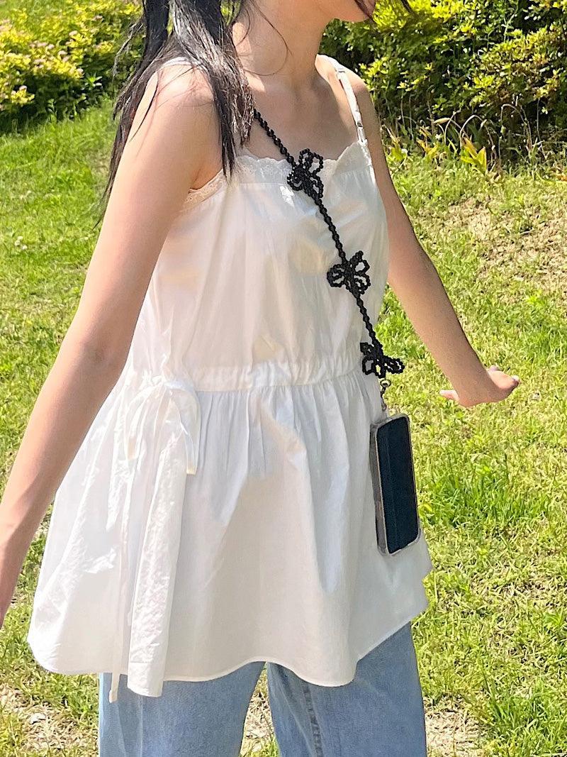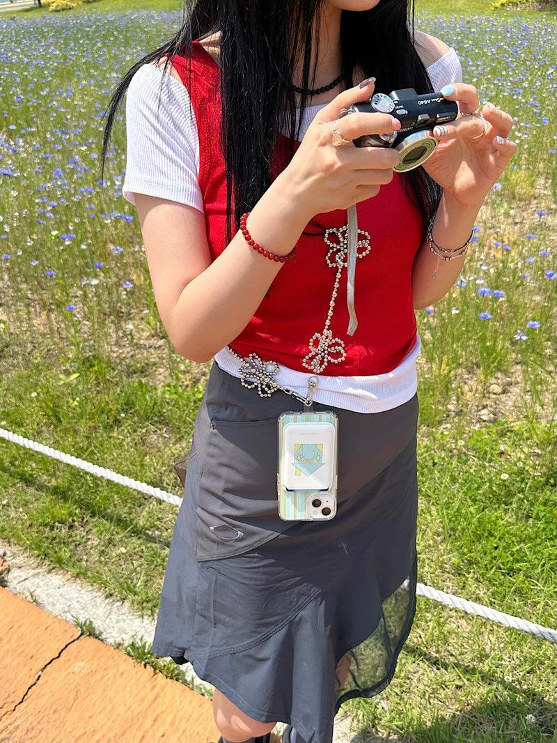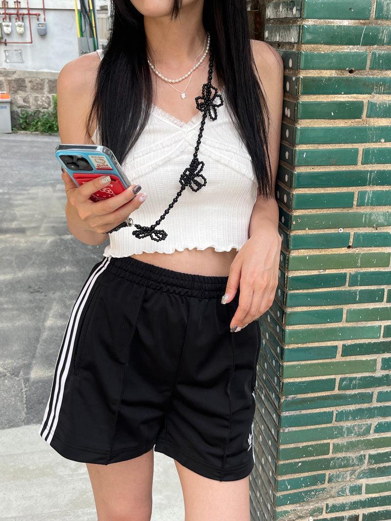 - A smartphone strap that can be hung in a cross shape using long flower point beads