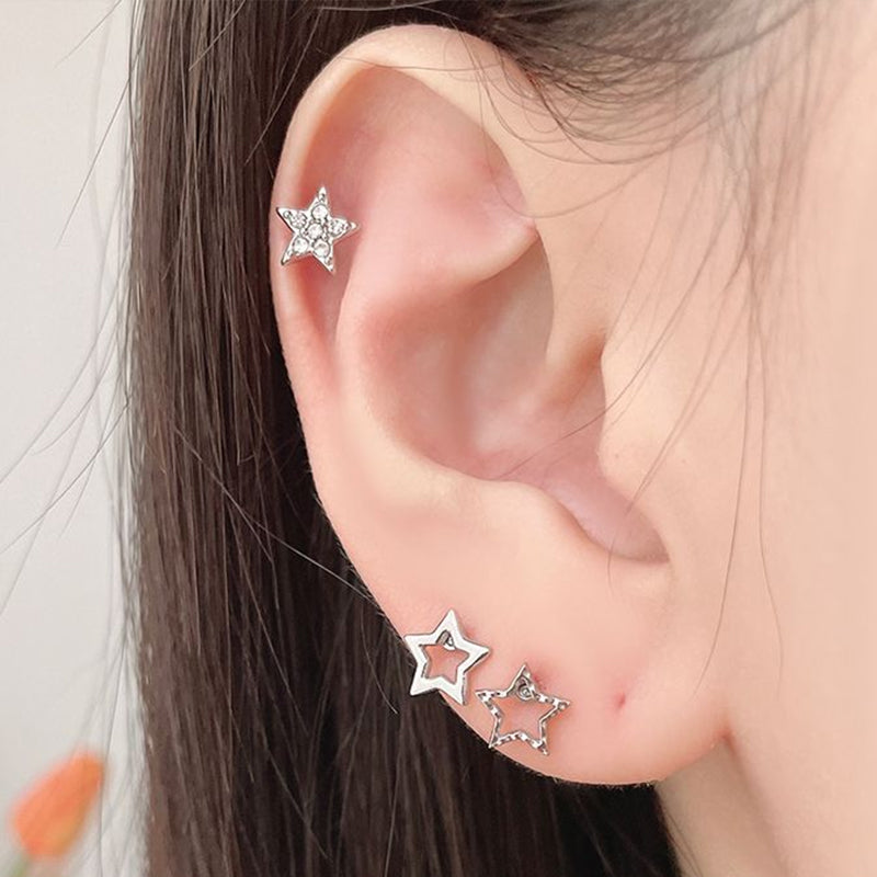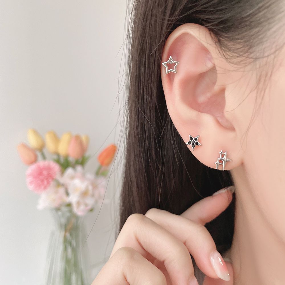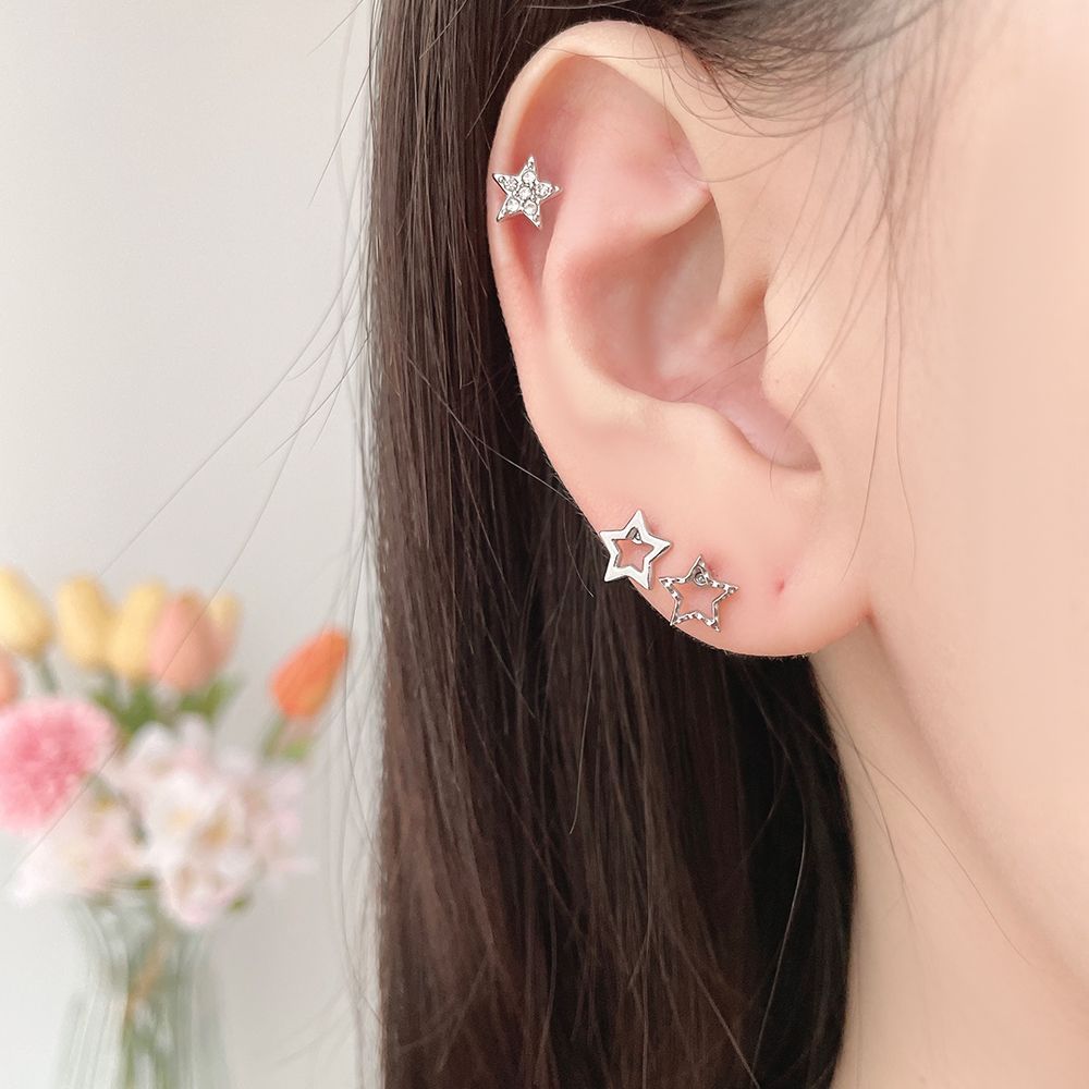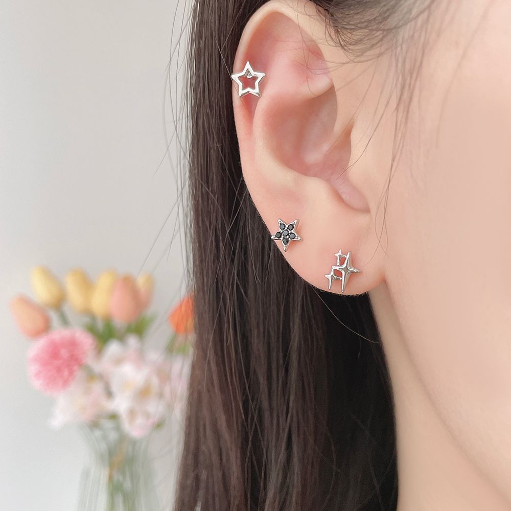 We recommend these three designs of earrings with a star combination. The minimalist star design and