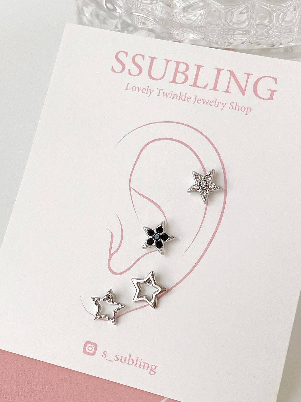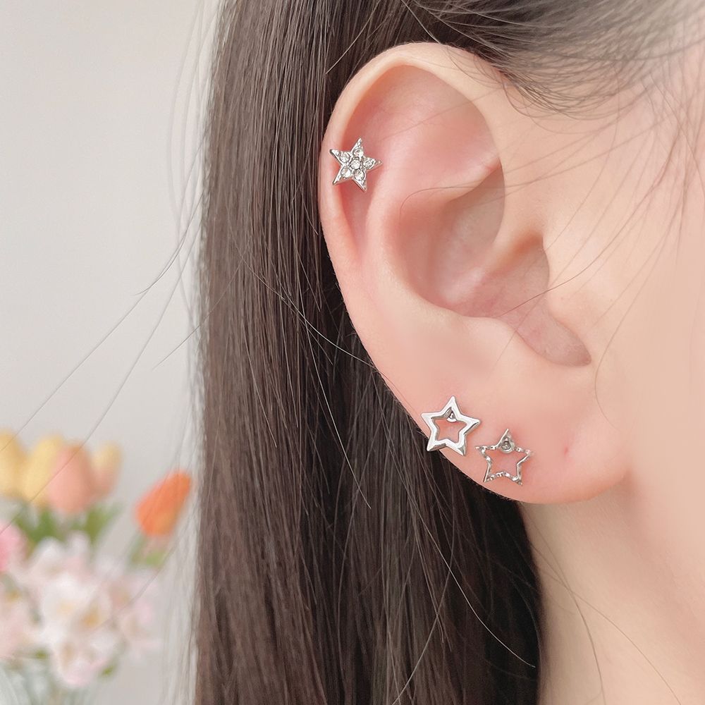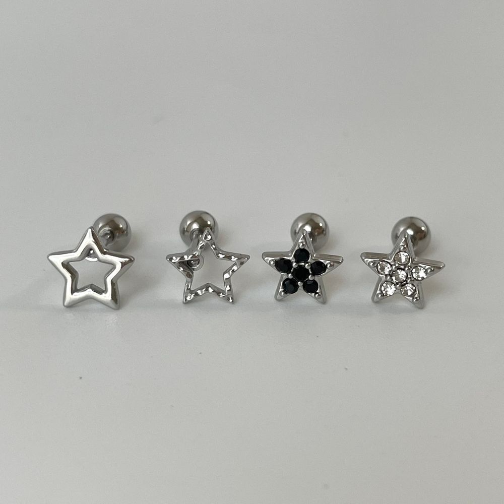 We recommend these three designs of earrings with a star combination. The minimalist star design and