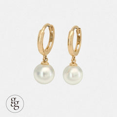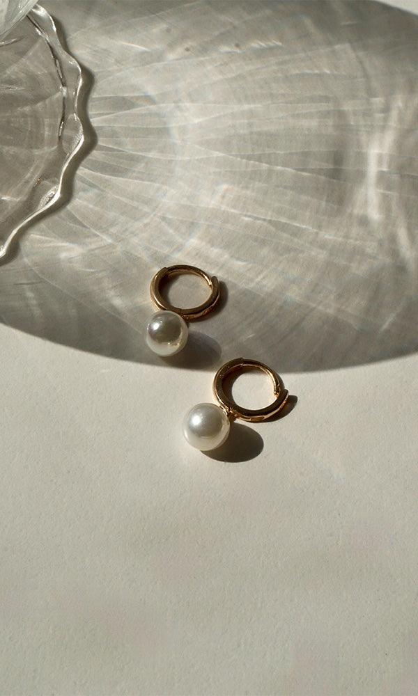 These one-touch earrings feature lustrous white pearls that give off an elegant mood.