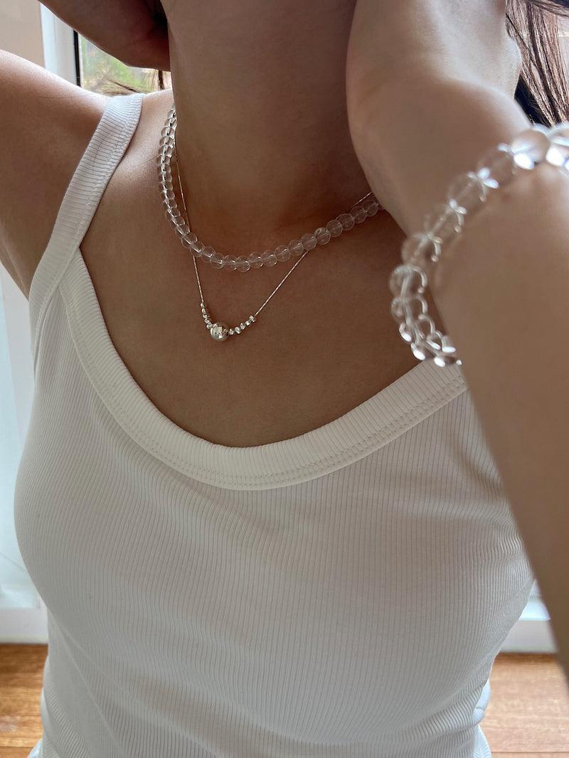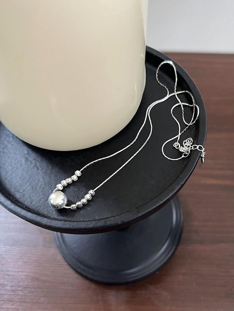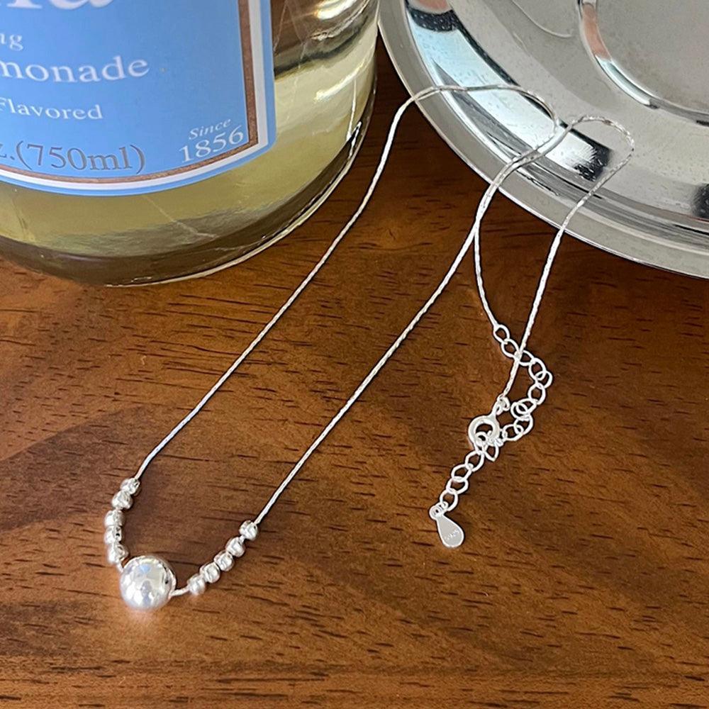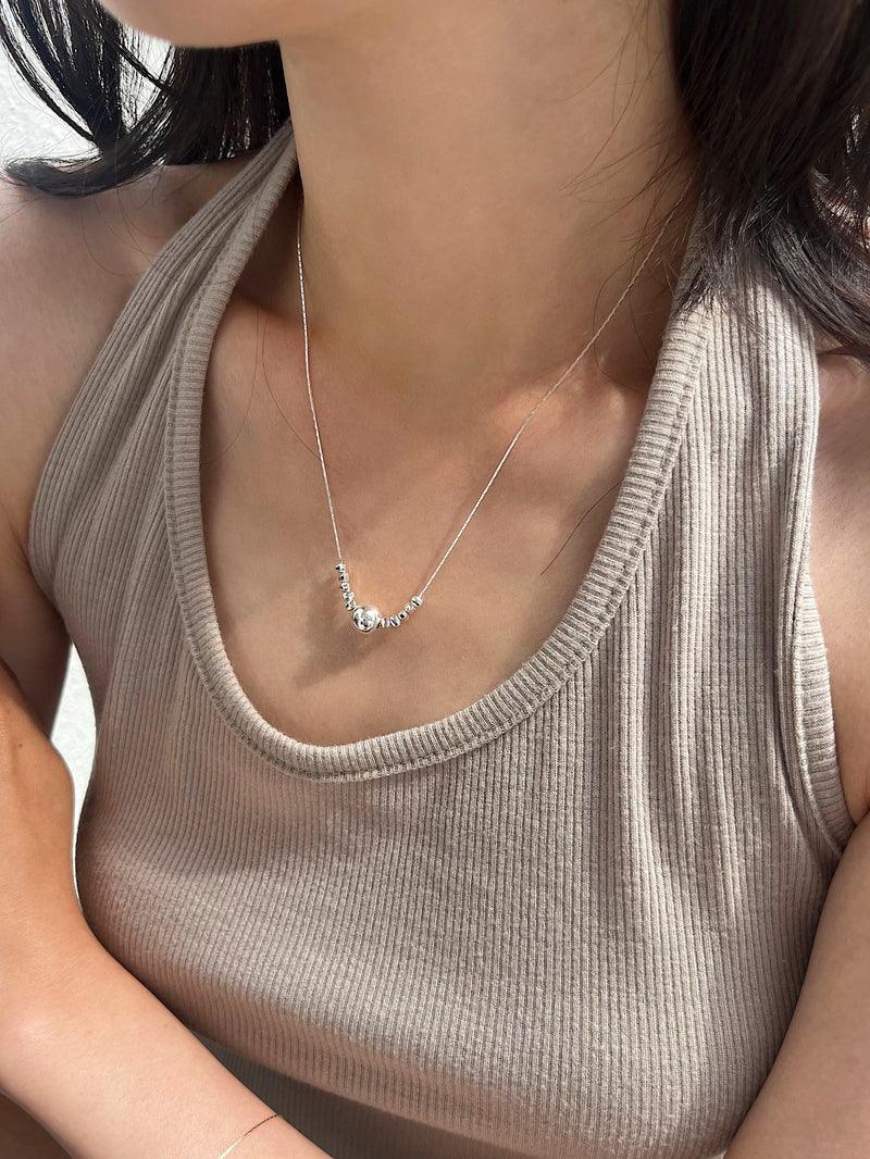 - A unique necklace design with small pebble-shaped balls on the central ball side.