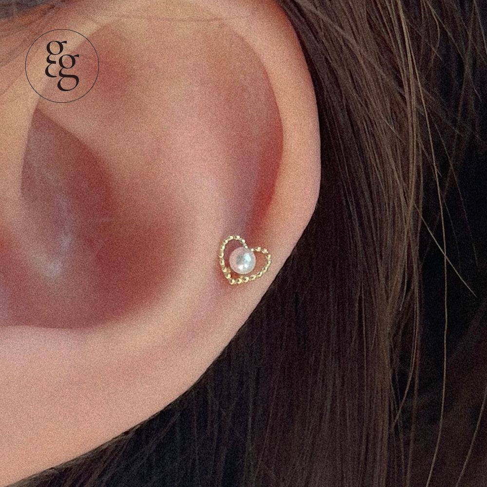 A small pearl is set in the center of the heart dot line, giving these earrings an adorable feel.