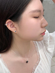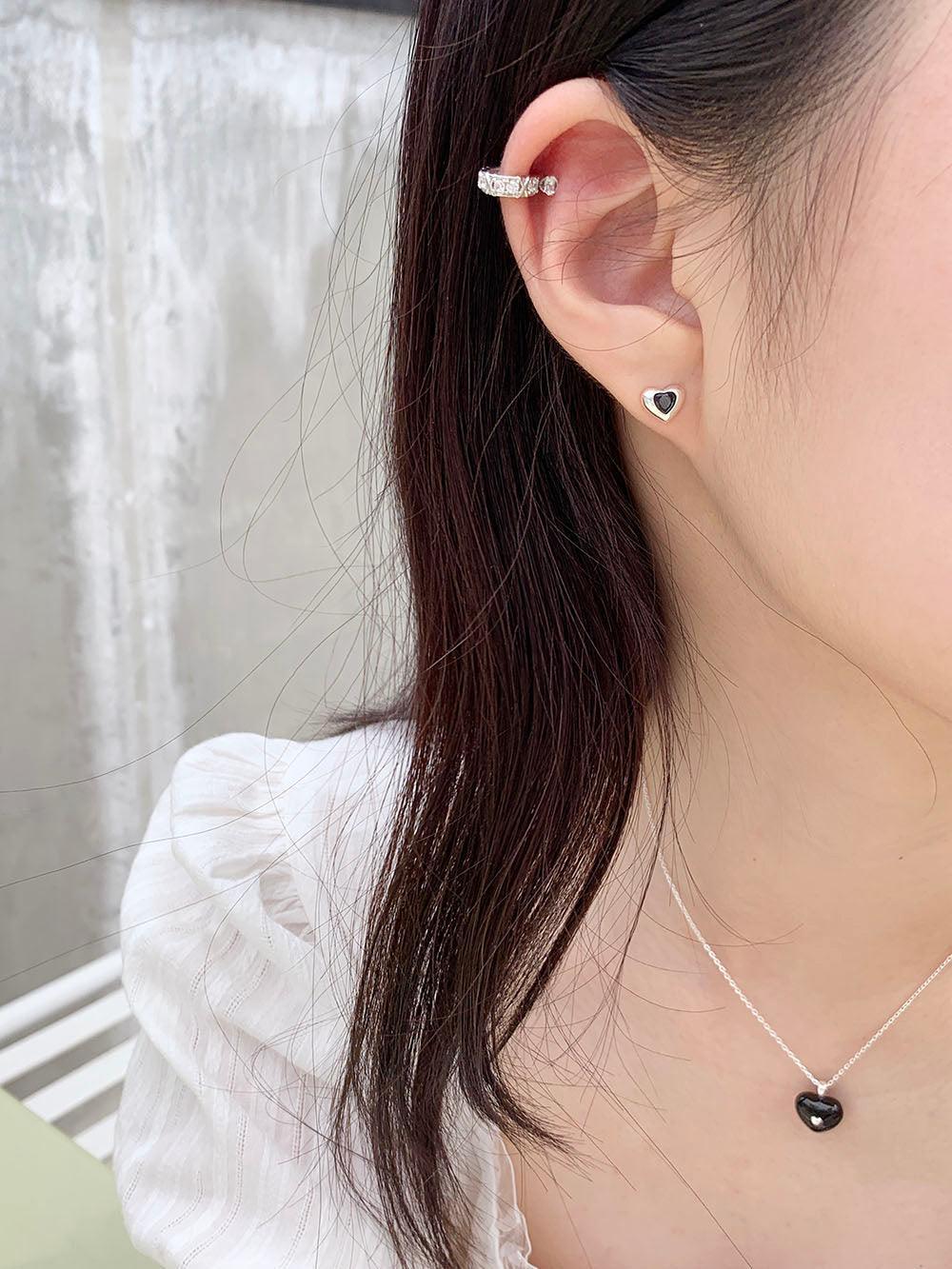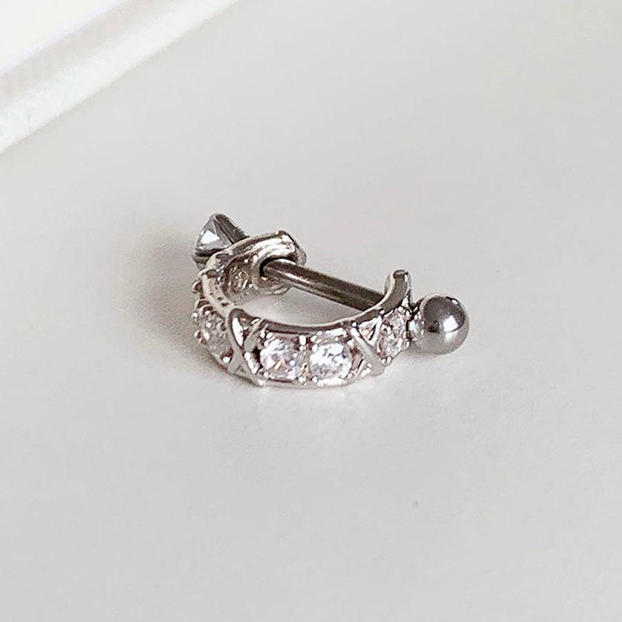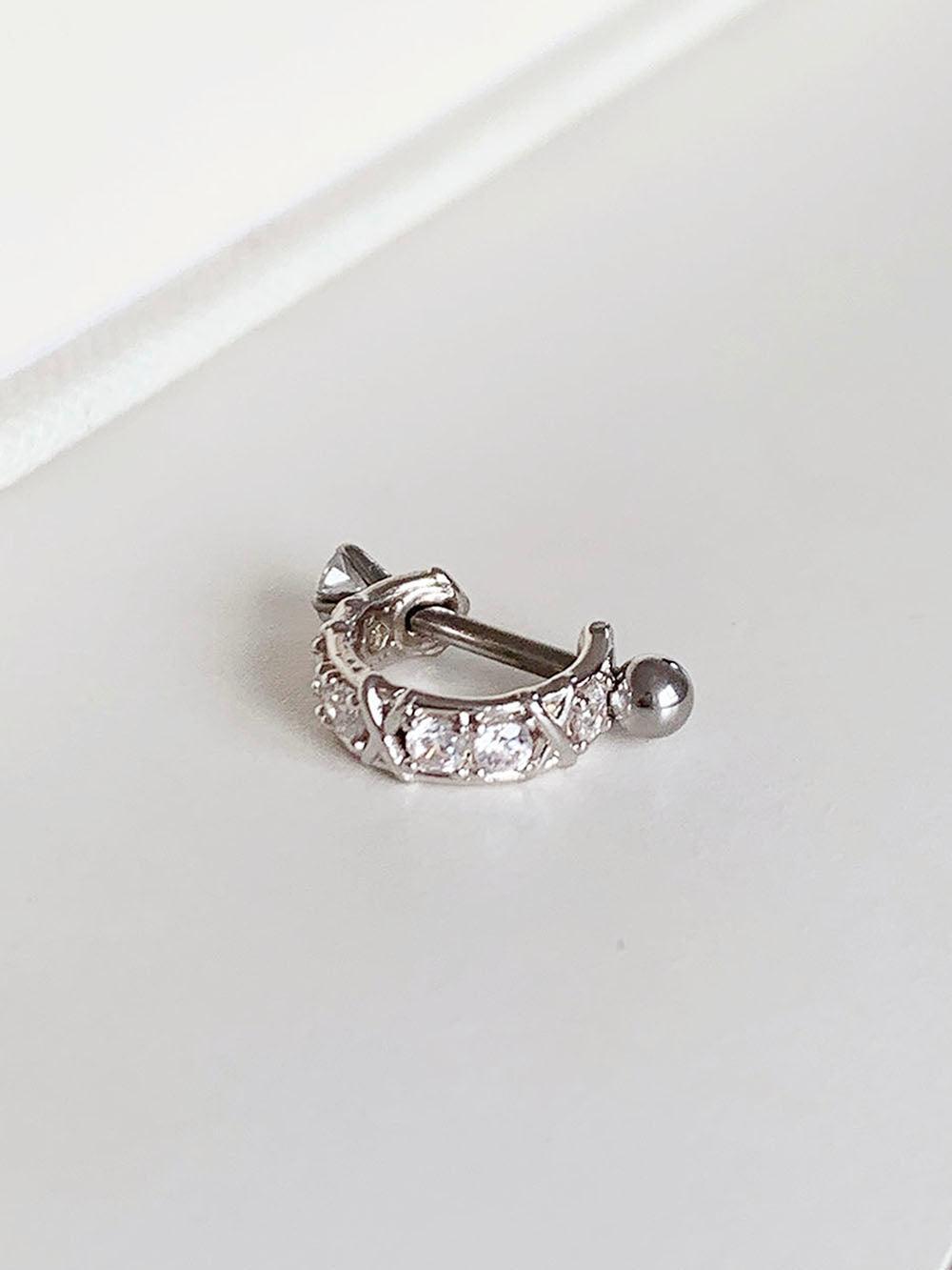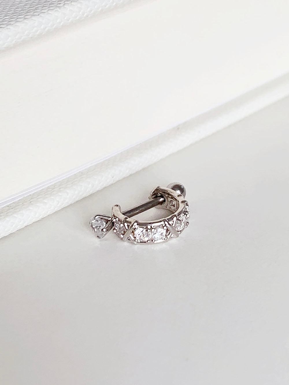 These earrings are set with sparkling cubic zirconia studded together. The bar and ring can be removed, so you can wear them separately or together.