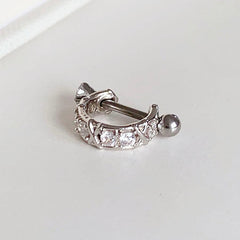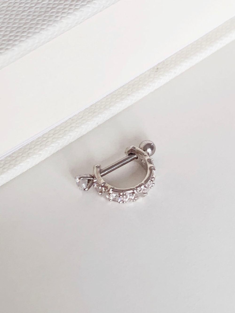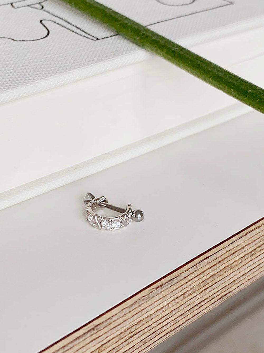 After removing the ring and bar, place the ring where you want to wear it and then fit it into the hole where you want to wear the barbell.