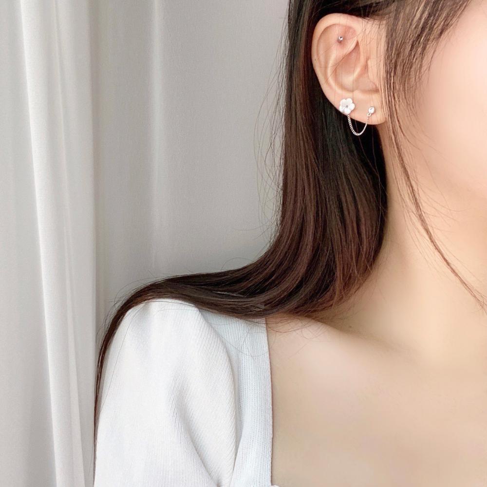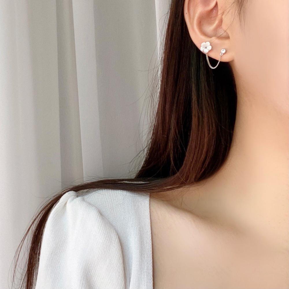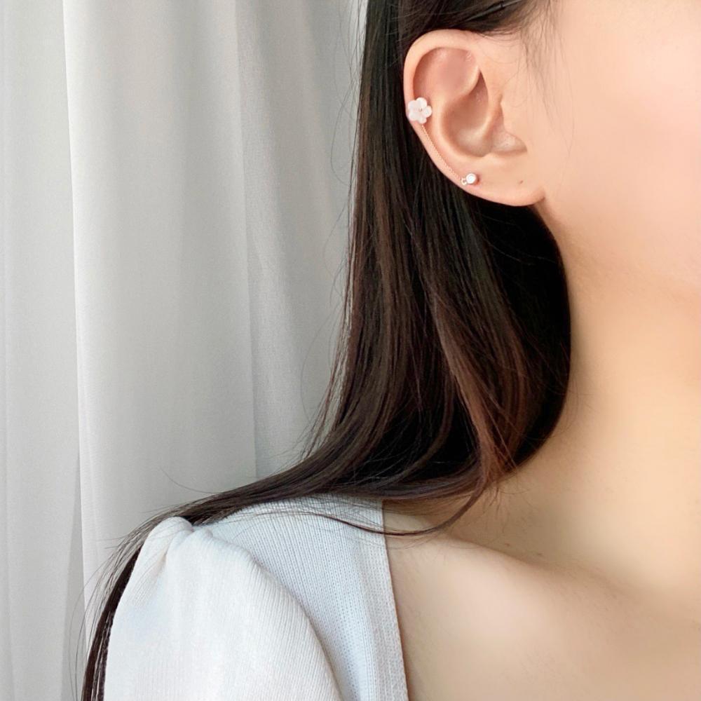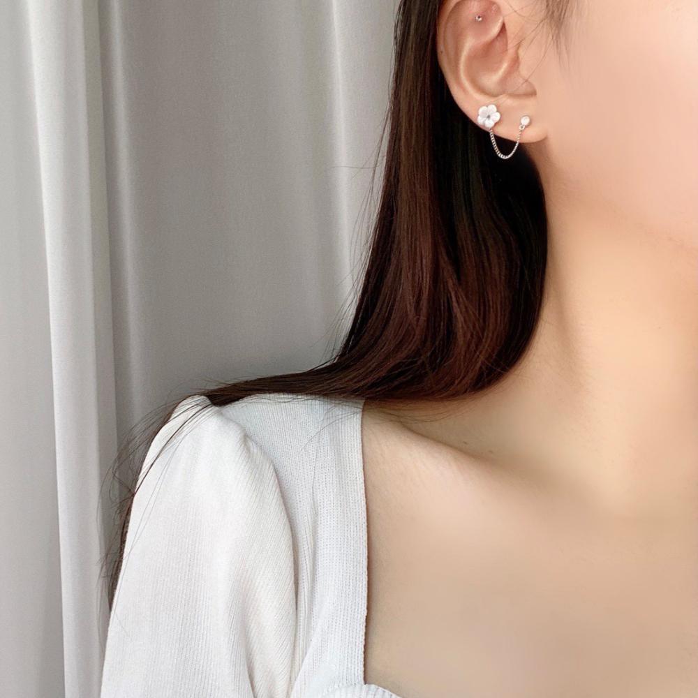 [Ready to ship] Pearl Flower Two-Ring Earrings