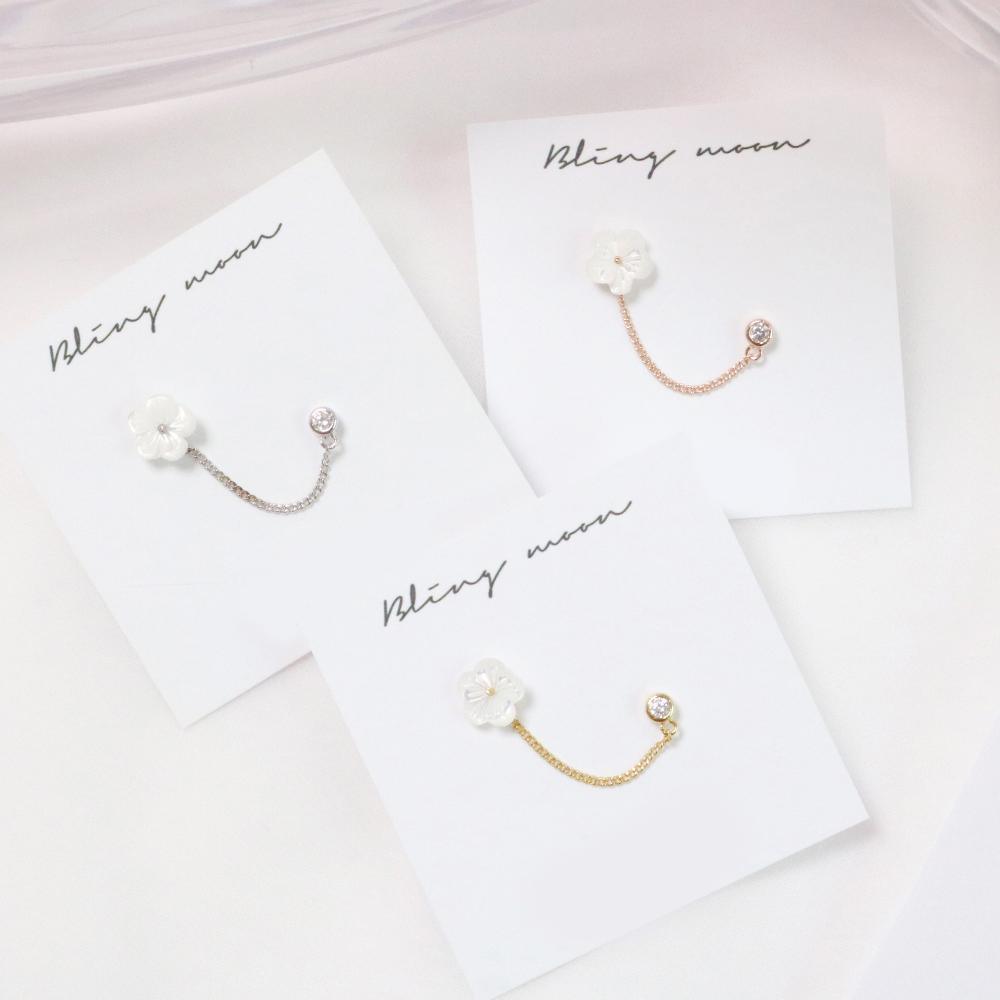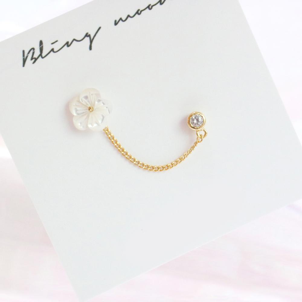 Pearl Flower Two-Ring ピアス Earrings bling moon