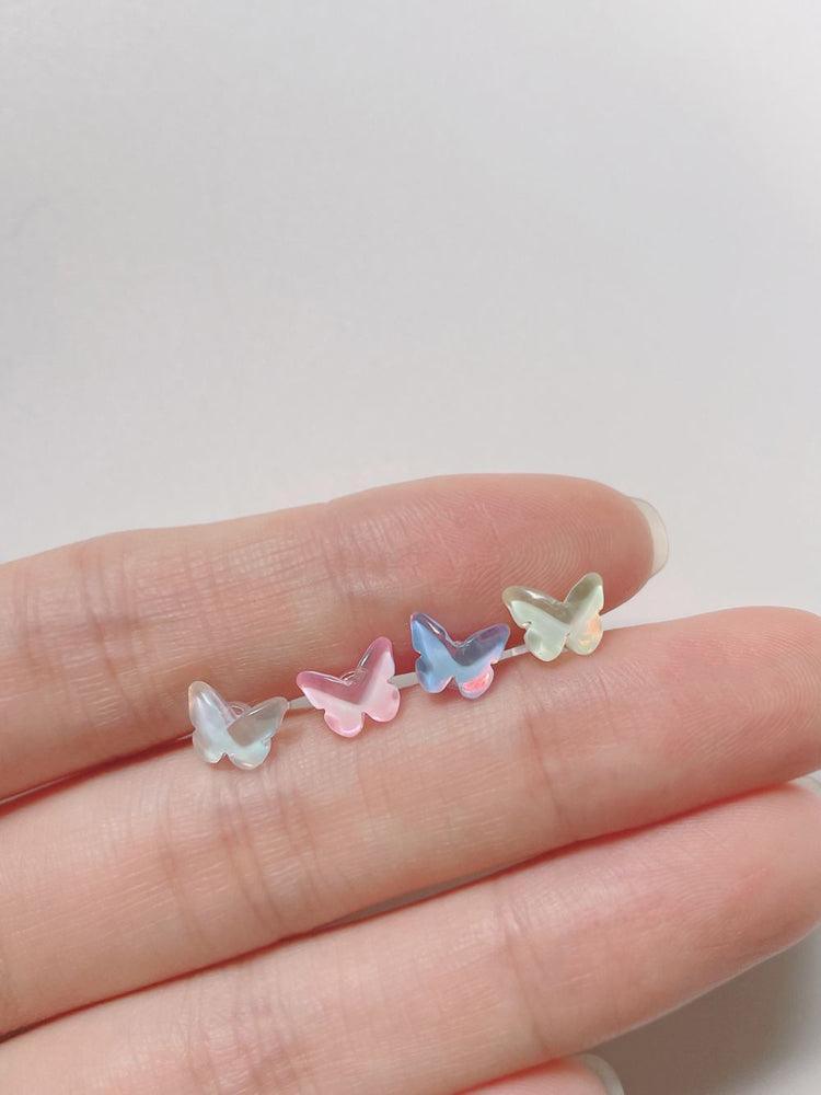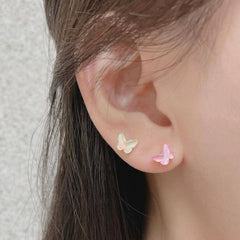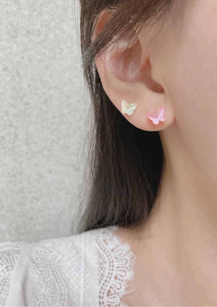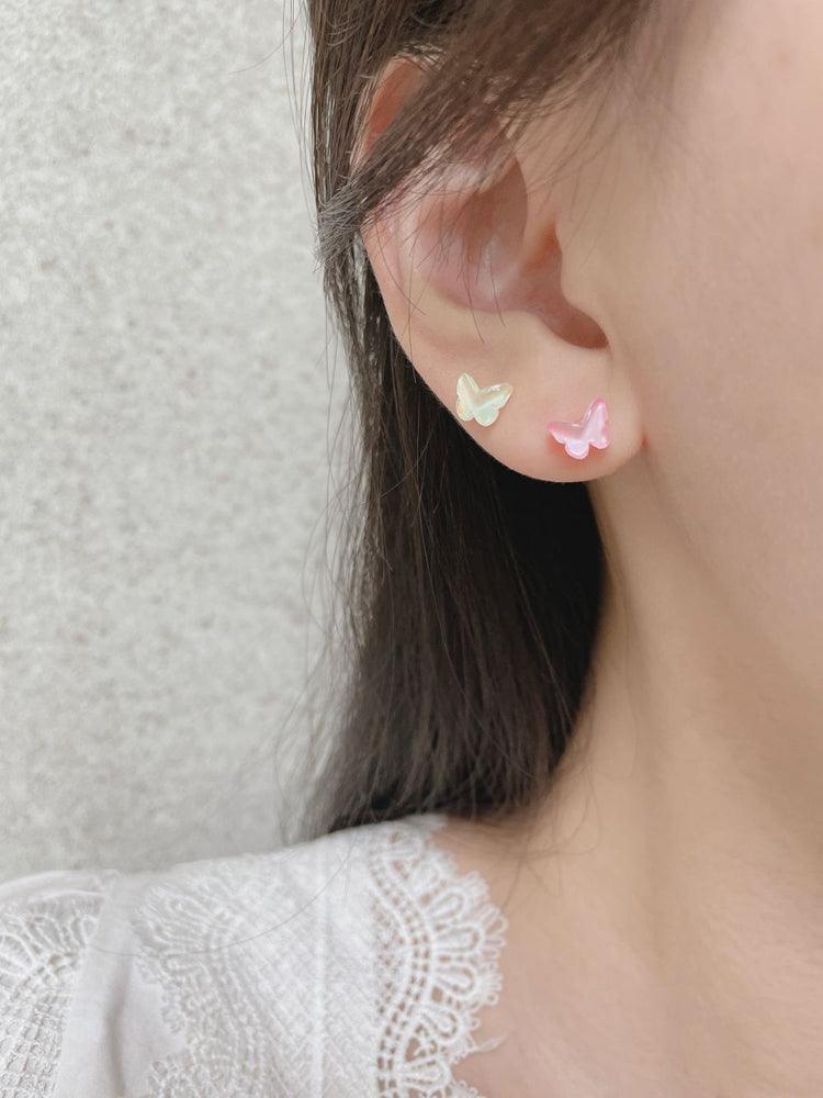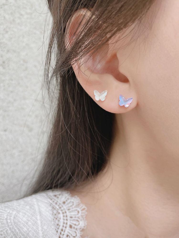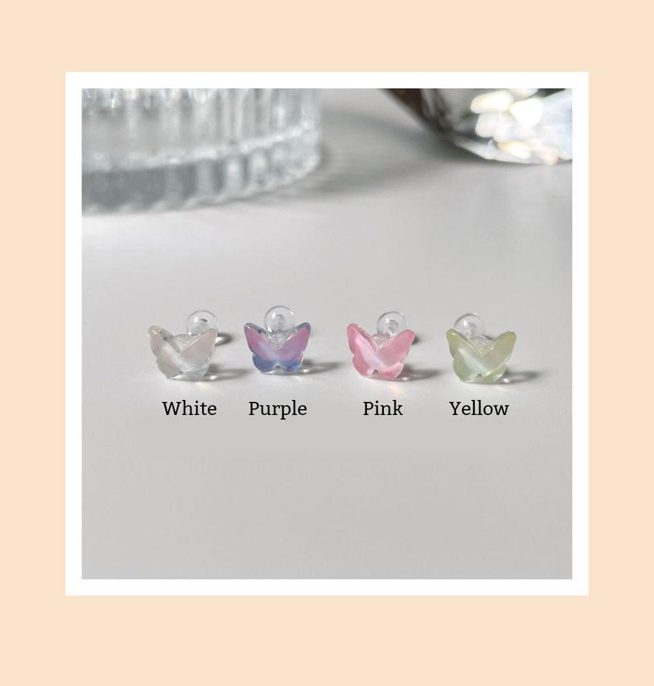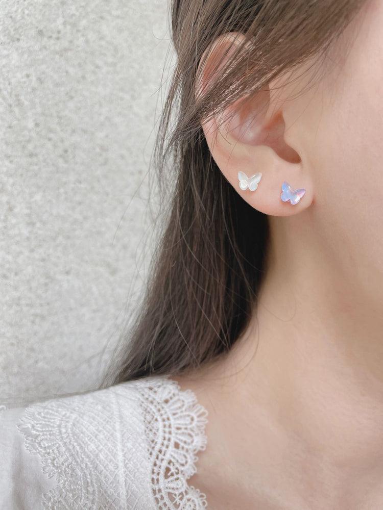 These acrylic earrings feature a glass butterfly and four colors that shine in the light. They are made of materials optimized for allergies and are highly recommended!