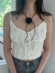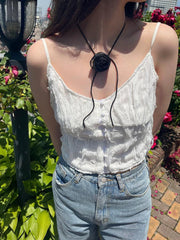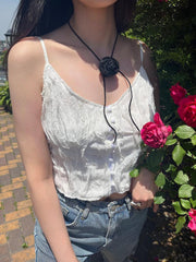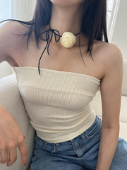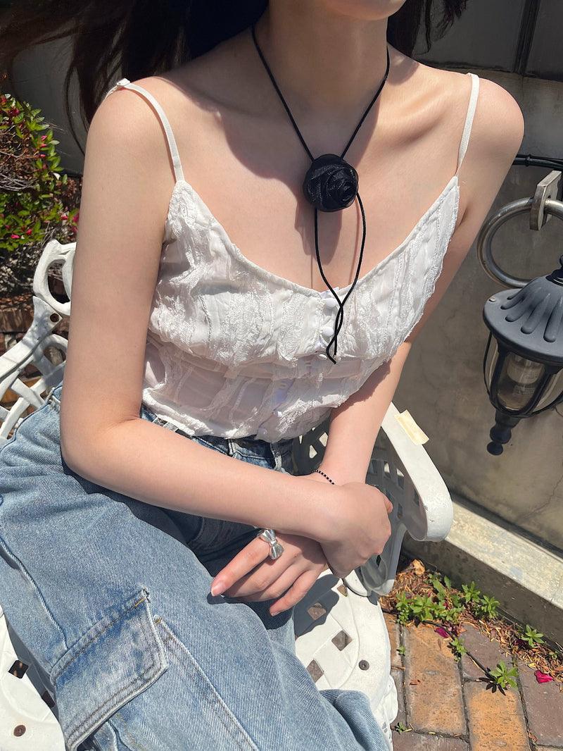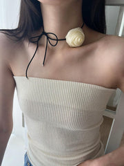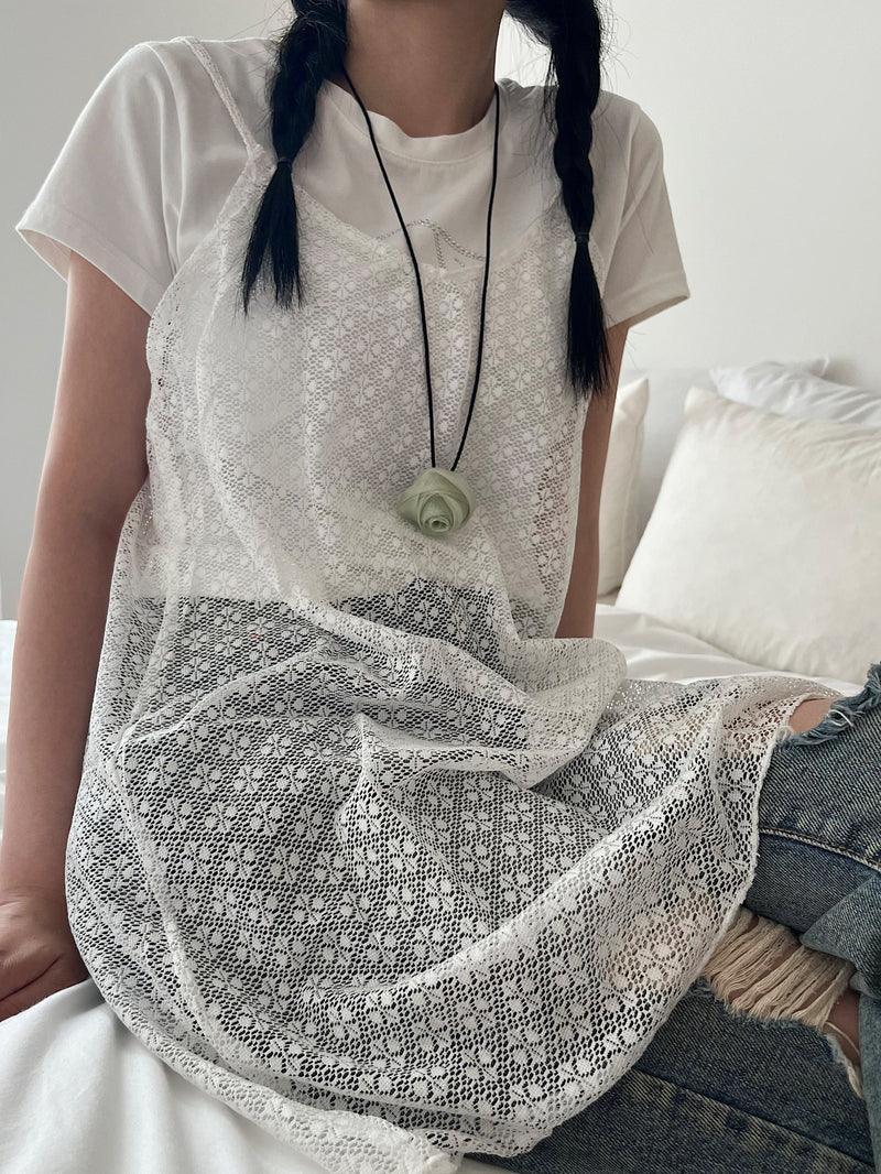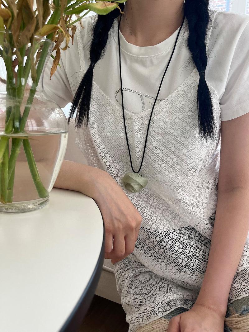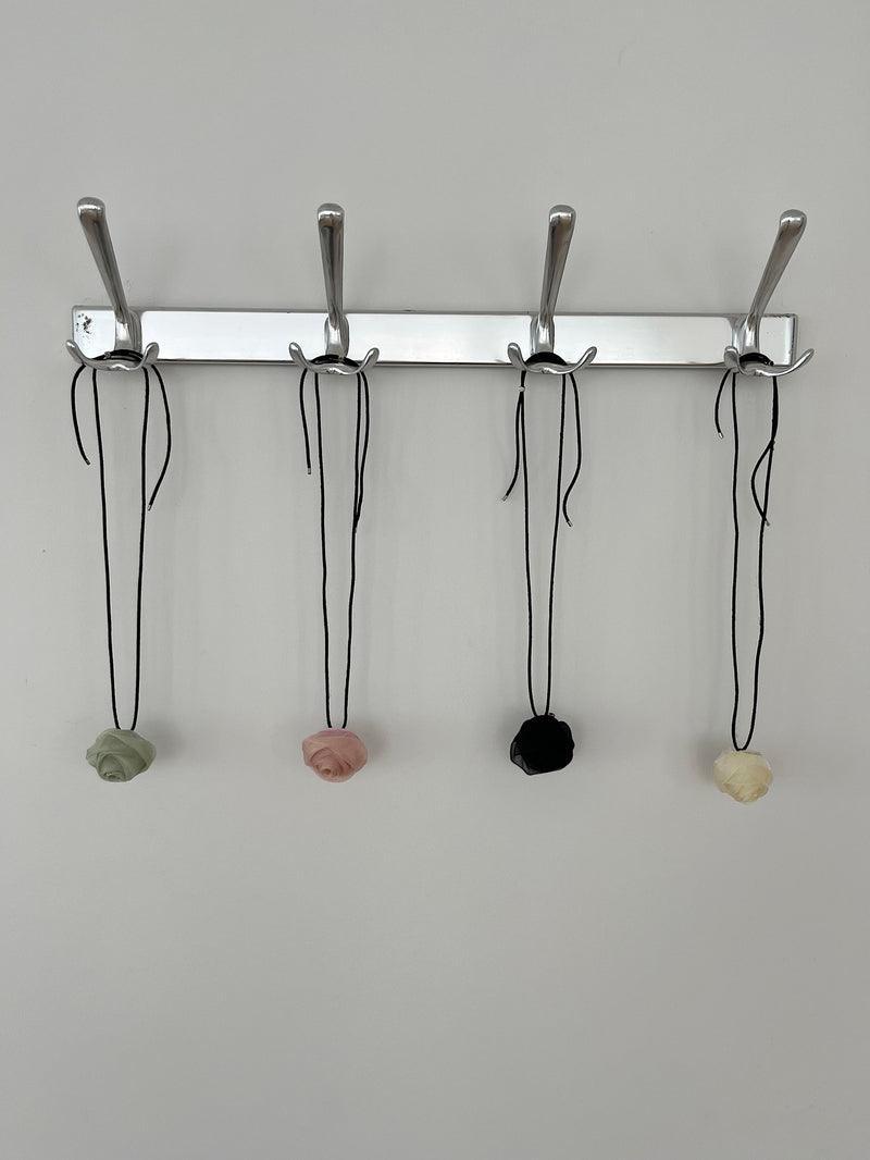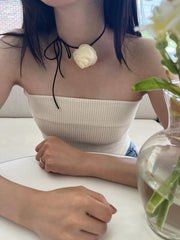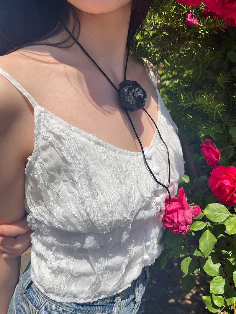 - Rose corsage necklace with subtle pastel colors and sheer texture