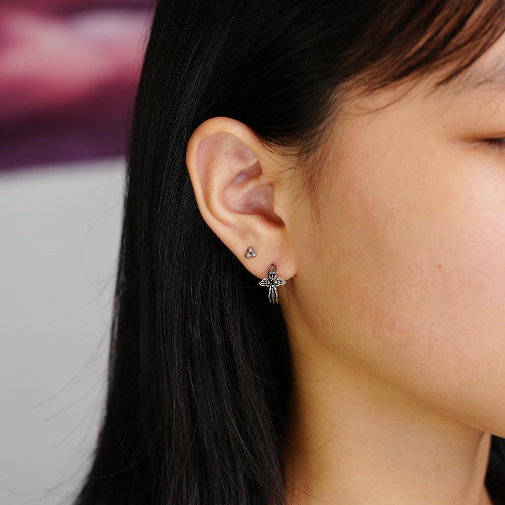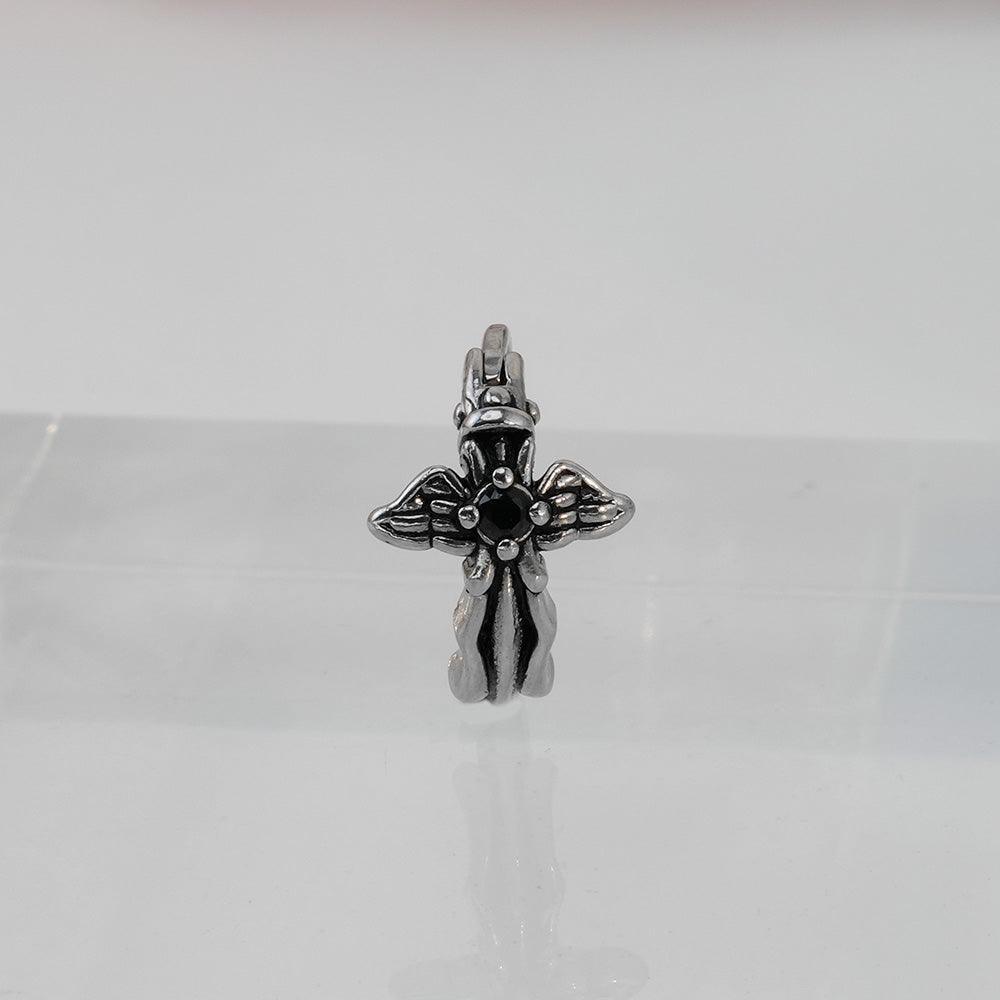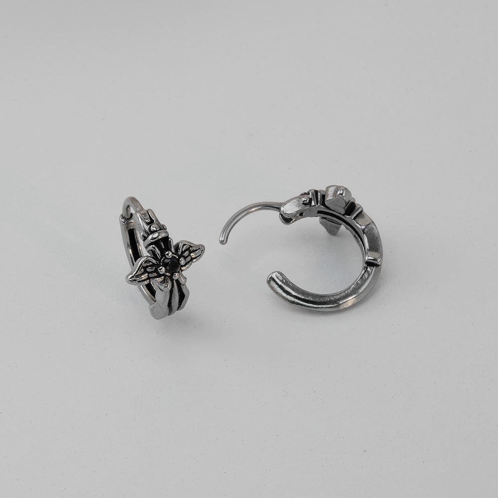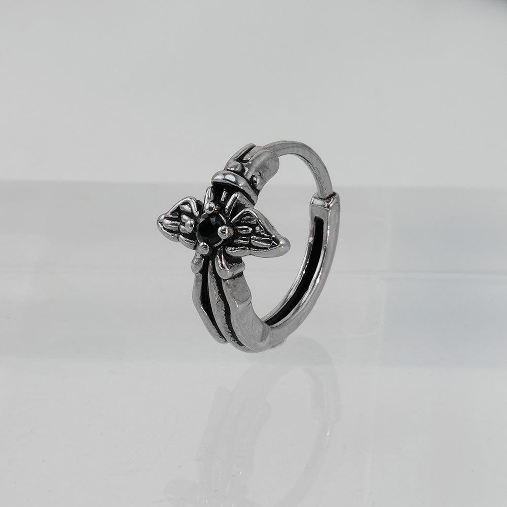 [Full Surgical] Antique Black Angel Wing One-Touch Ring Earrings 18G