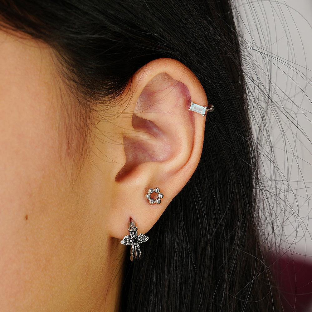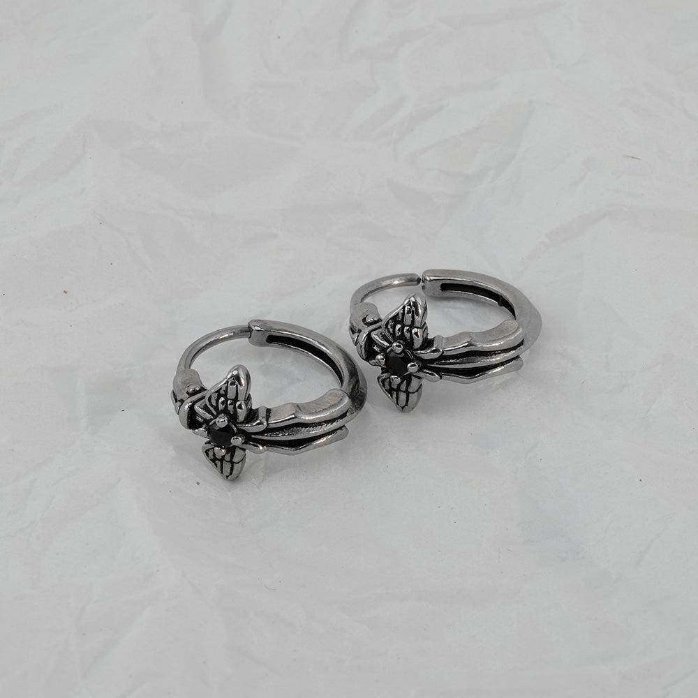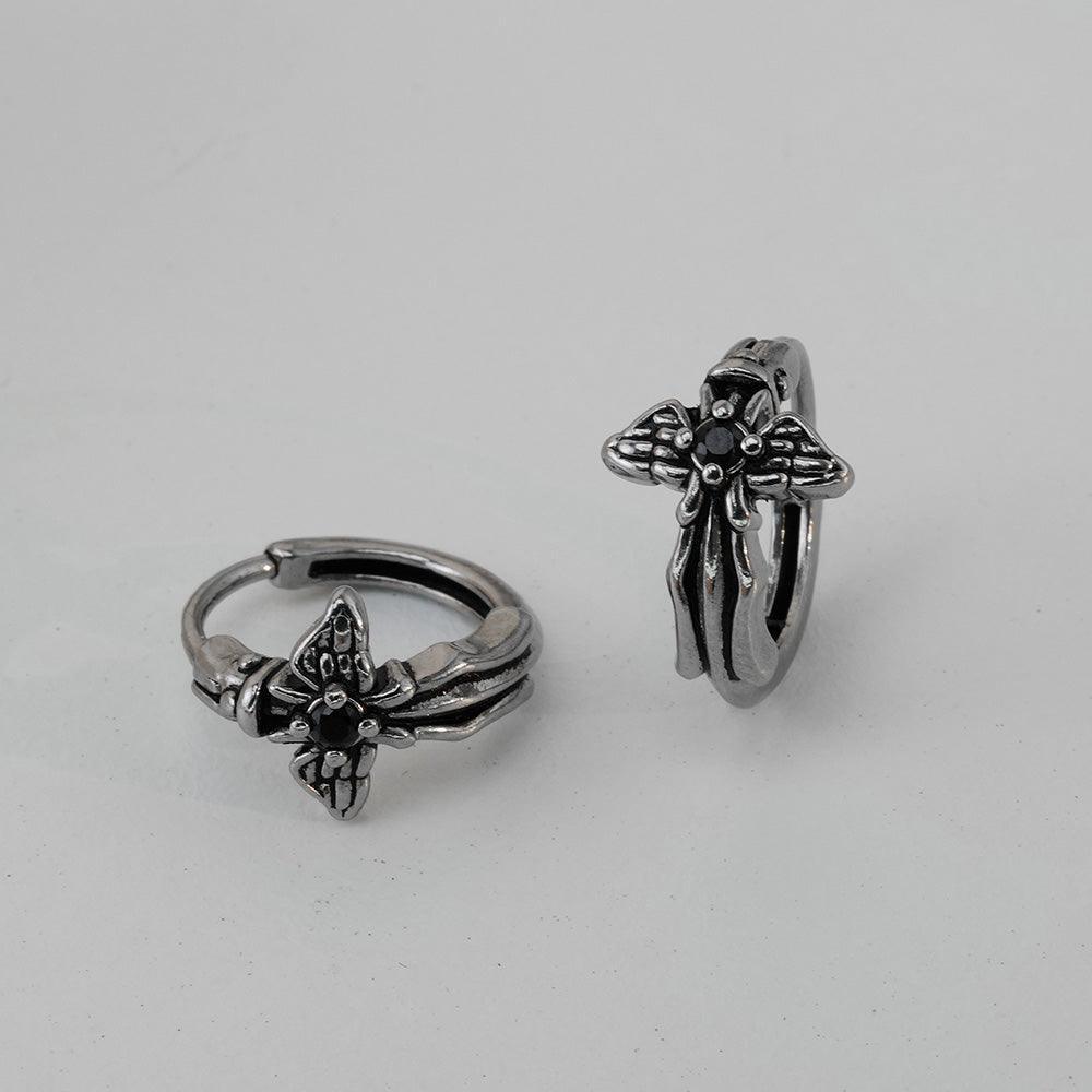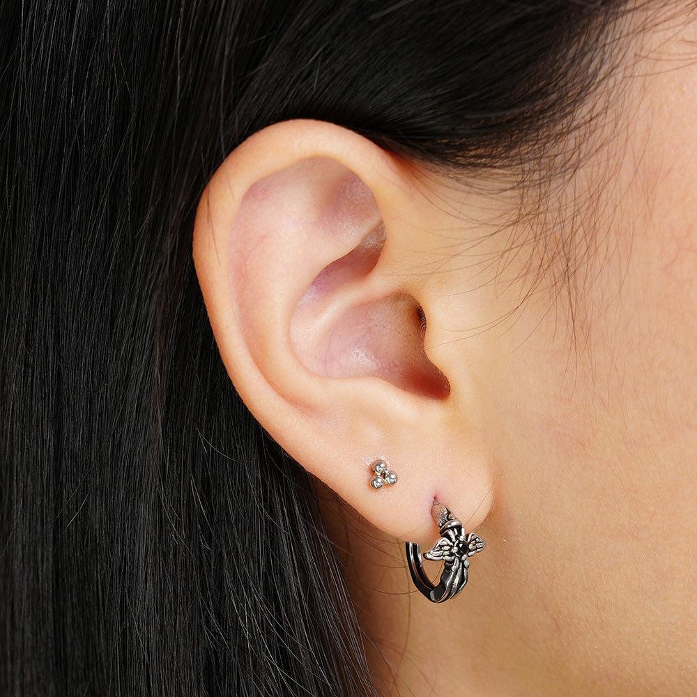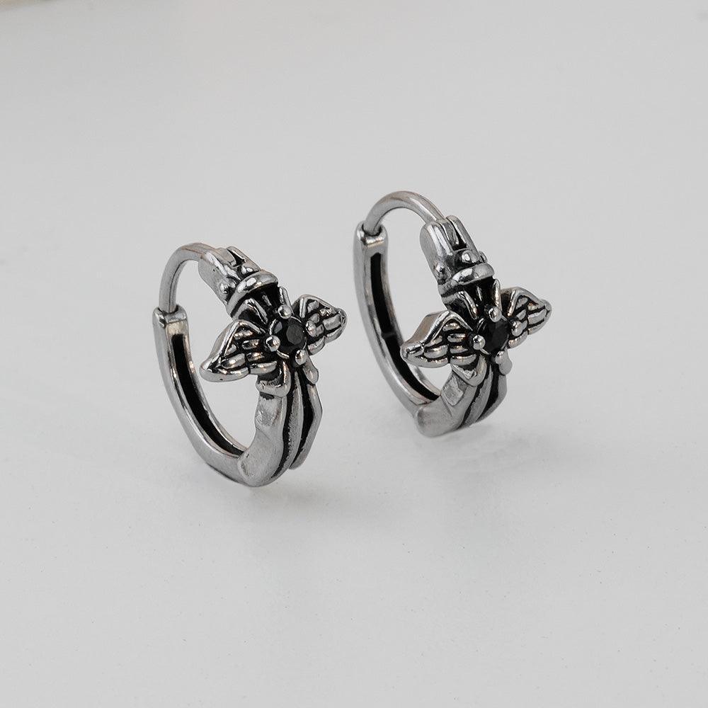 [Full Surgical] Antique Black Angel Wing One-Touch Ring Earrings 18G