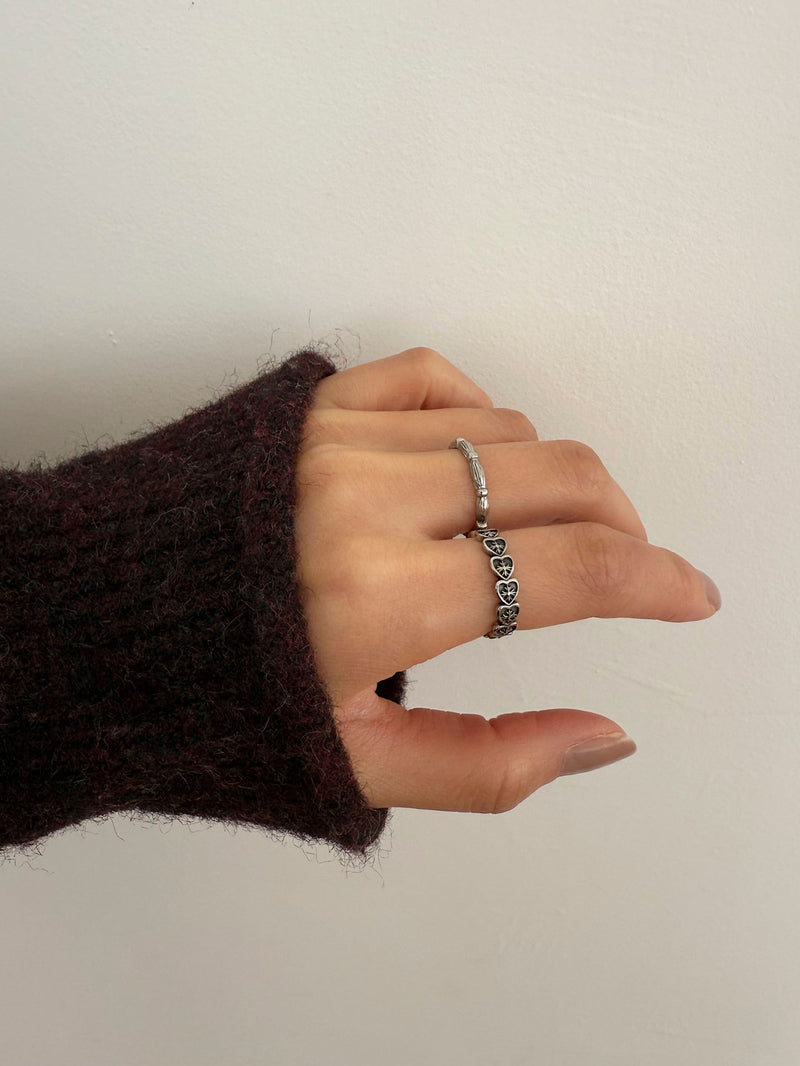 - A ring with a rounded center and three cubic stars set into it.