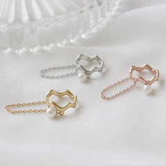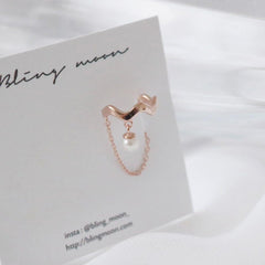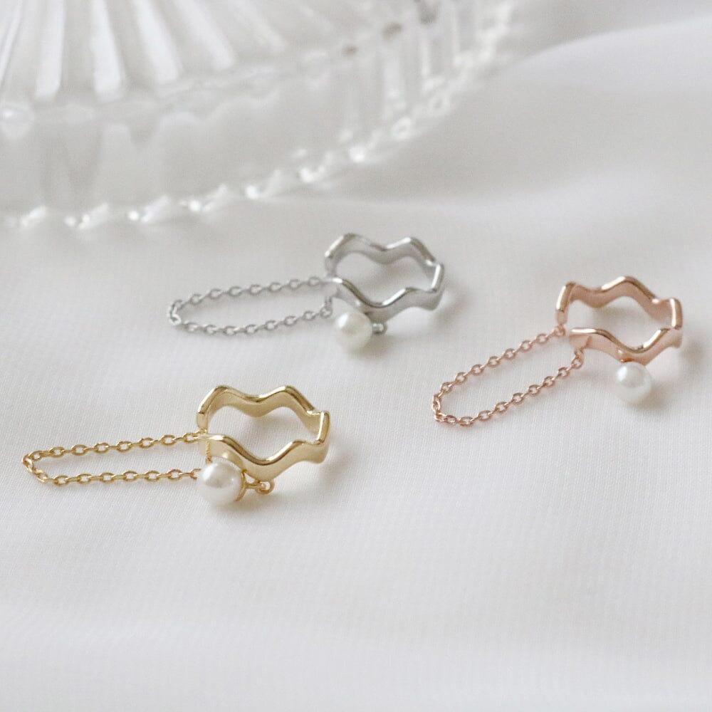 When worn, the chain falls along the line of your ear and the smooth pearls give this ear cuff a delicate feel!