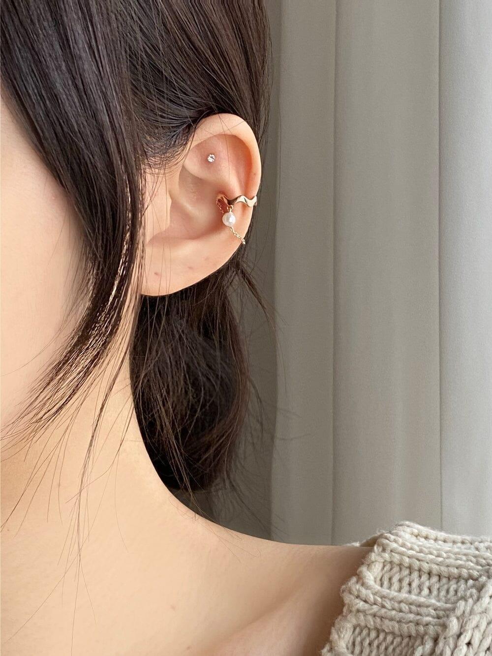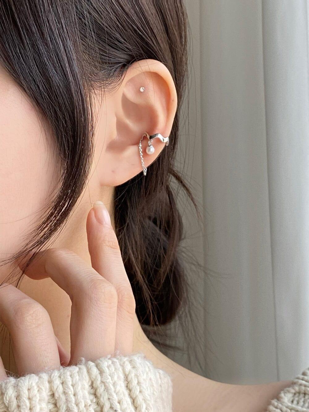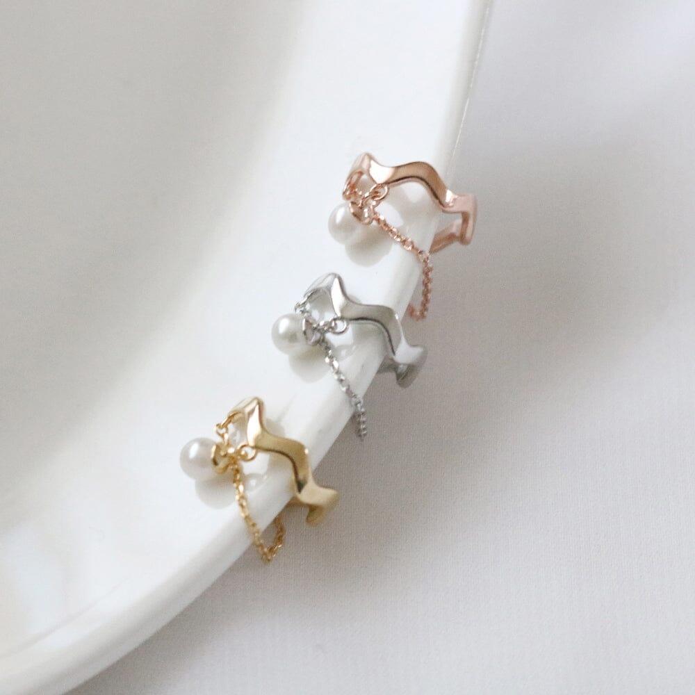 ライン真珠 イヤーカフ Earcuffs bling moon