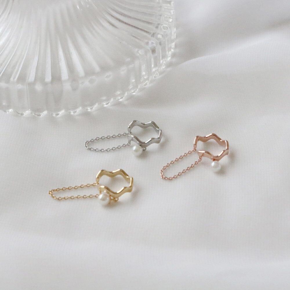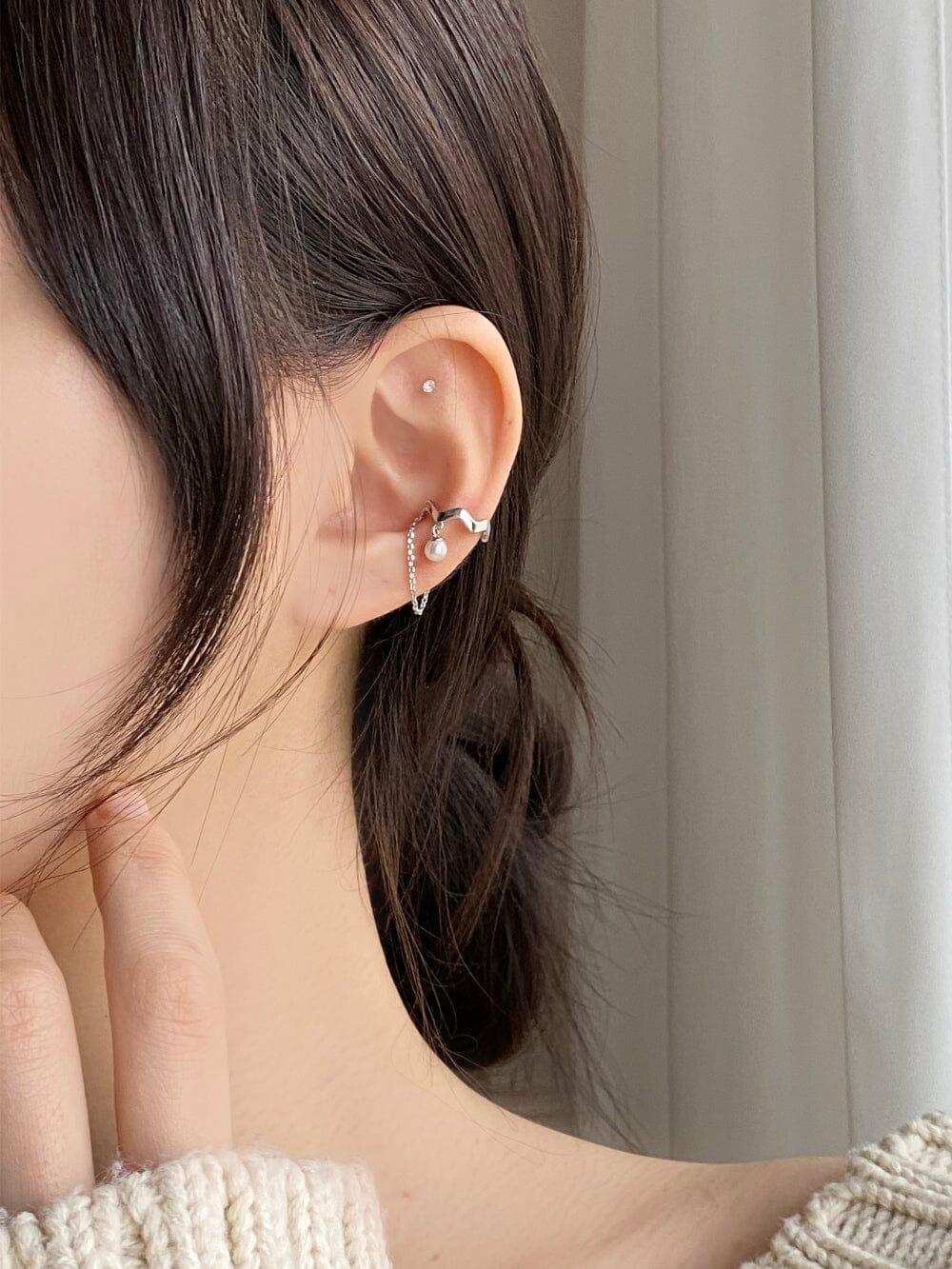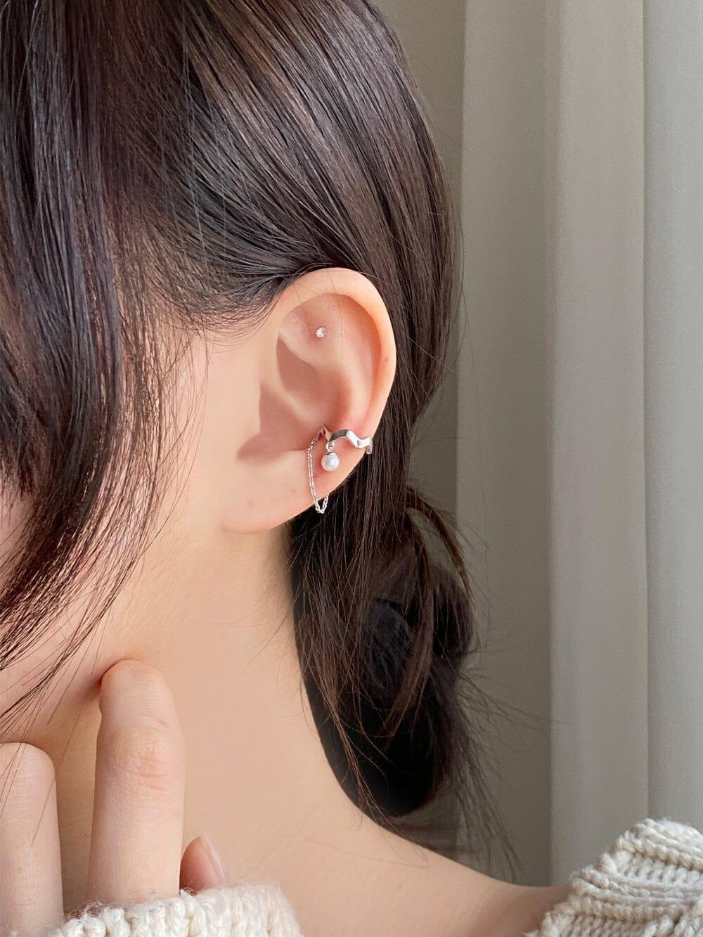 ライン真珠 イヤーカフ Earcuffs bling moon