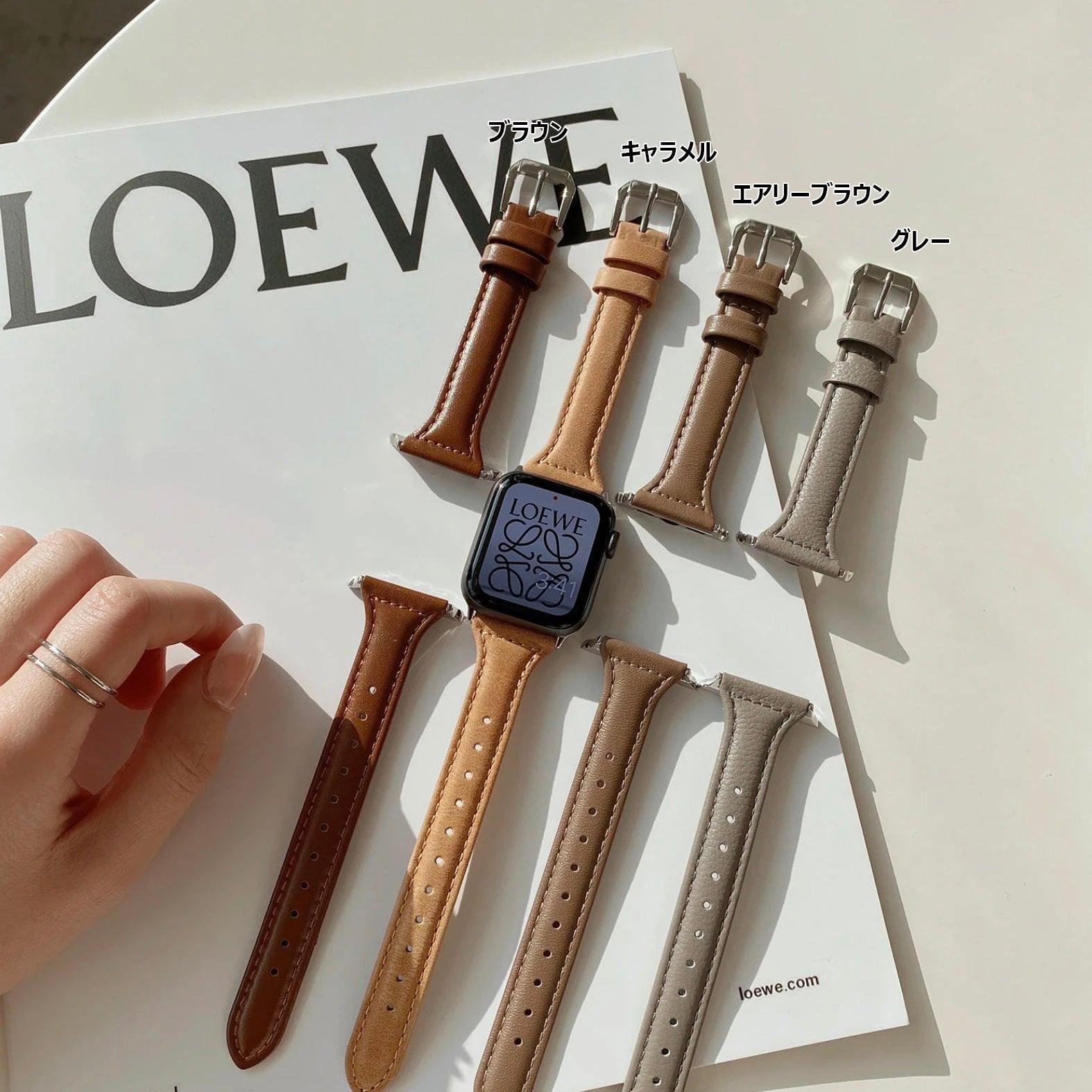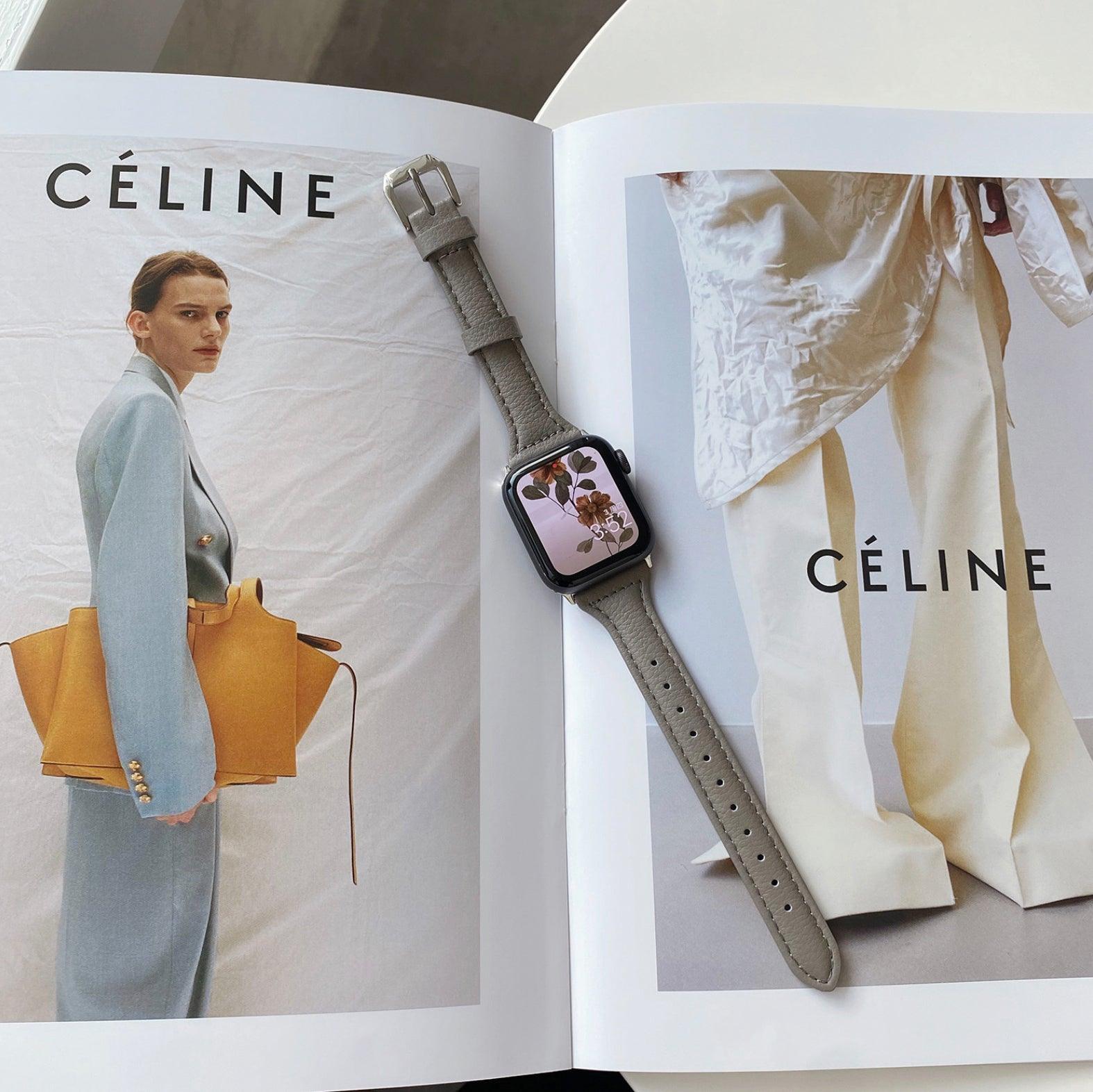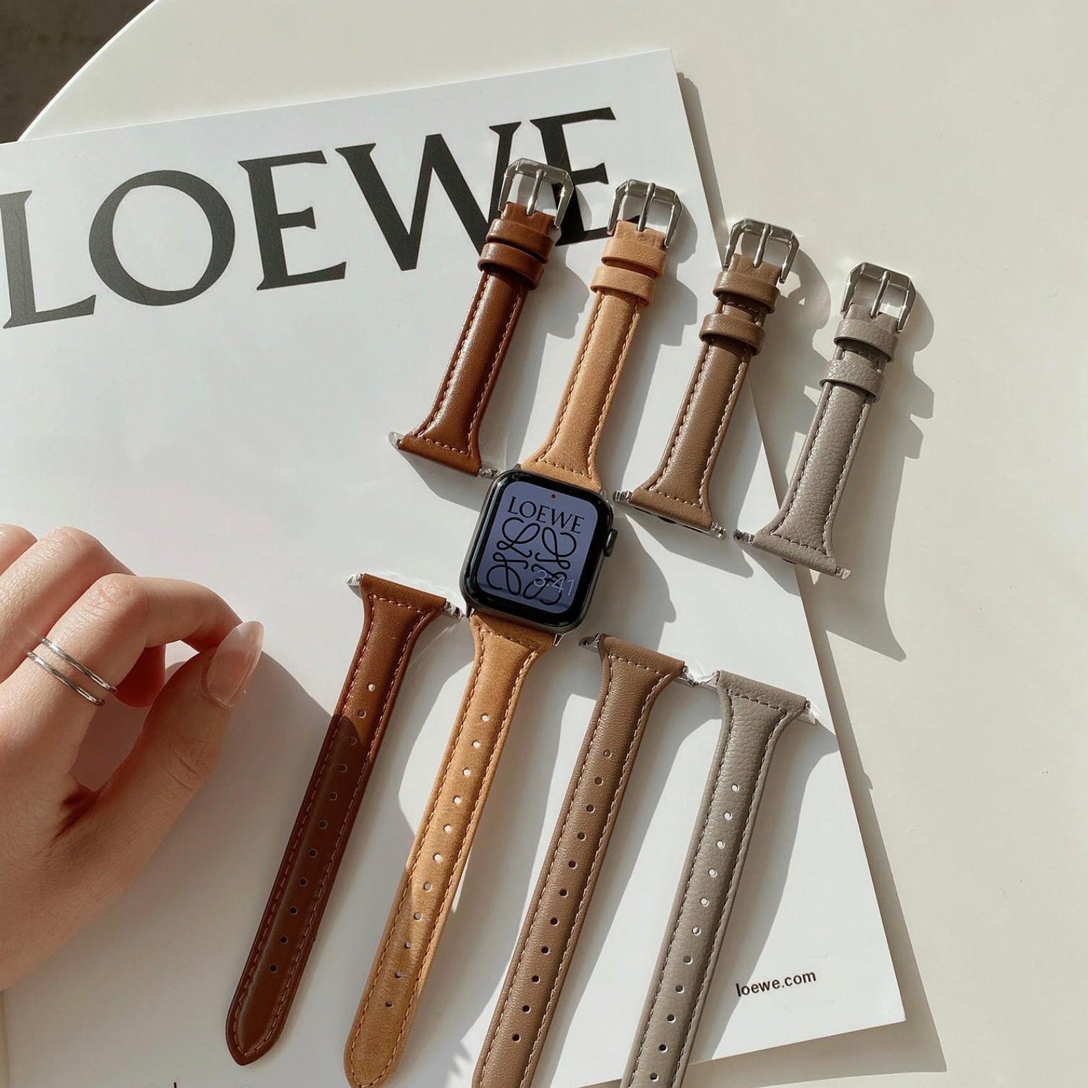 A modern genuine leather Apple Watch band.