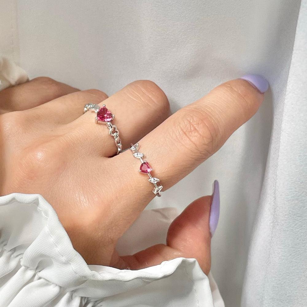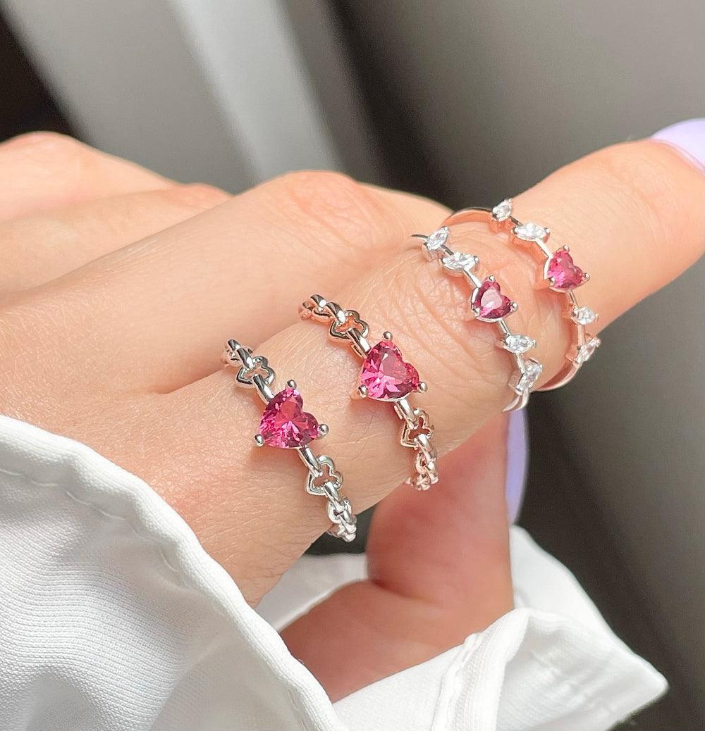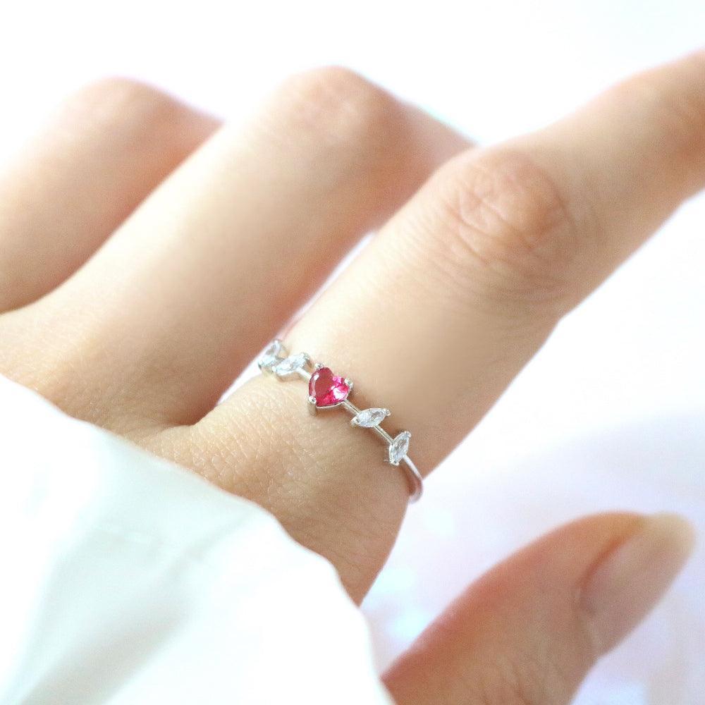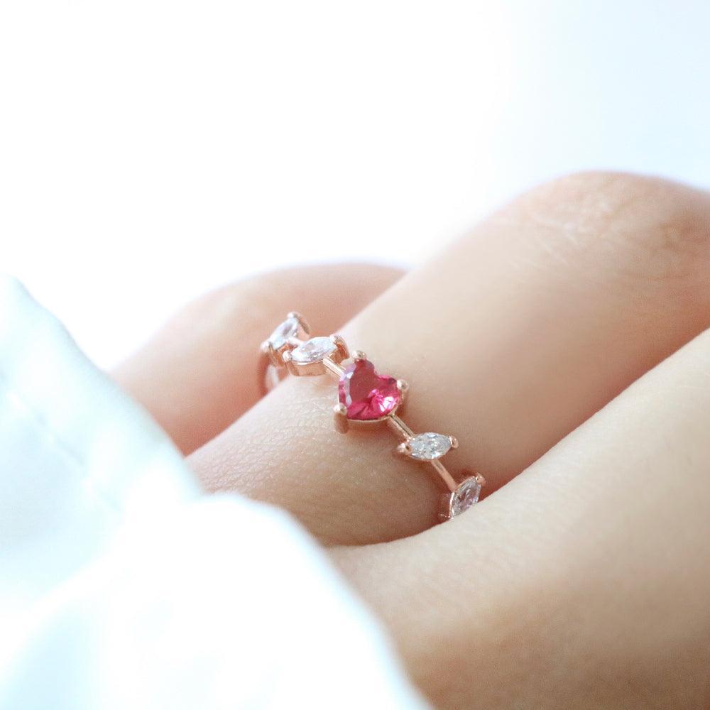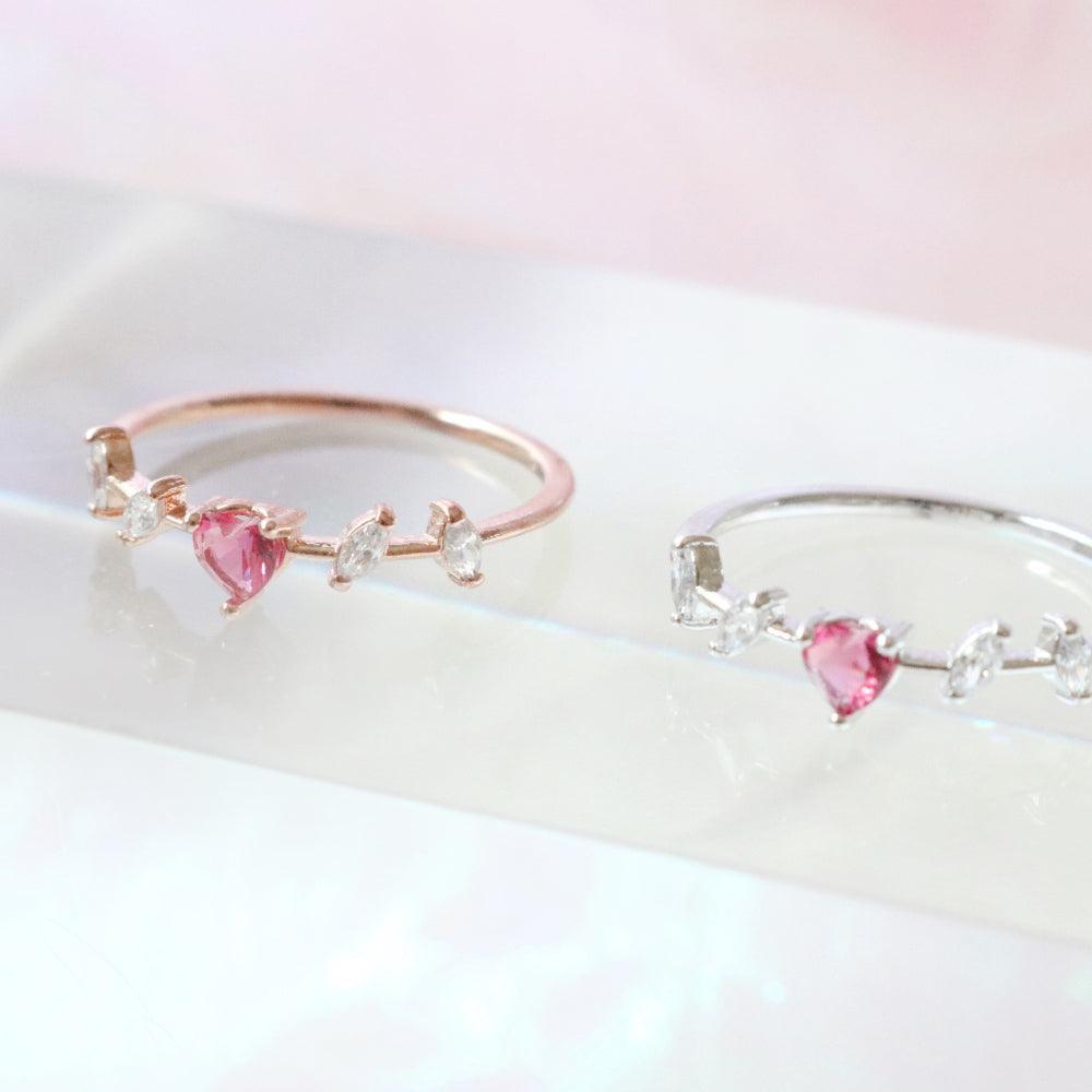 The opal cubic zirconia in the heart frame makes this ring even more attractive!