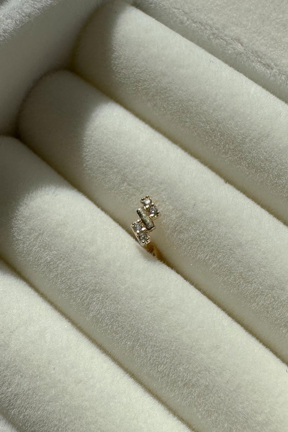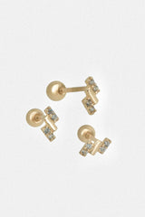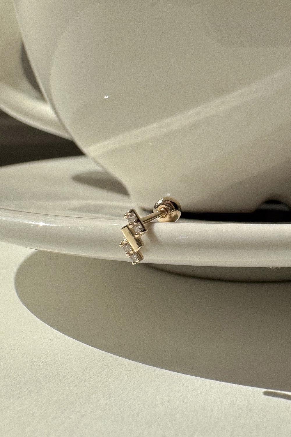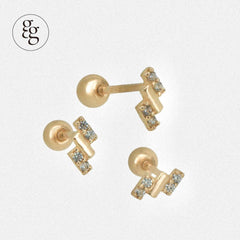 These earrings have cubic and plain bars arranged in a rhythmic pattern, giving them a striking shine.