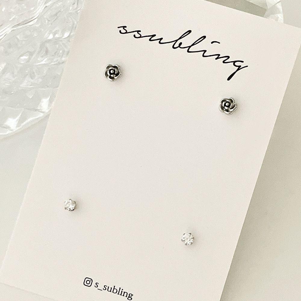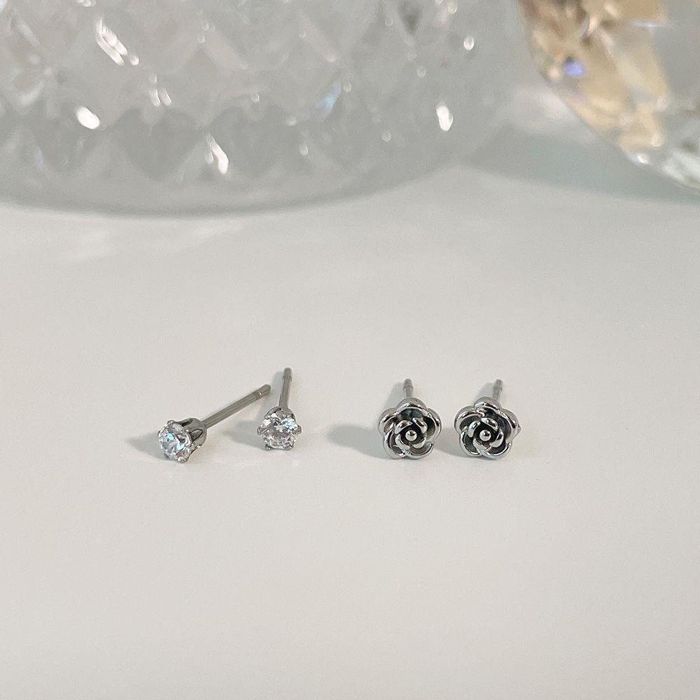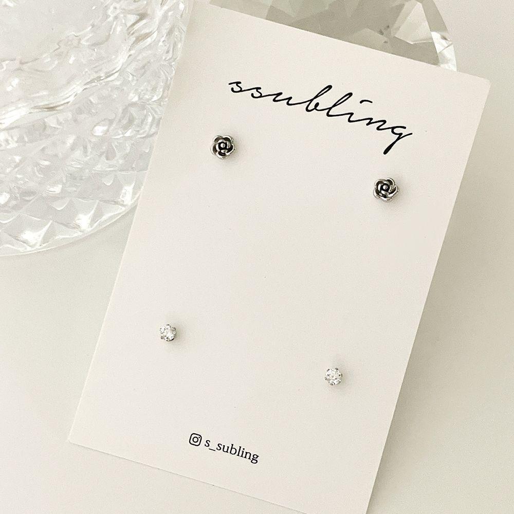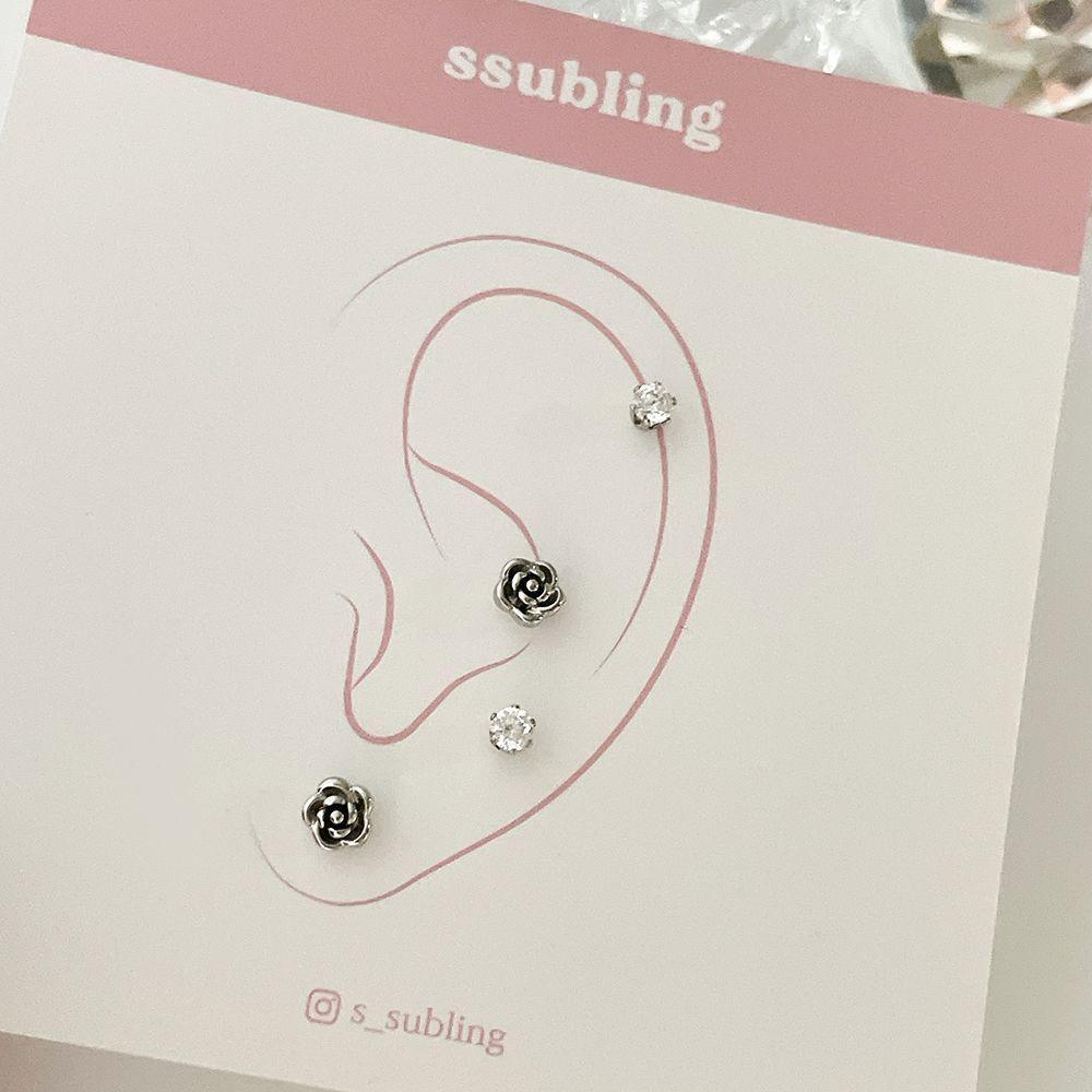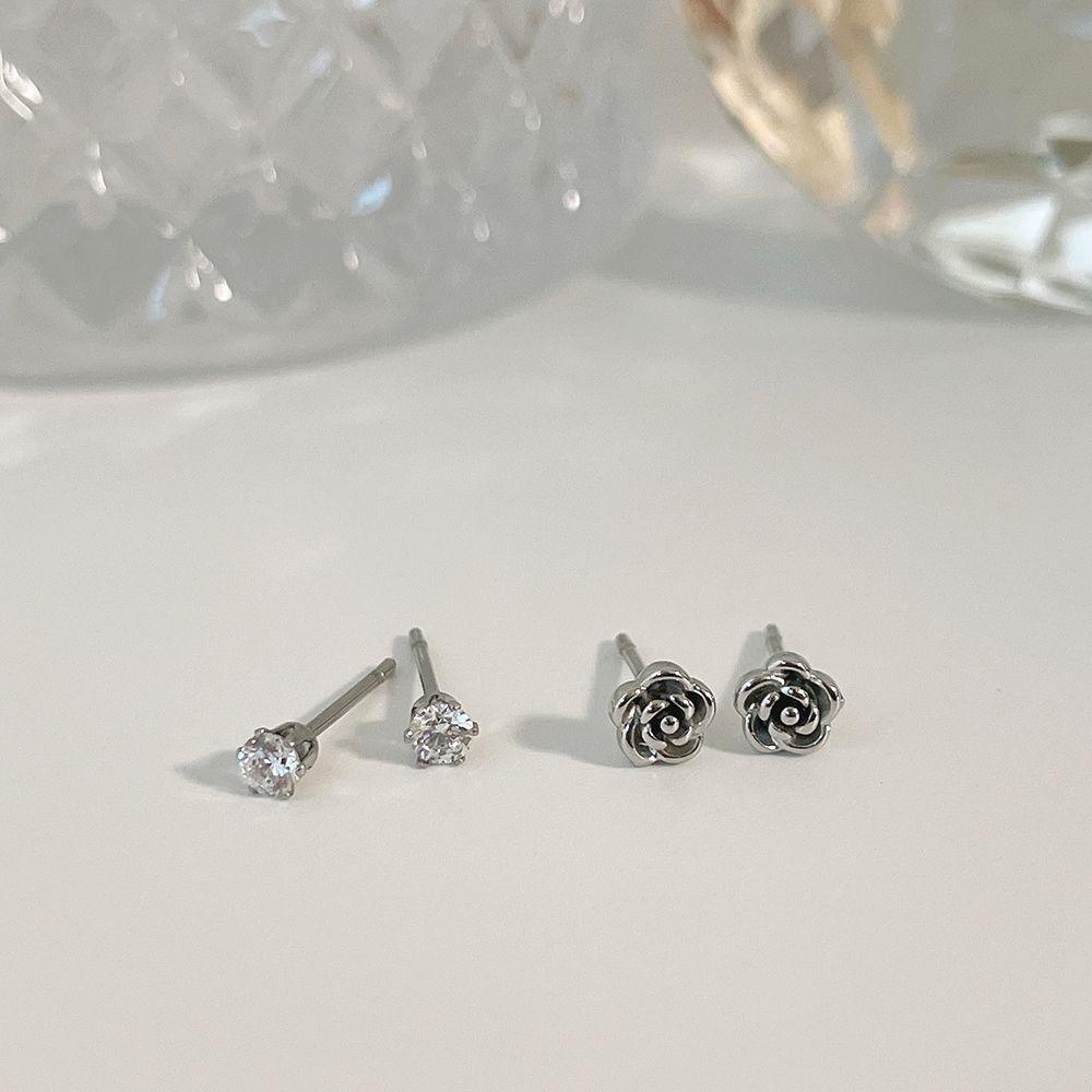 [Set of 4] [Surgical] Rose Cubic Zirconia Earrings