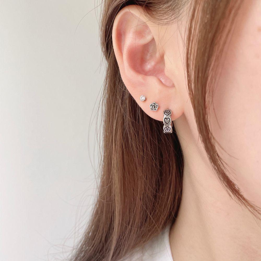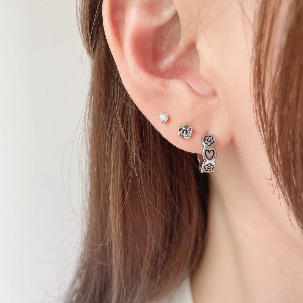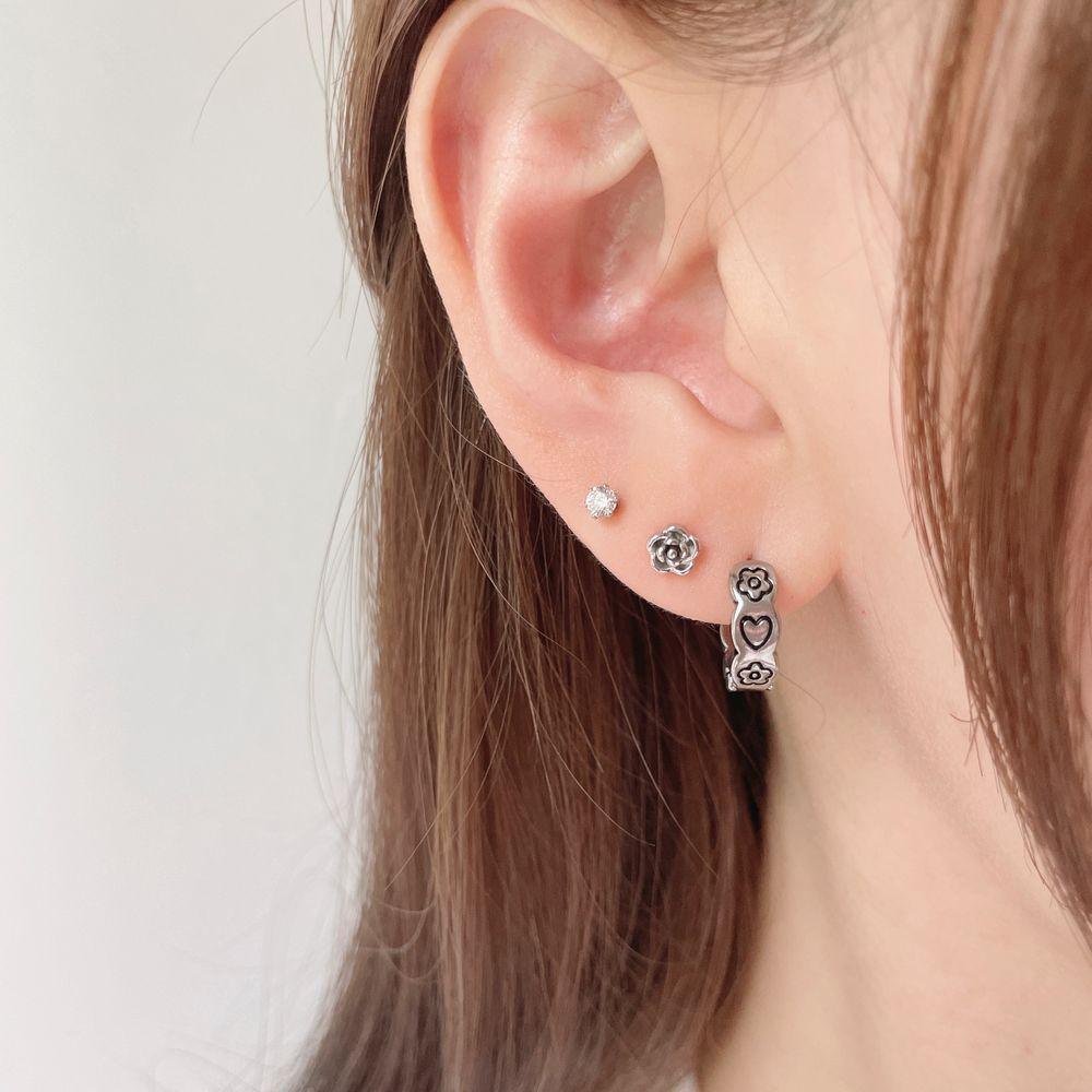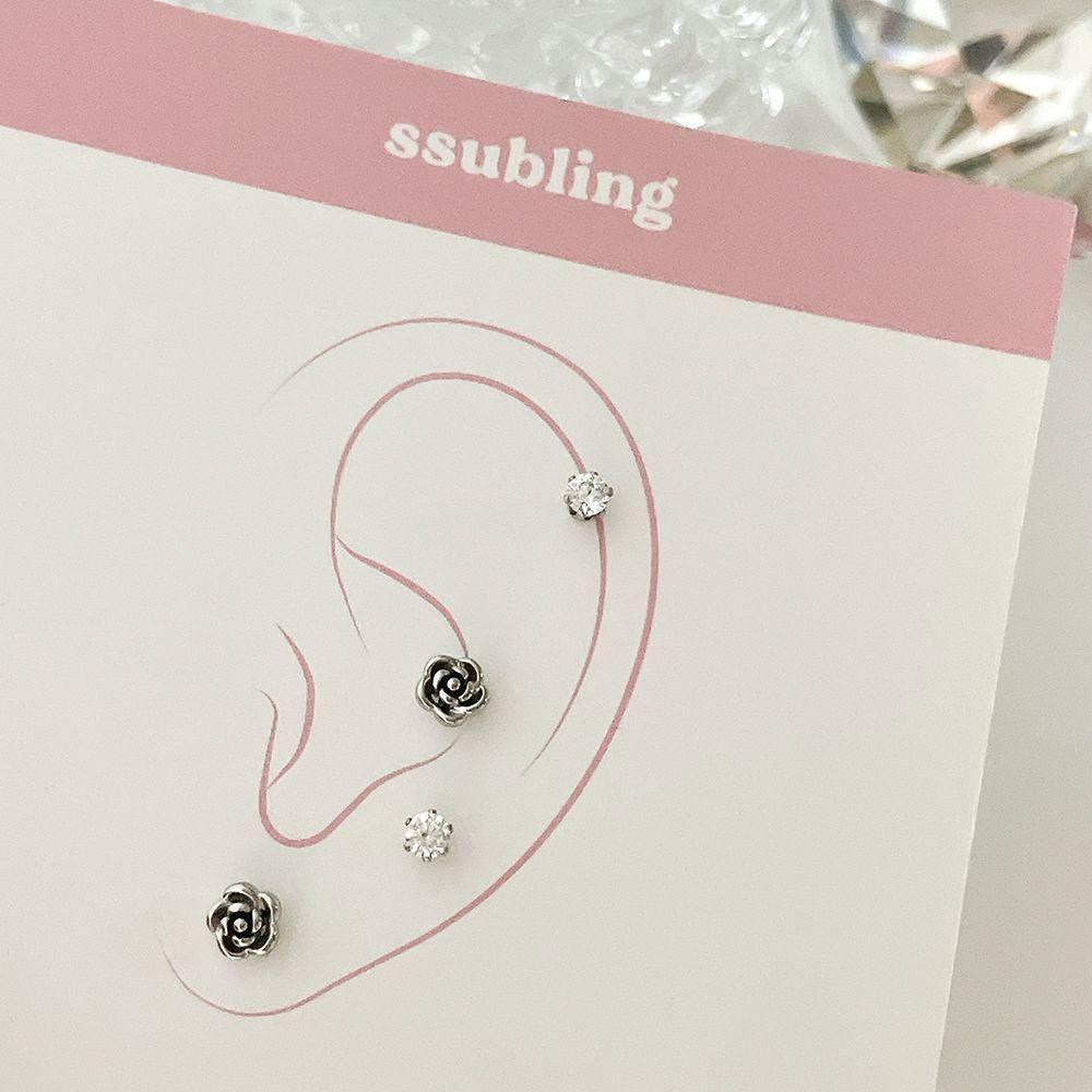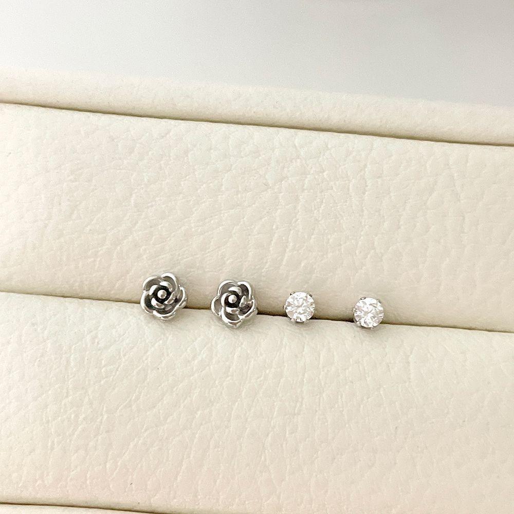 [Set of 4] [Surgical] Rose Cubic Zirconia Earrings