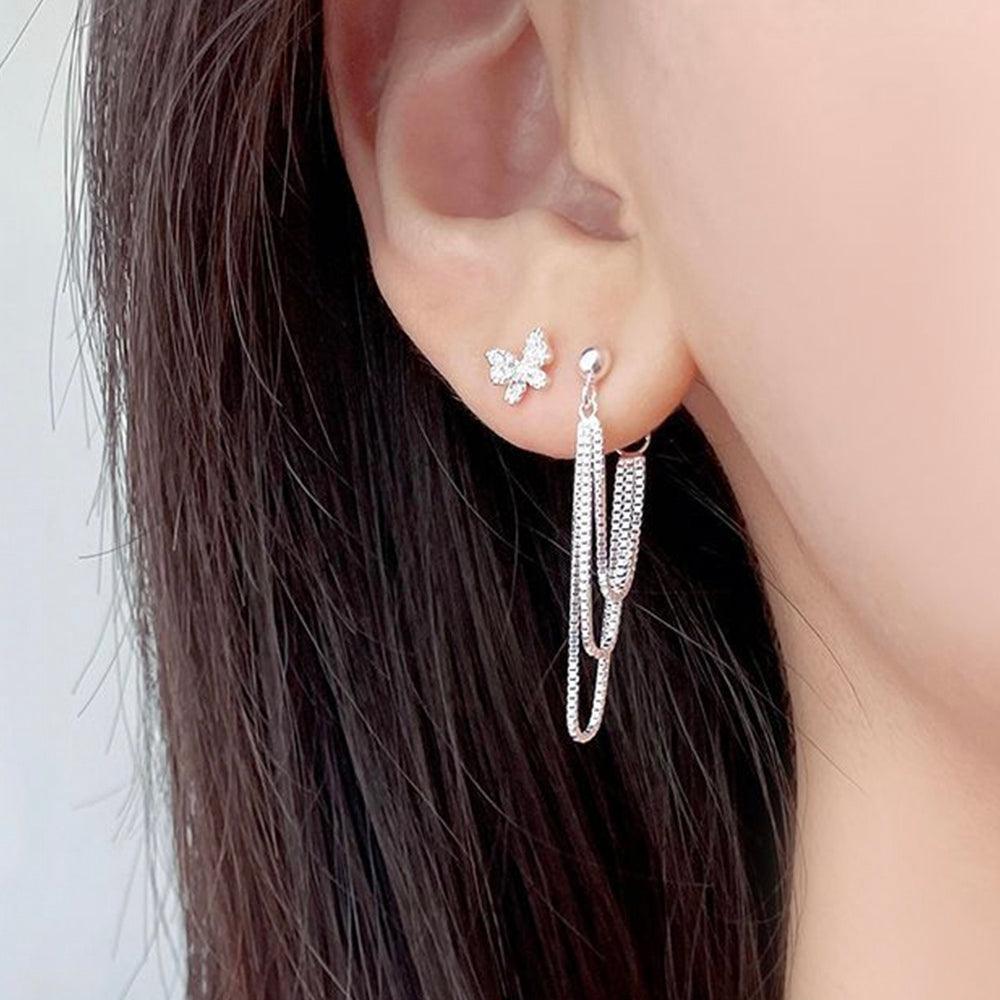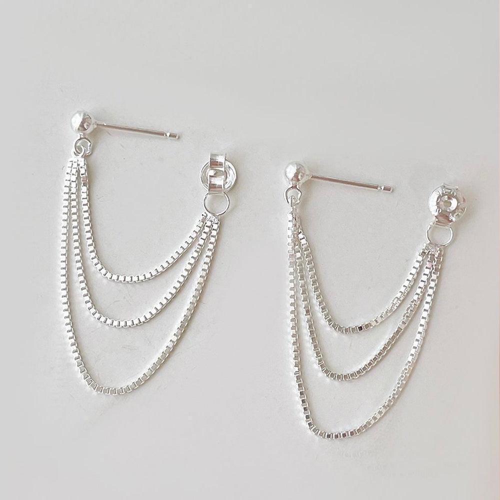 The back clutch and chain are connected, so it's easy to wear, and the chain that falls when you wear it shines, making it a feminine product :)