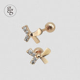 These sparkle motif earrings are always loved. Its small size means you can wear it anywhere you want. A small cubic zirconia is set in the center to add sparkle, making it a small but striking focal point. Color: Yellow gold, Rose gold, White...- From $740.00