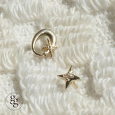 These earrings feature a star motif and an unusual design that gives them a unique feel. Recommended for layering and matching with star, sparkle, and other earrings. Color: Yellow gold Metallic: 14k Gold (58.5%) Weight: Approx. 0.20g Size: 5.2*4.2mm Bar thickness : 0.7mm /...- From $792.00