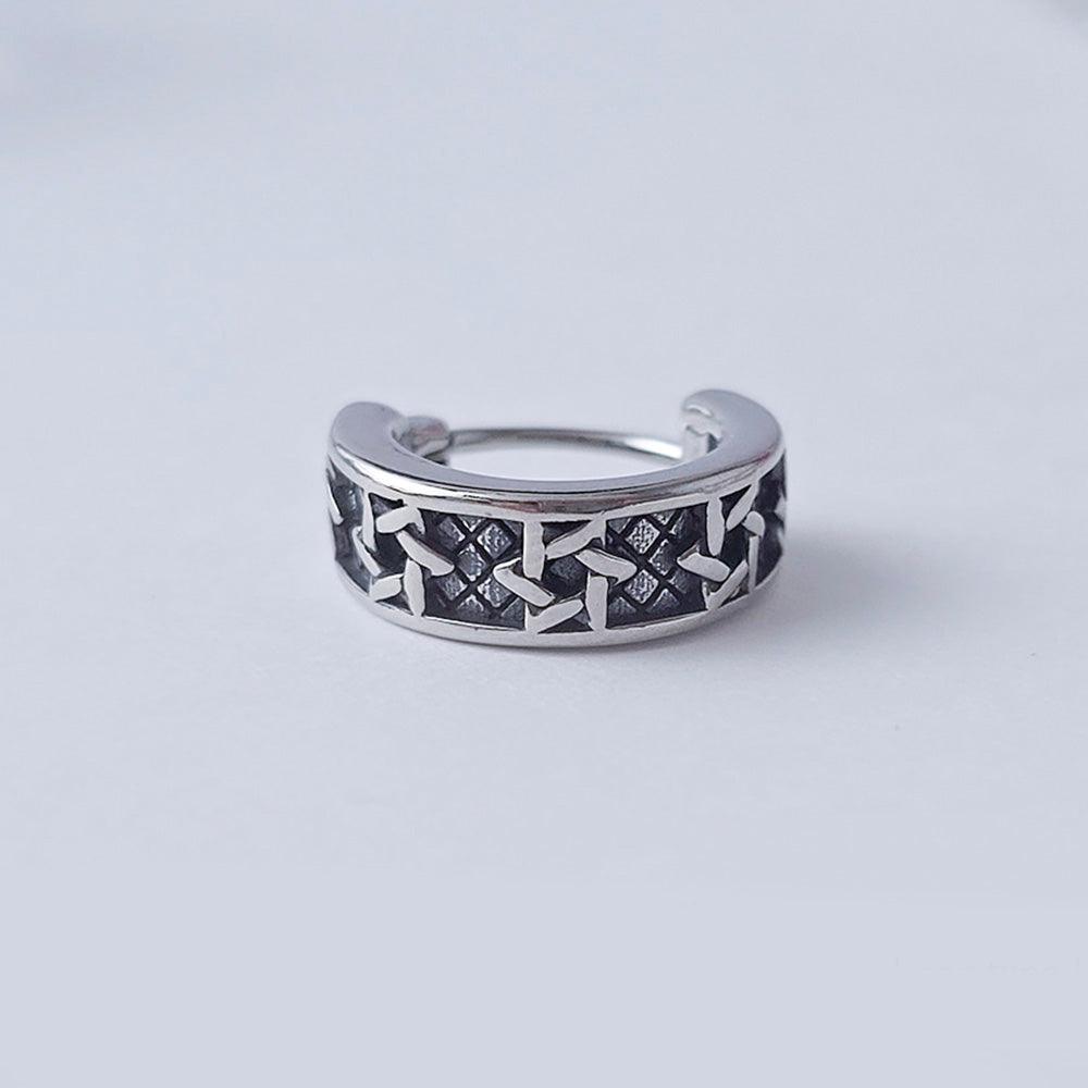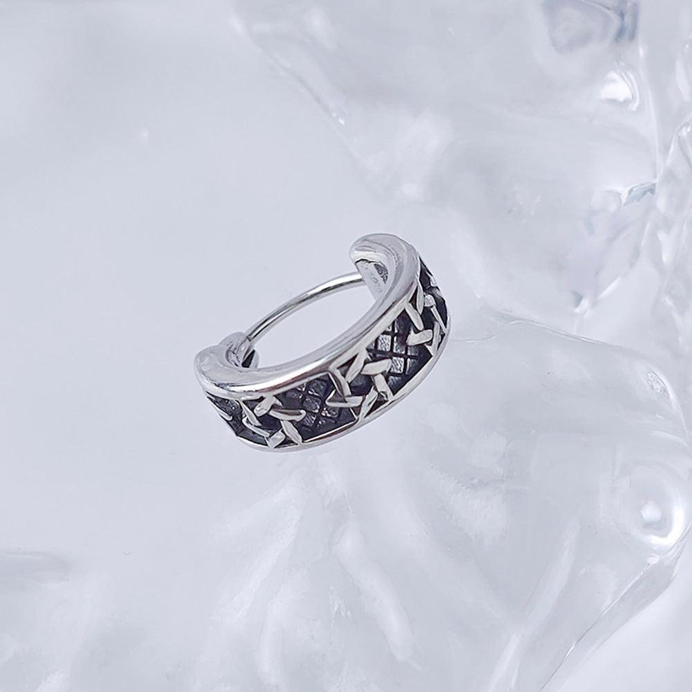 These one-touch ring earrings feature a unique engraved pattern.