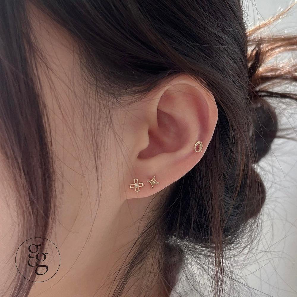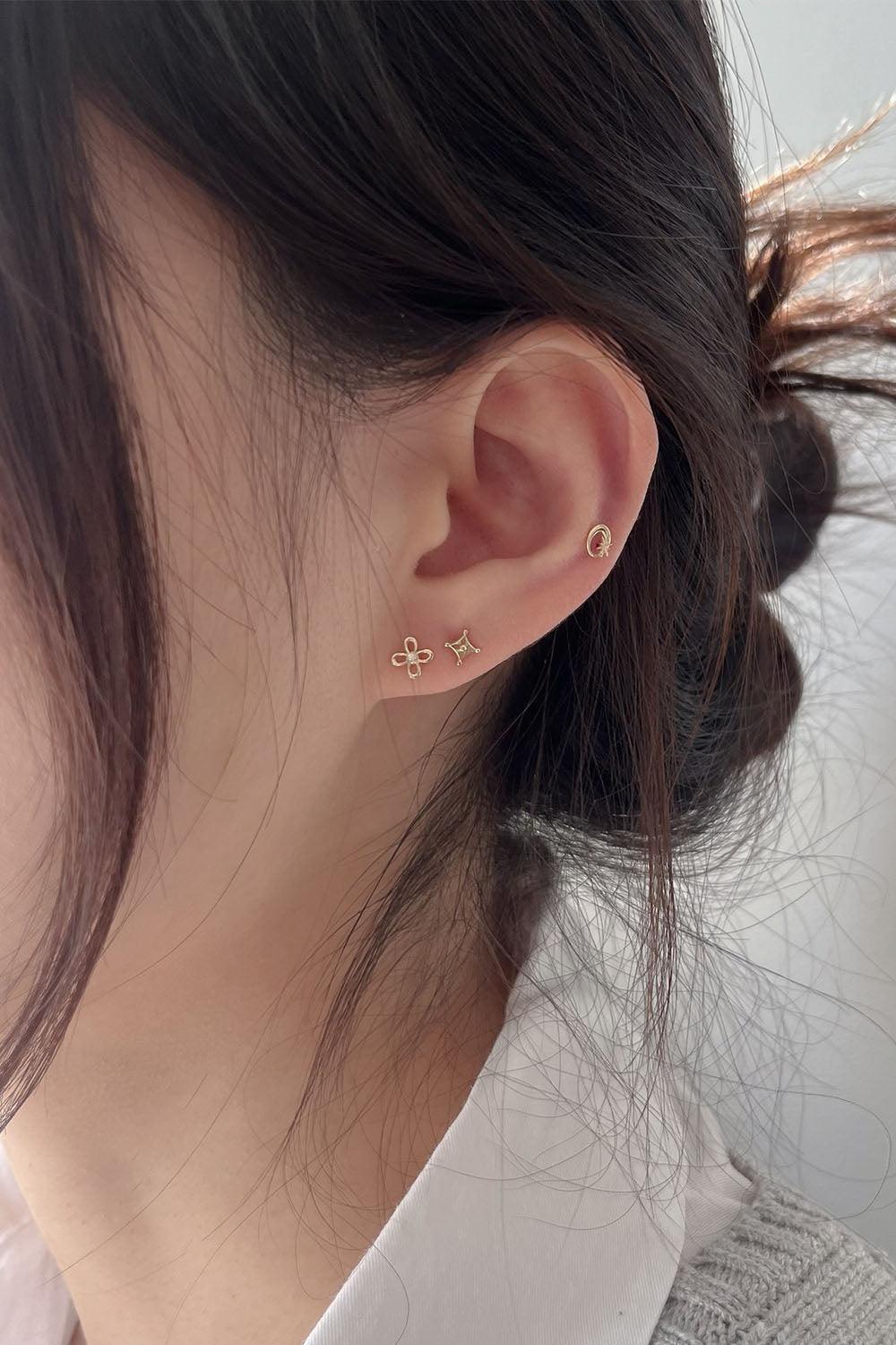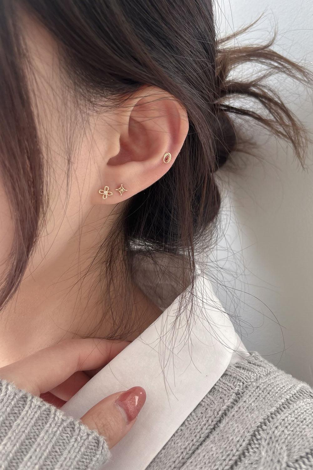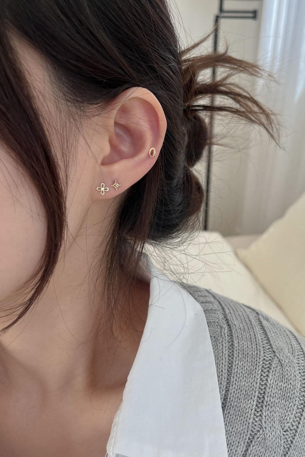 These earrings feature a simple petal line with a cubic accent in the center. They are easy to wear layered anywhere with a gorgeous mood, and are recommended as neat, everyday earrings that fit snugly in the ear.