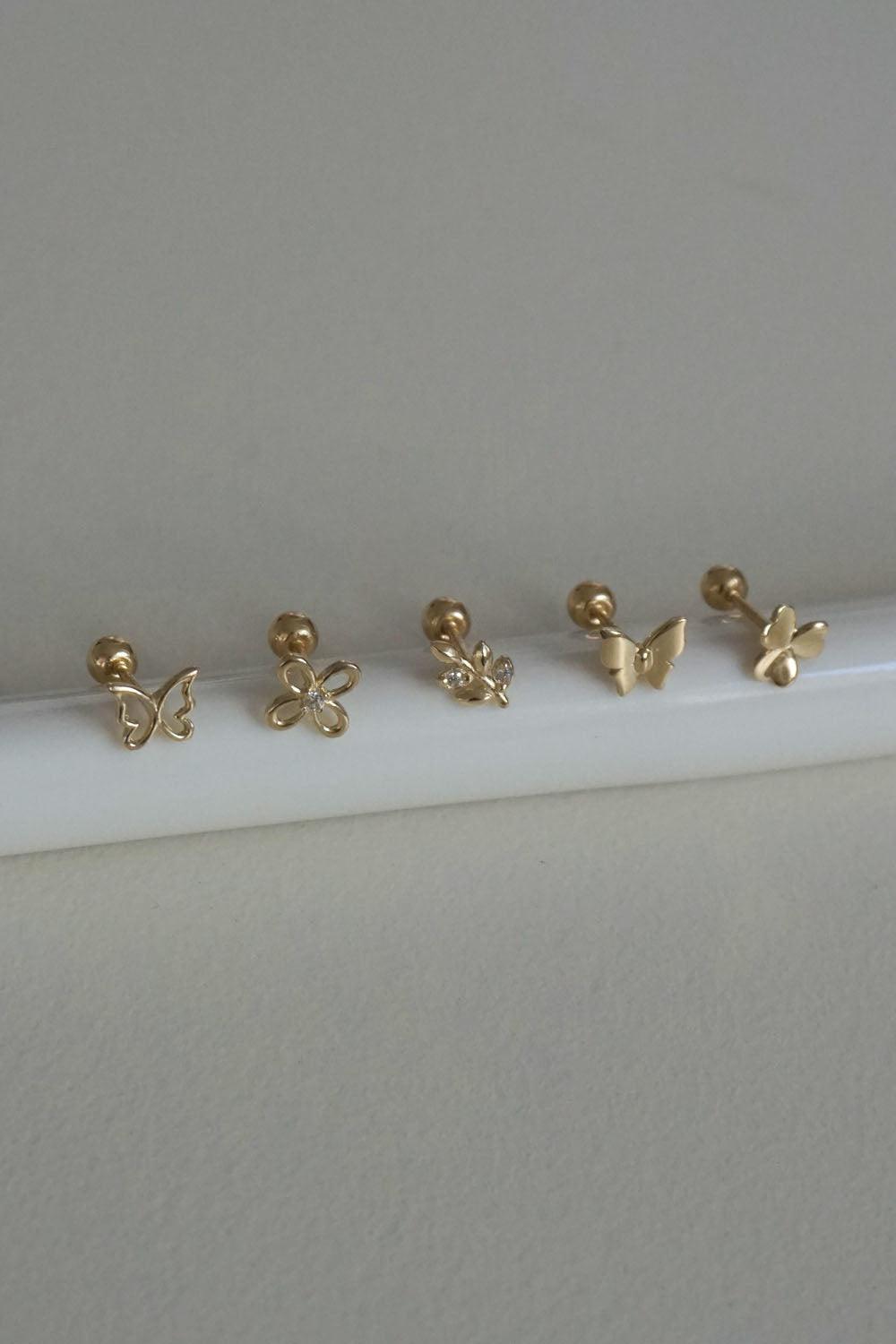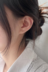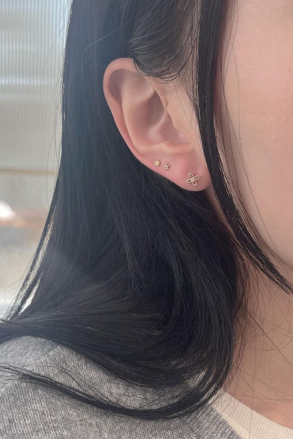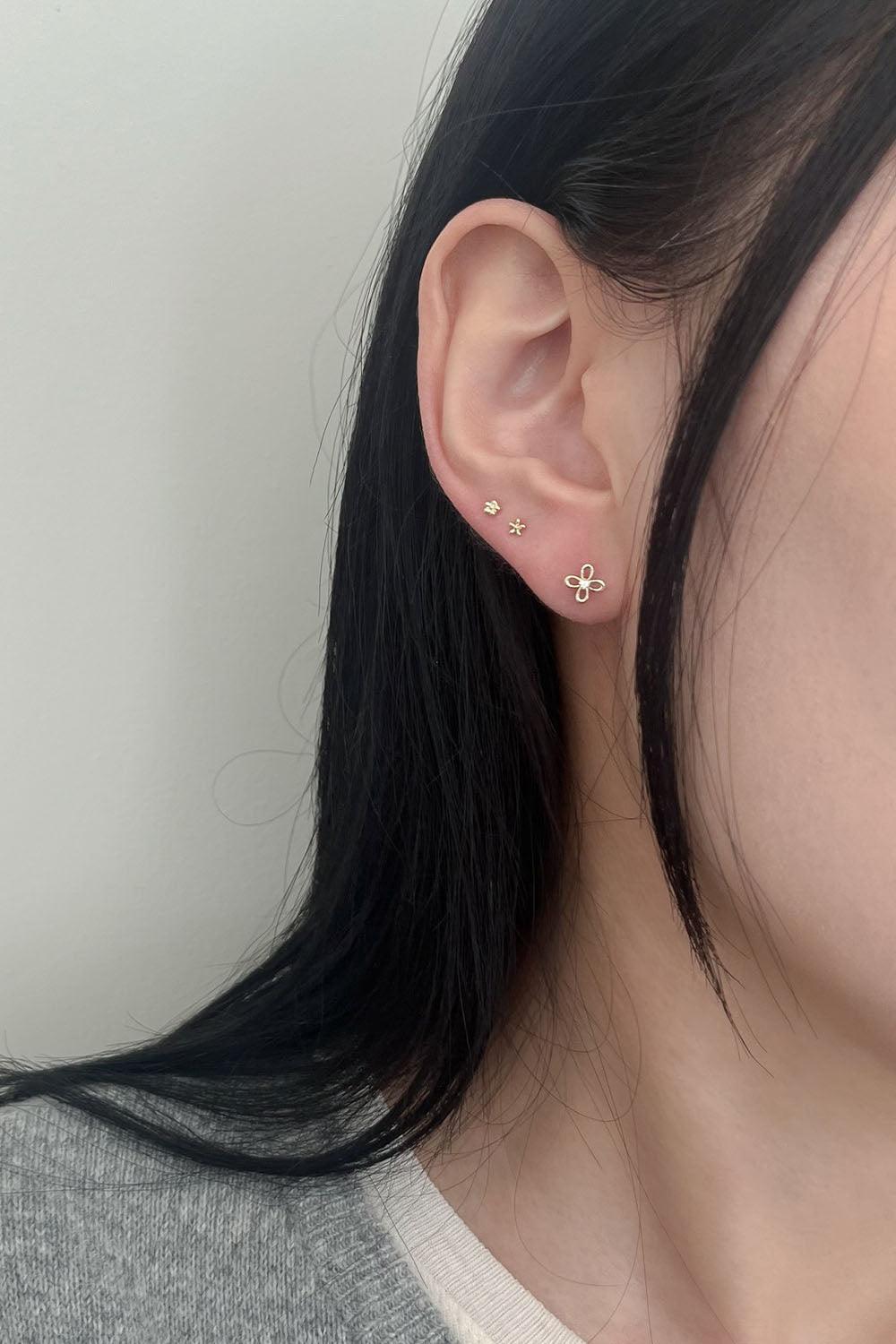 These earrings feature a simple petal line with a cubic accent in the center. They are easy to wear layered anywhere with a gorgeous mood, and are recommended as neat, everyday earrings that fit snugly in the ear.