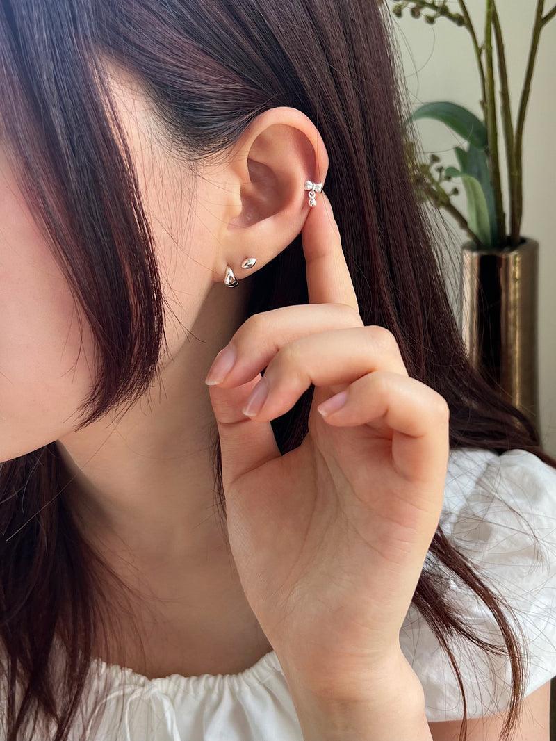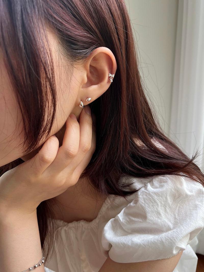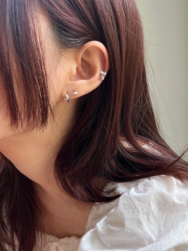 - Cute ribbon earrings with small cheek drops and a dangling feel.