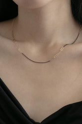 全14kゴールド素材にブラックメッキが加えられ、ツートンが魅力的なネクリスです。スリムにカットされたクリップとブラックチェーンがアンバランスに調和し、単独でも存在感のあるレイヤードでおしゃれに演出できます。 Color : Yellow gold、Rose Gold Metarial : 14k Gold (58.5%) Weight : 約1.61g Length : chain 40/+3cm SR : 0.5*0.5cm- Rp 10.076.000,00