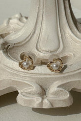 白い光感の真珠が優雅なムードを与えるワンタッチピアスです。リングの下にほのかに揺れるシルエットが上品な雰囲気を演出してくれます。ゲストルック、オフィスルックなどにポイントアイテムとしておすすめです。 ペア(2個)で販売されている商品です。 Color : Yellow gold、Rose Gold Metarial : 14k Gold (58.5%)、核真珠 Weight : 金-約0.93g / 真珠-約0.6g 外径 : 9mm内径 : 8mm真珠 : 5.5mm- Rp 3.902.000,00