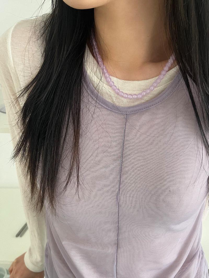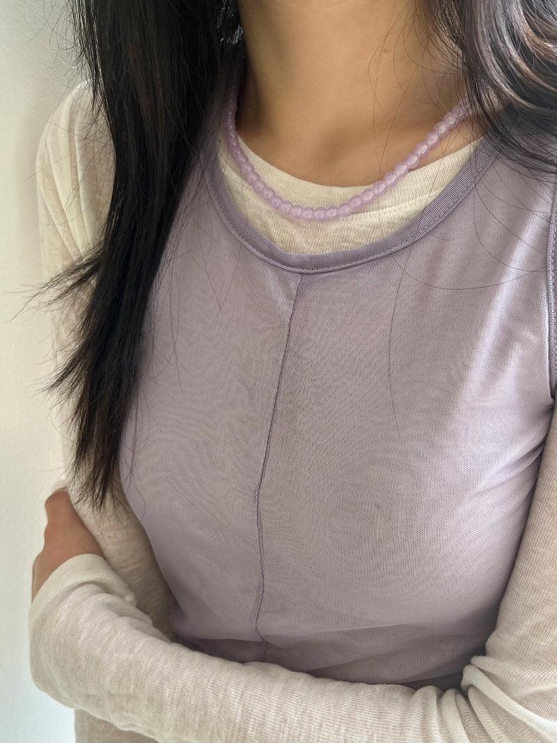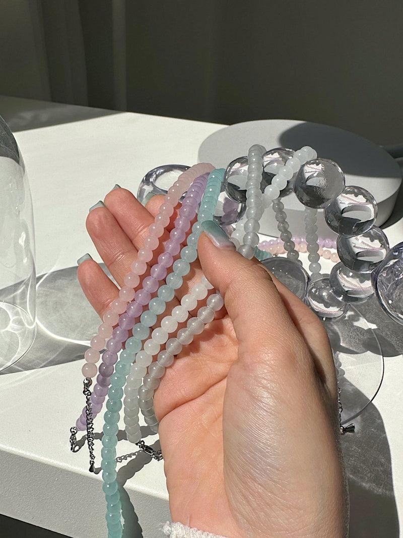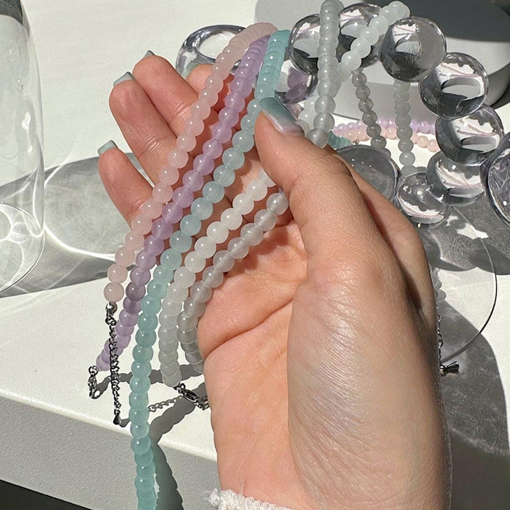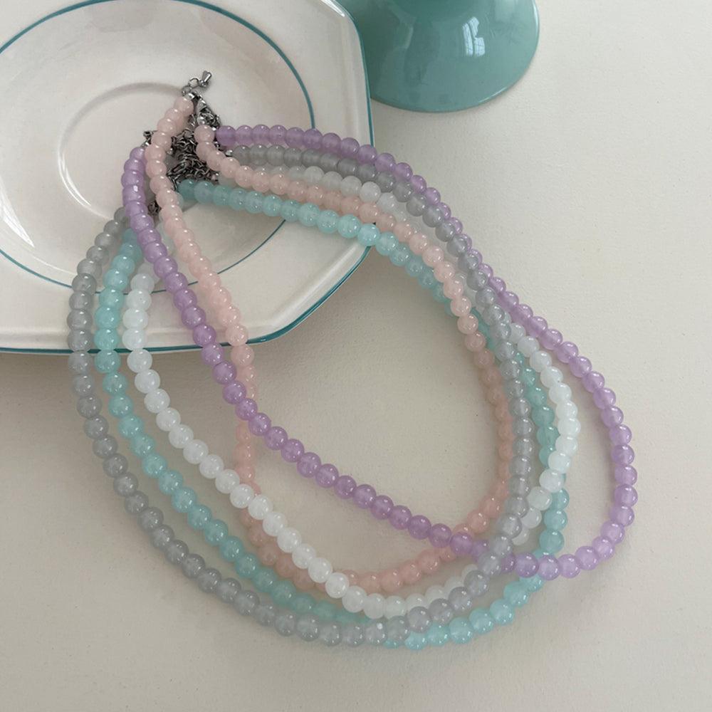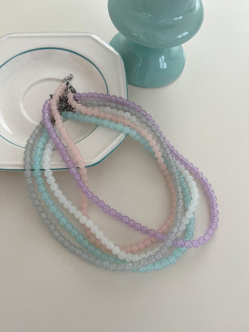 - パステルカラーの透明な丸型ビーズネックレスで、S/Sシーズンコーディネートにさわやかなポイントを加えるネックレス