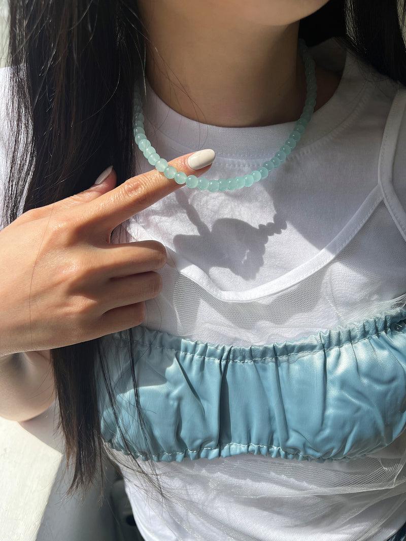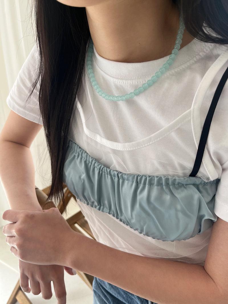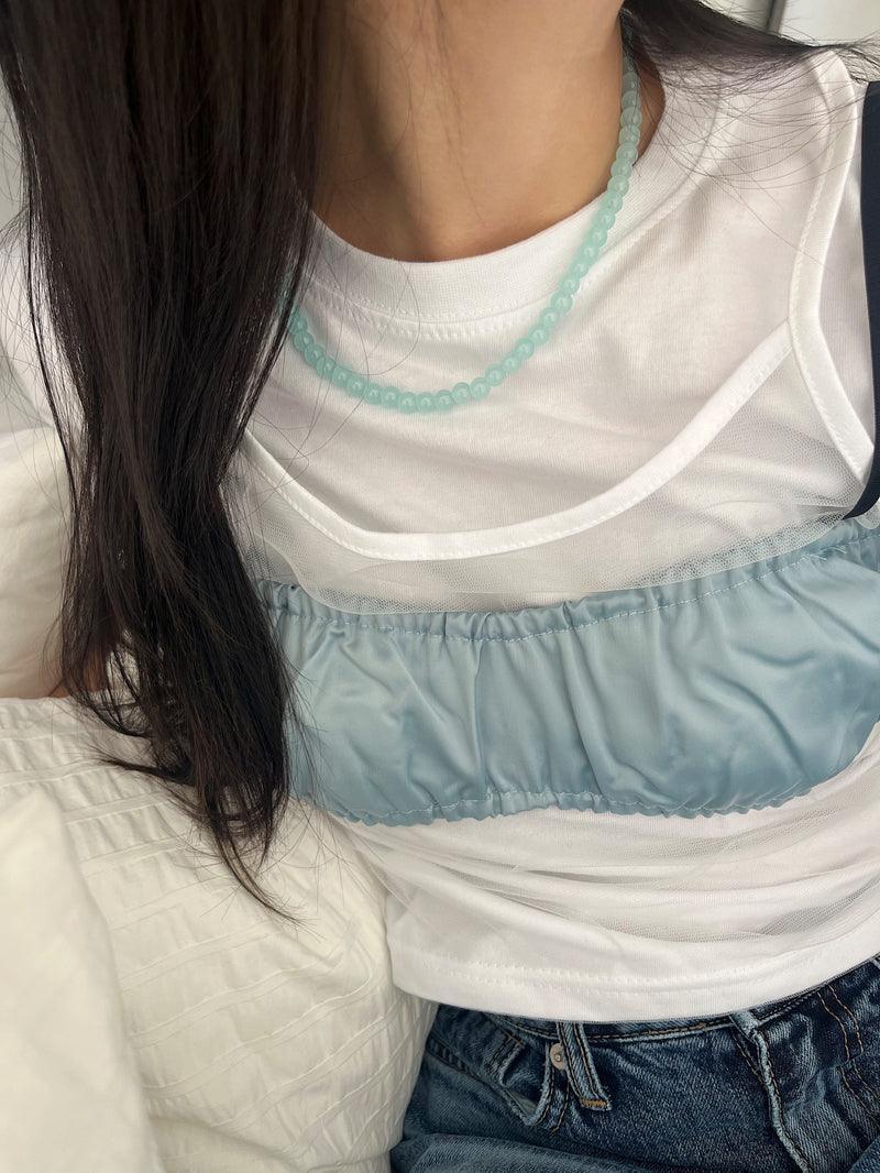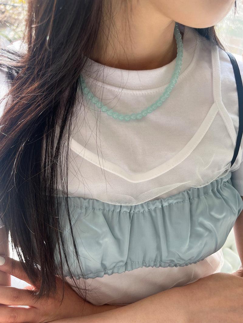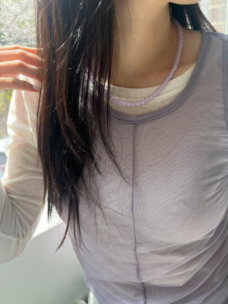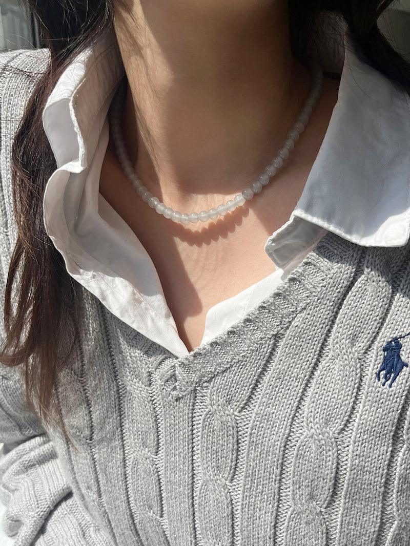 - パステルカラーの透明な丸型ビーズネックレスで、S/Sシーズンコーディネートにさわやかなポイントを加えるネックレス