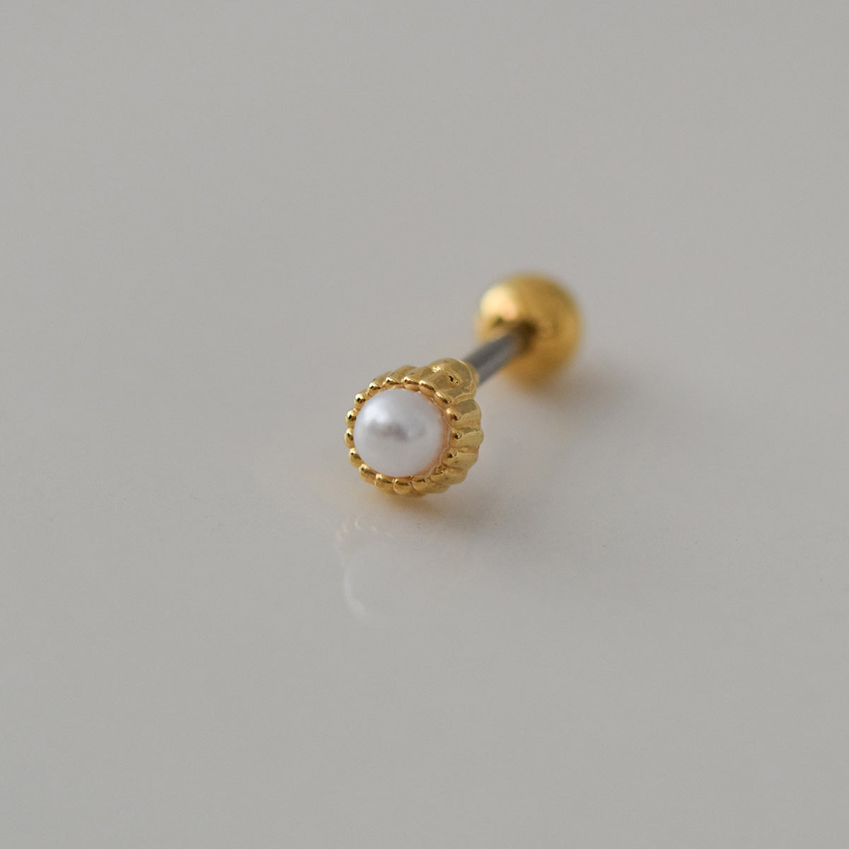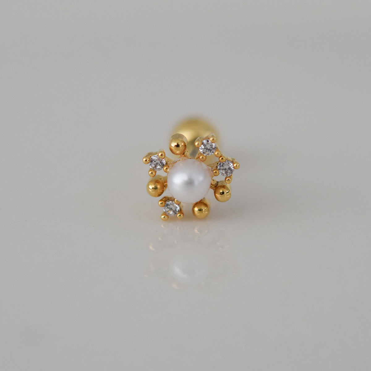 ②[サージカルステンレス]パールフラワーボールバーベルピアス