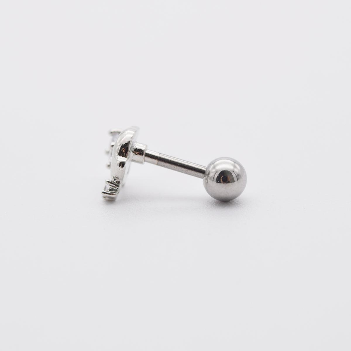 จี้: 7.4x6.6x2.7mm (กว้าง x สูง x หนา), ความหนาของแท่ง: 1.2mm, ความยาวแท่ง: 6mm, ลูกบอลด้านหลัง: 4mm, สามารถแยกแท่งออกได้ น้ำหนัก: 0.6g, จำนวน: หลวม