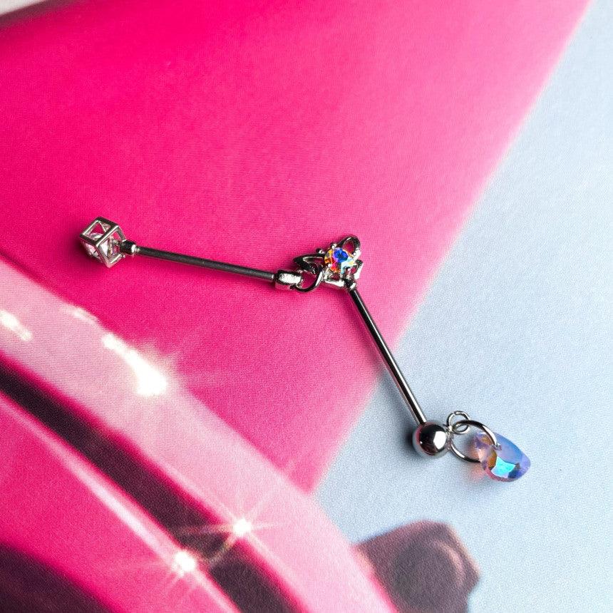 นี่คือต่างหูแนวอุตสาหกรรมที่มีปลายโอปอล AB รูปทรงเฉพาะตัว