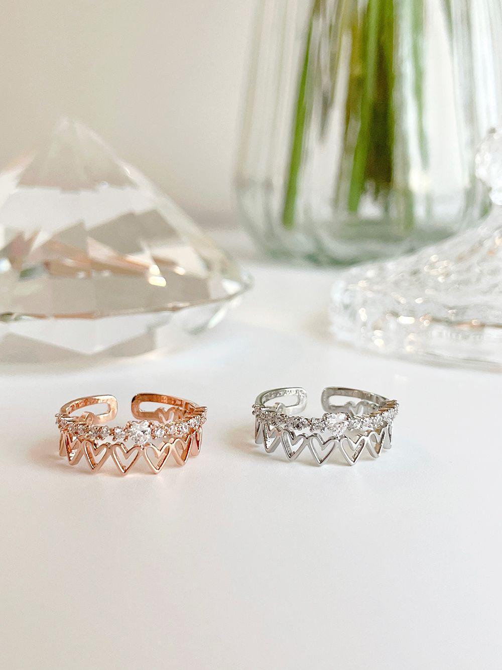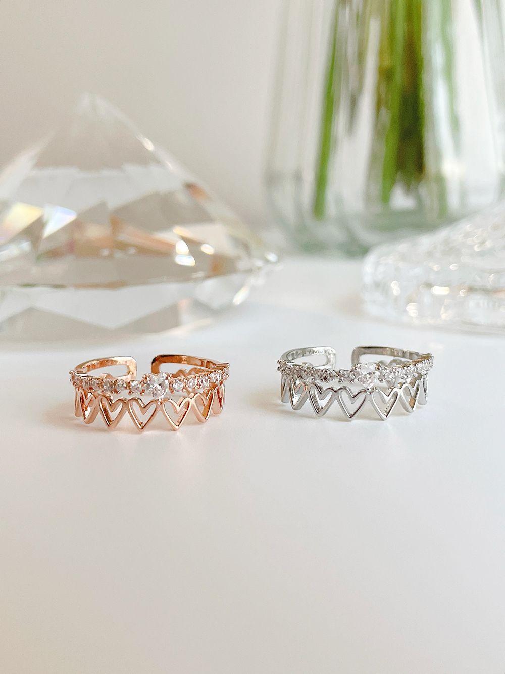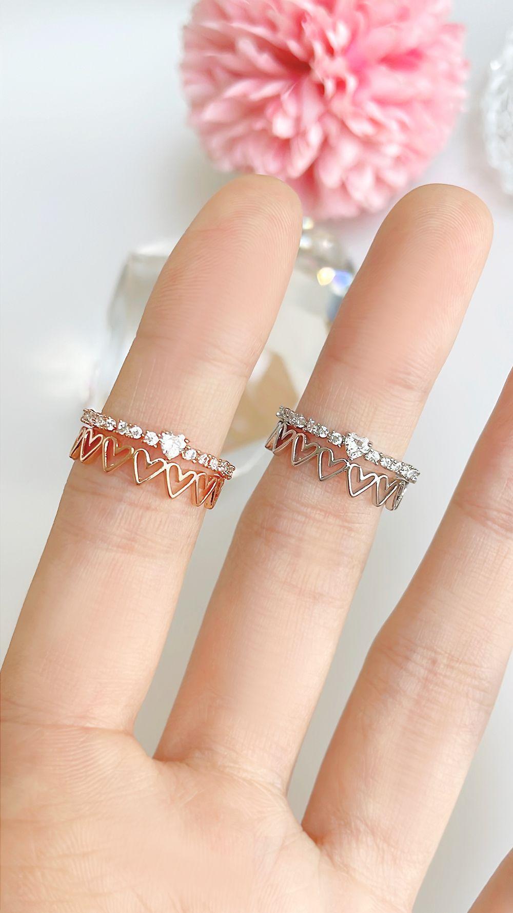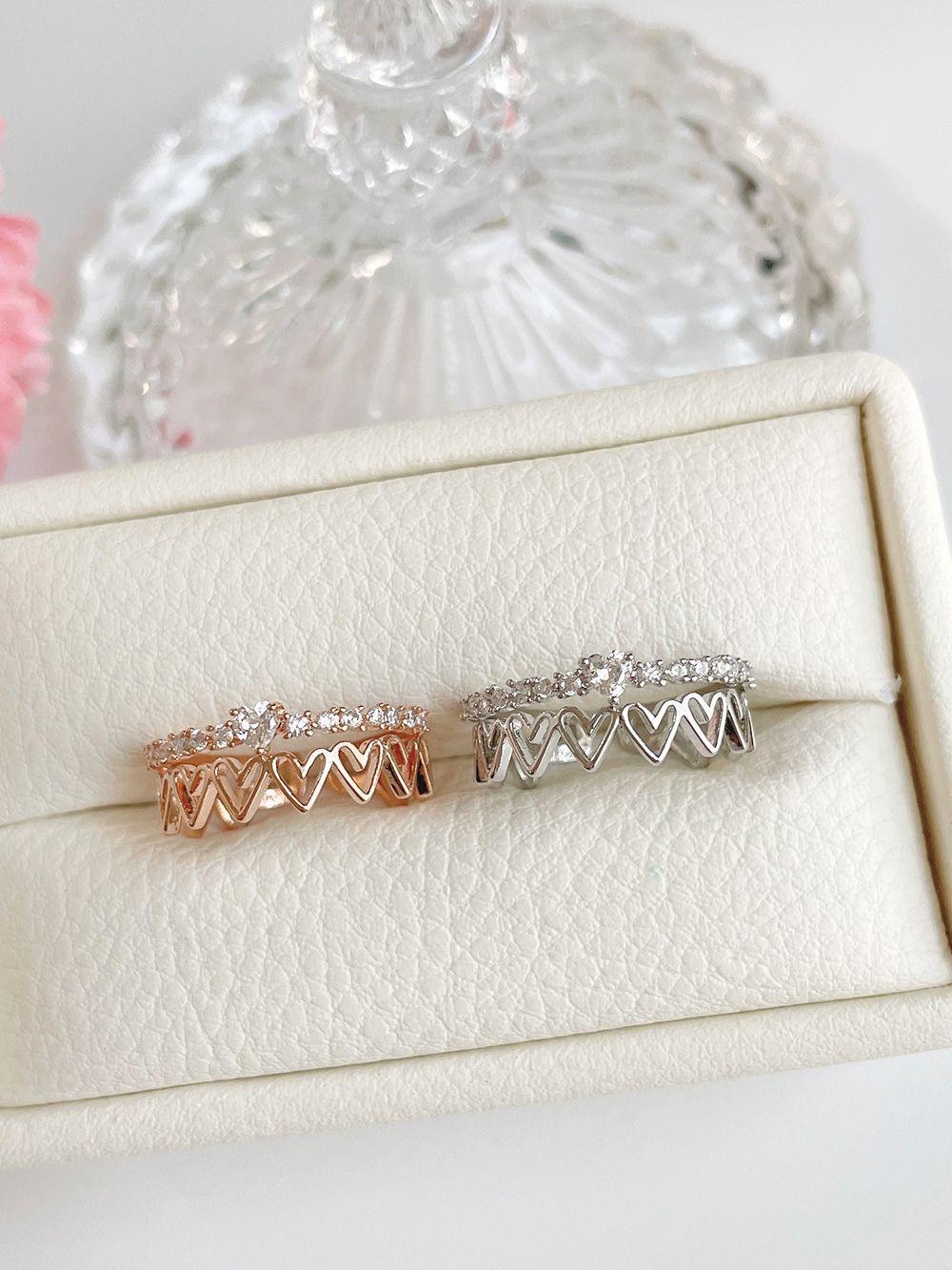 แหวนวงนี้มีเพชรคิวบิกเซอร์โคเนียรูปหัวใจและโซ่คิวบิกทับบนโซ่รูปหัวใจเพื่อเพิ่มรายละเอียด ทำให้เป็นแหวนที่ยอดเยี่ยมสำหรับการสวมใส่เป็นไฮไลท์!