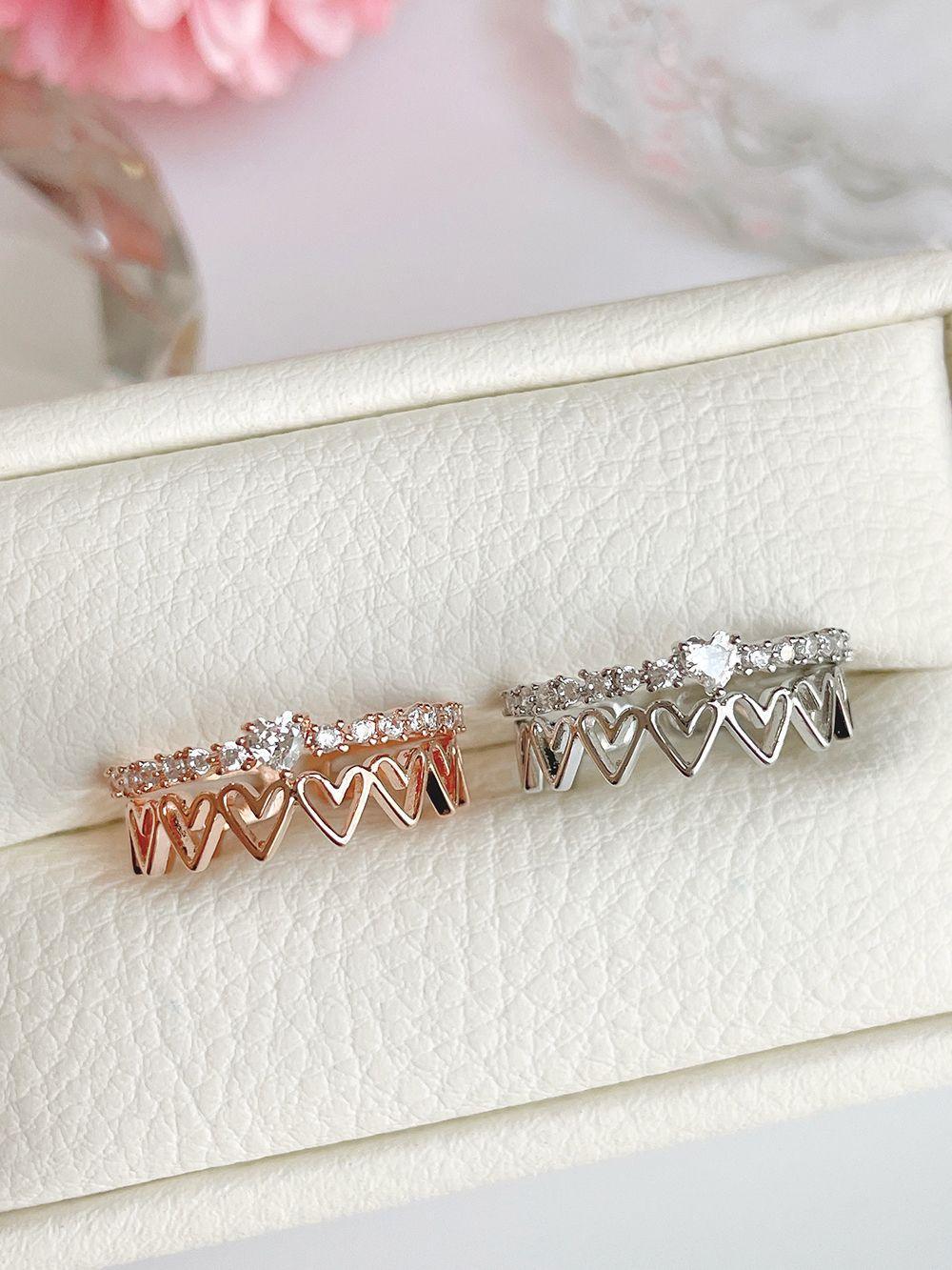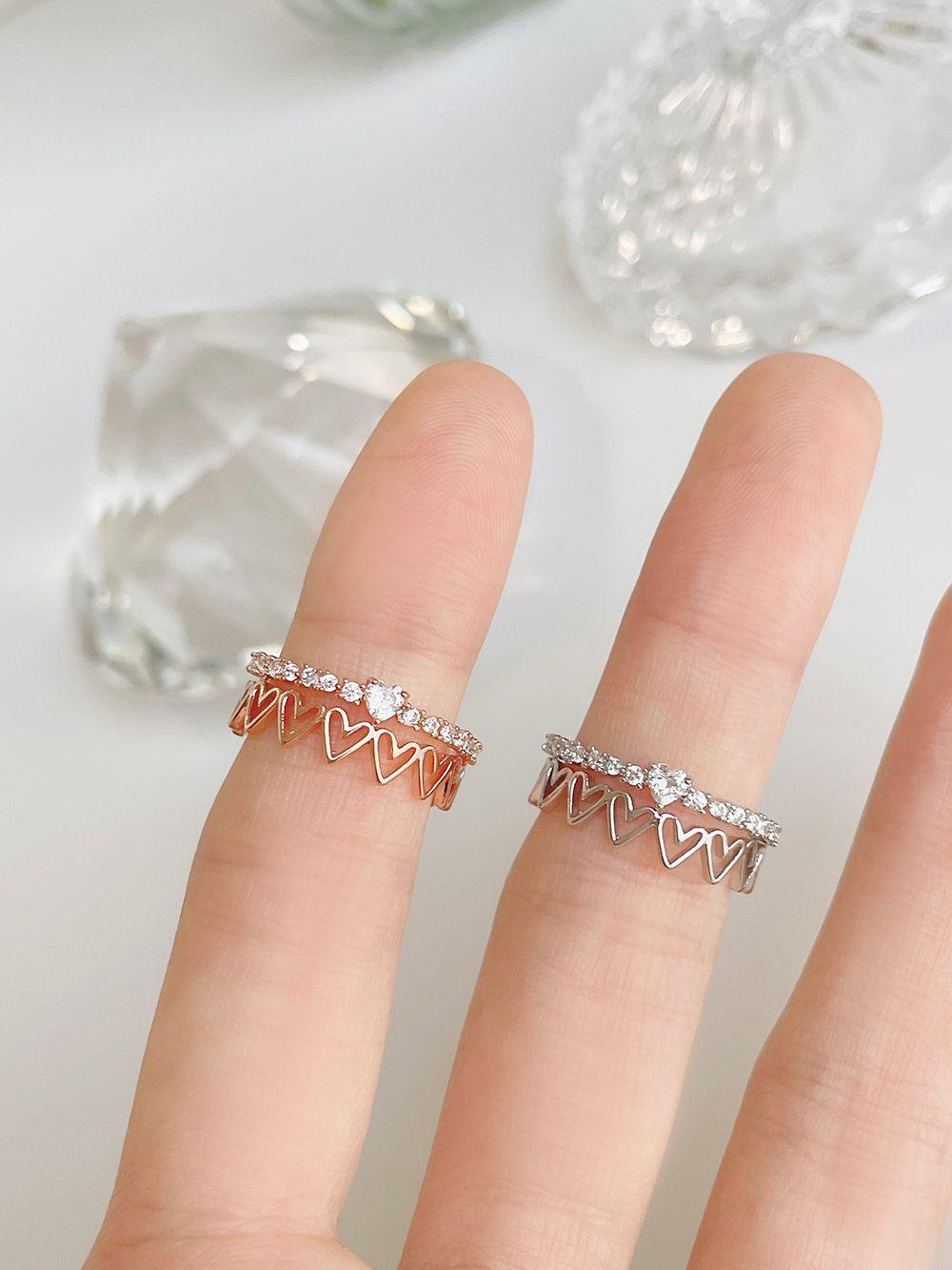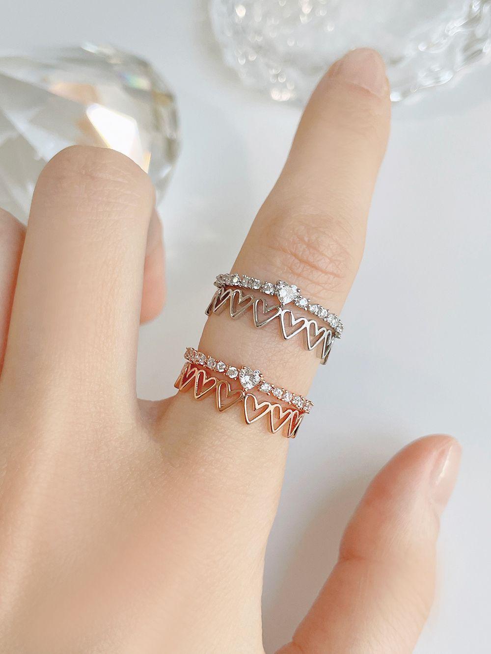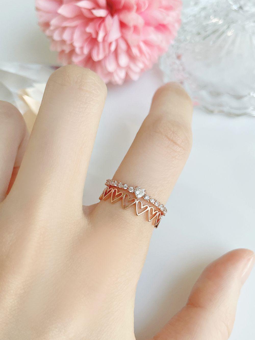 แหวนวงนี้มีเพชรคิวบิกเซอร์โคเนียรูปหัวใจและโซ่คิวบิกทับบนโซ่รูปหัวใจเพื่อเพิ่มรายละเอียด ทำให้เป็นแหวนที่ยอดเยี่ยมสำหรับการสวมใส่เป็นไฮไลท์!