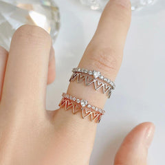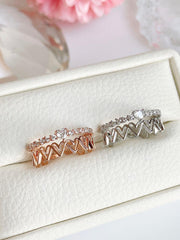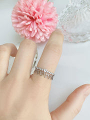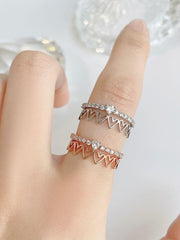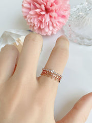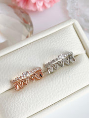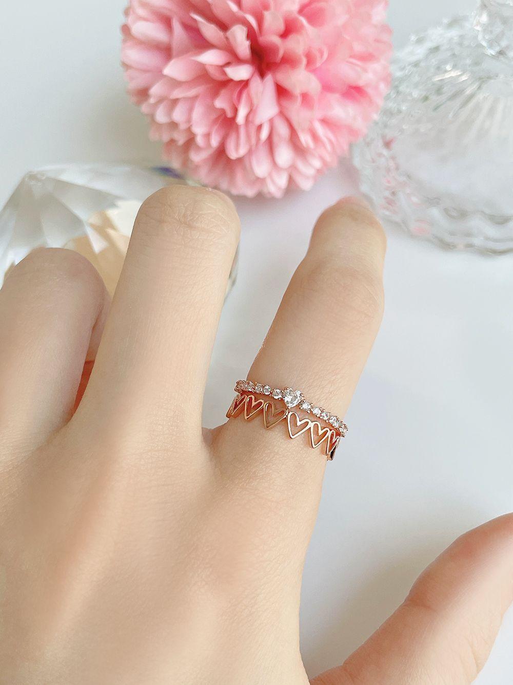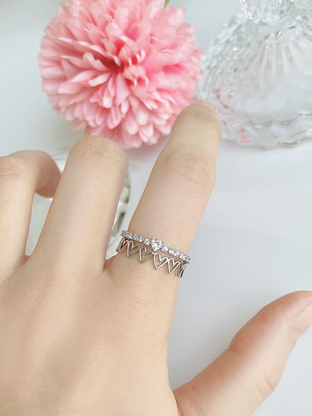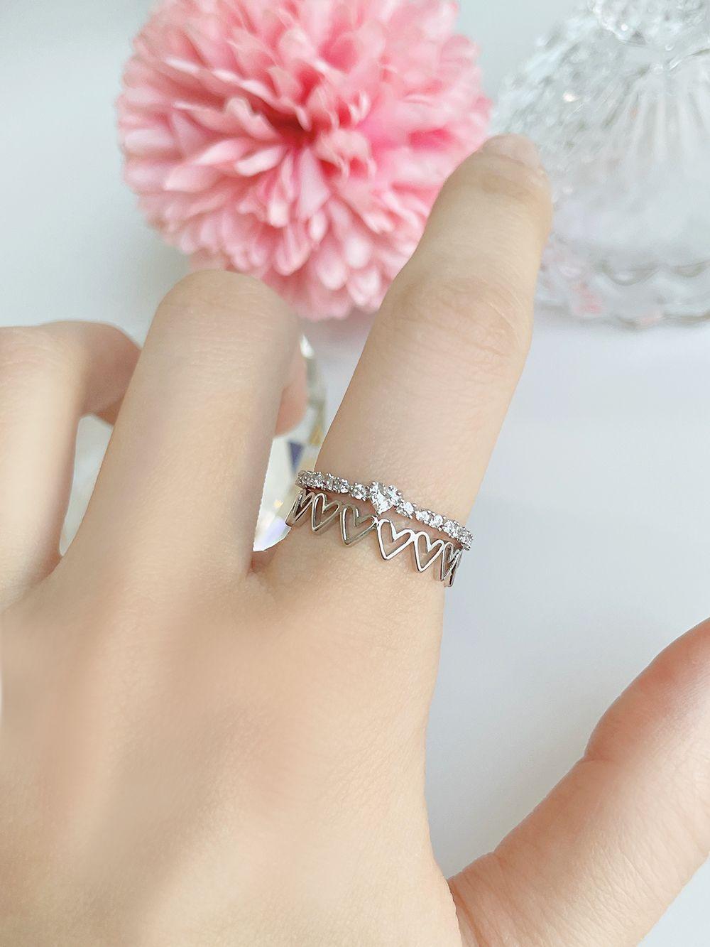 แหวนวงนี้มีเพชรคิวบิกเซอร์โคเนียรูปหัวใจและโซ่คิวบิกทับบนโซ่รูปหัวใจเพื่อเพิ่มรายละเอียด ทำให้เป็นแหวนที่ยอดเยี่ยมสำหรับการสวมใส่เป็นไฮไลท์!