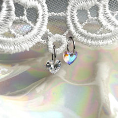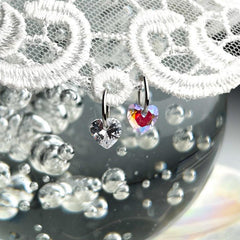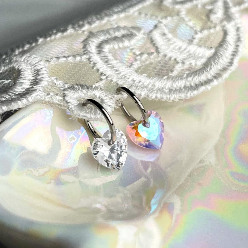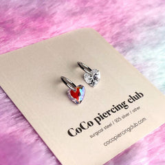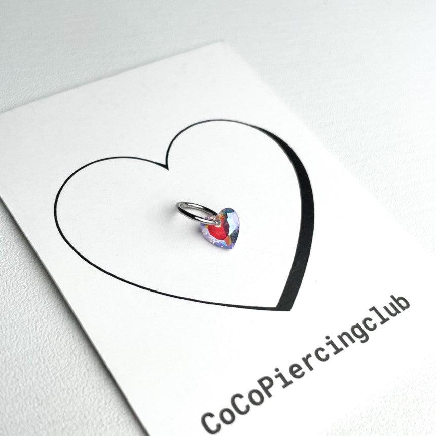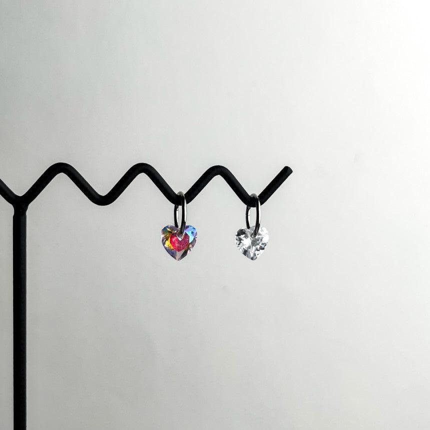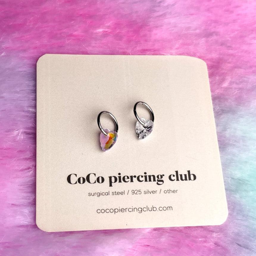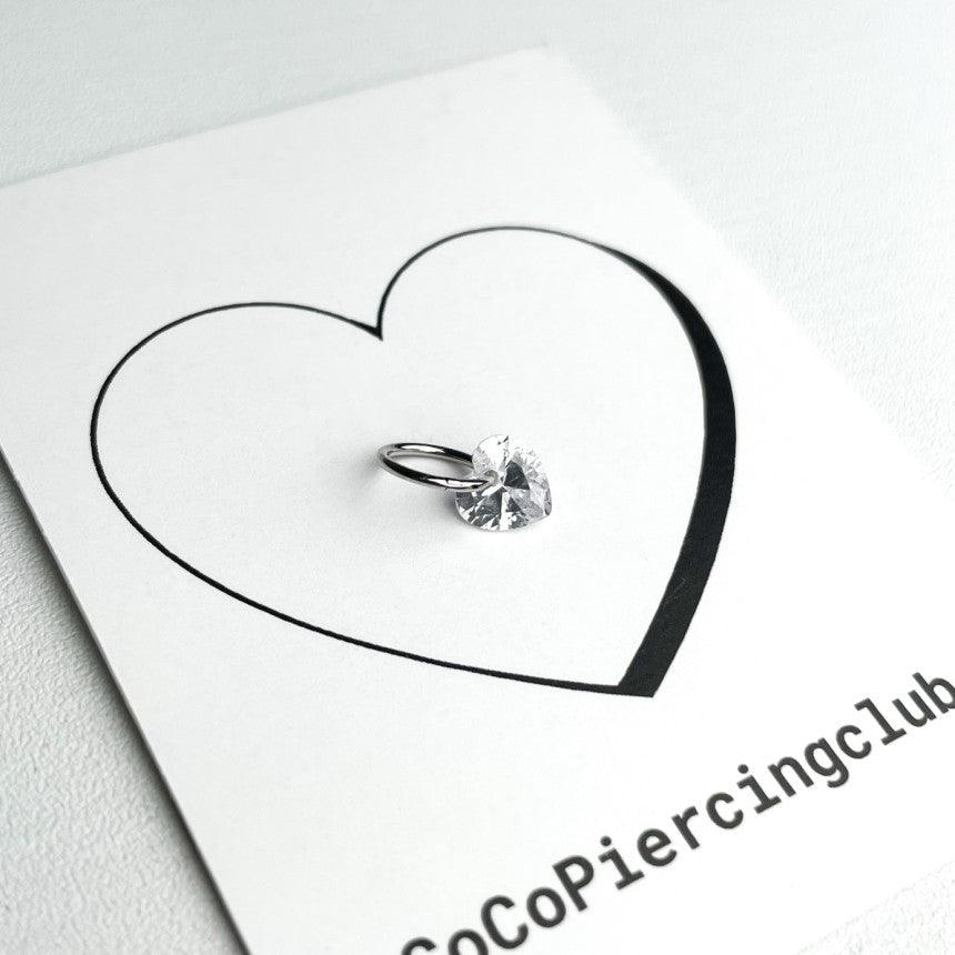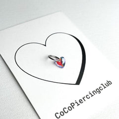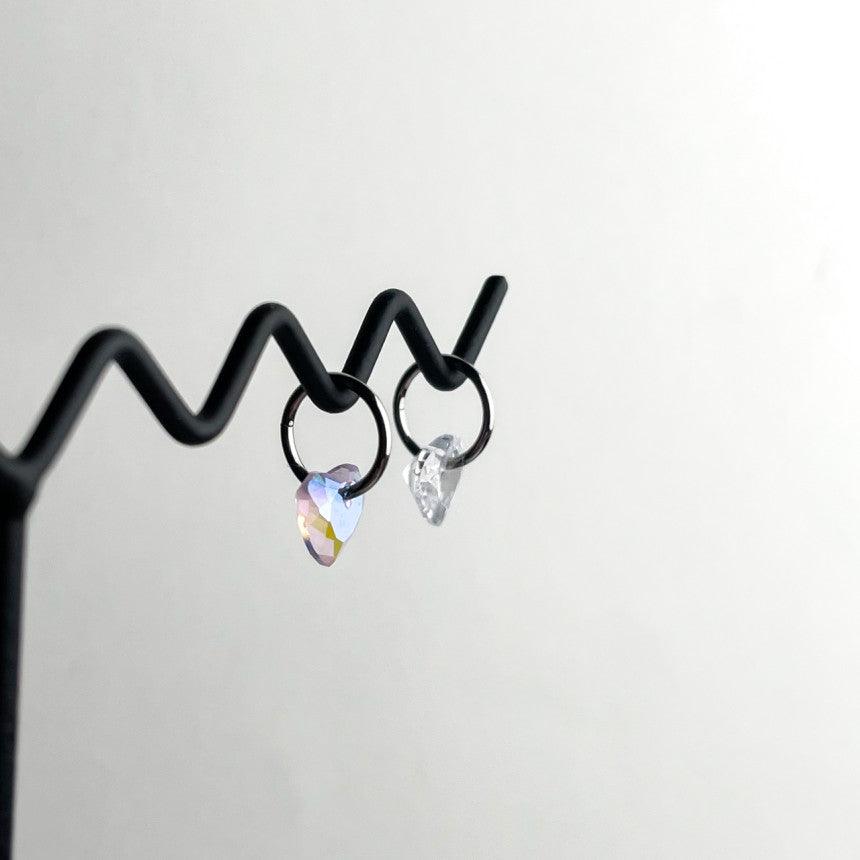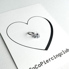 ต่างหูทรงหัวใจขนาดมินิ 0.8 มม. เหล่านี้มีลักษณะเป็นแหวนแบบสัมผัสเดียวเรียบง่ายพร้อมจุดคริสตัลรูปหัวใจ
