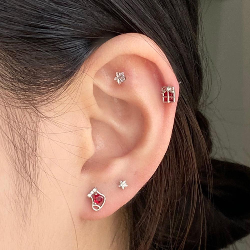 [5set] เจาะร่างกายสีแดงคริสต์มาสฤดูหนาว 16G เจาะหลัง เจาะกระดูกอ่อน
